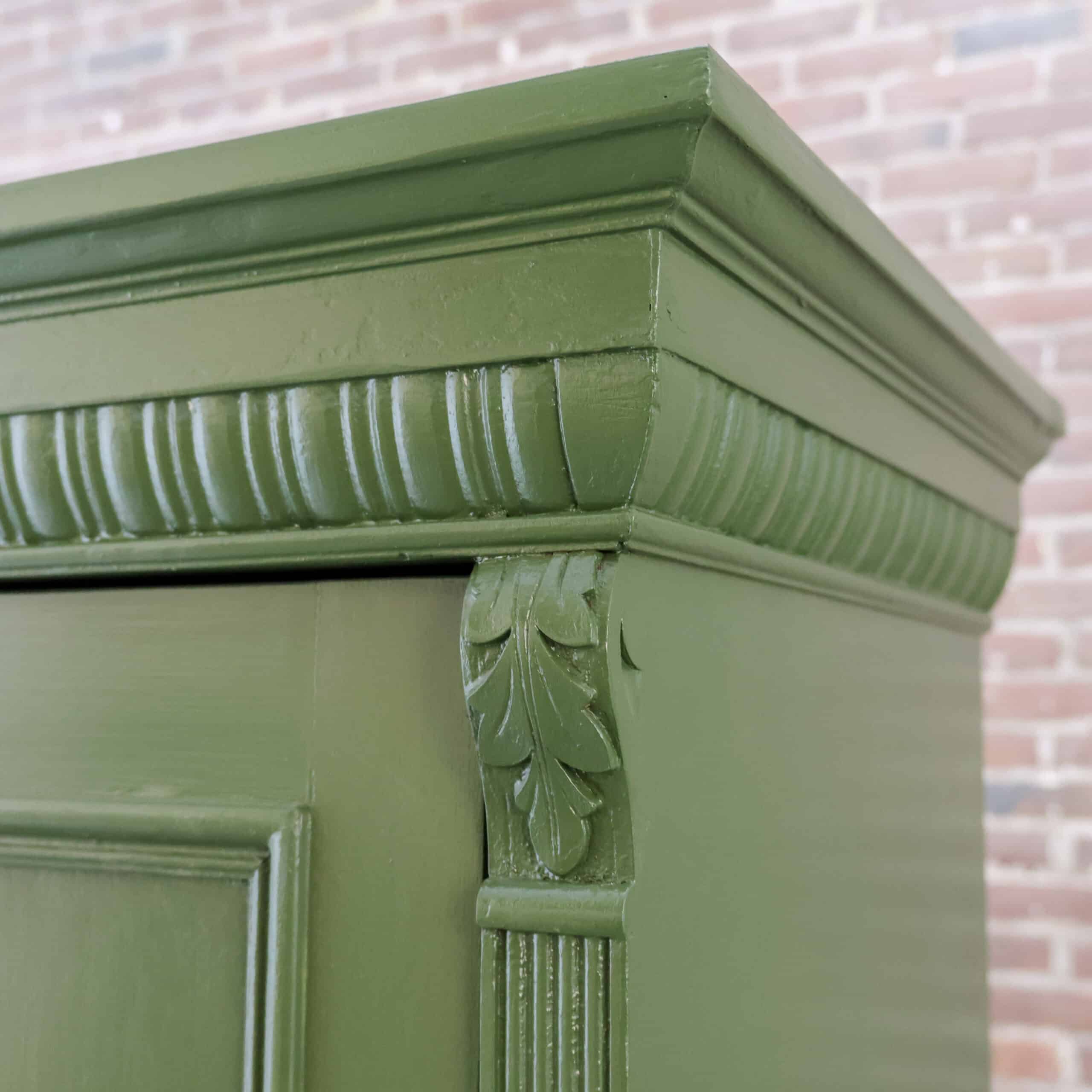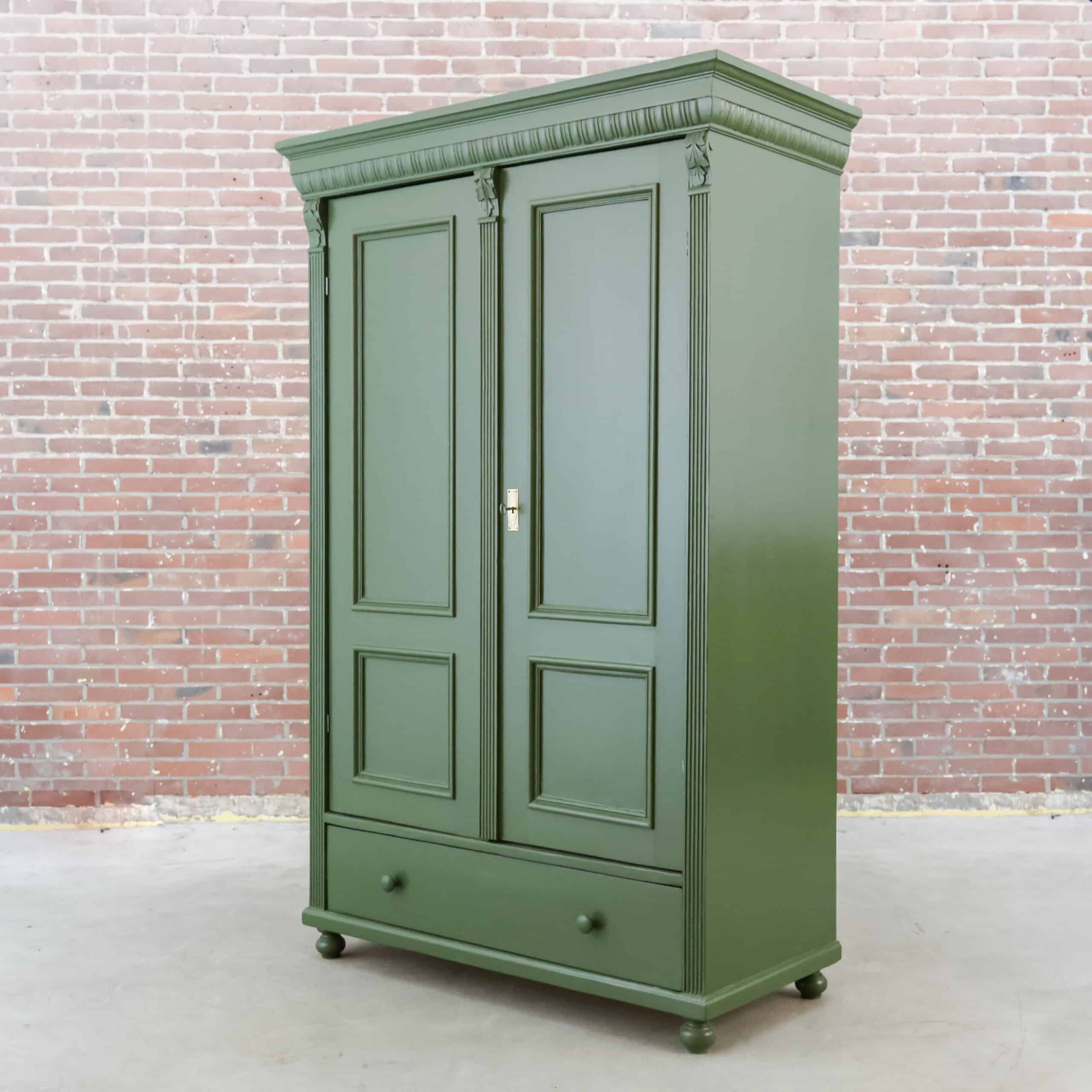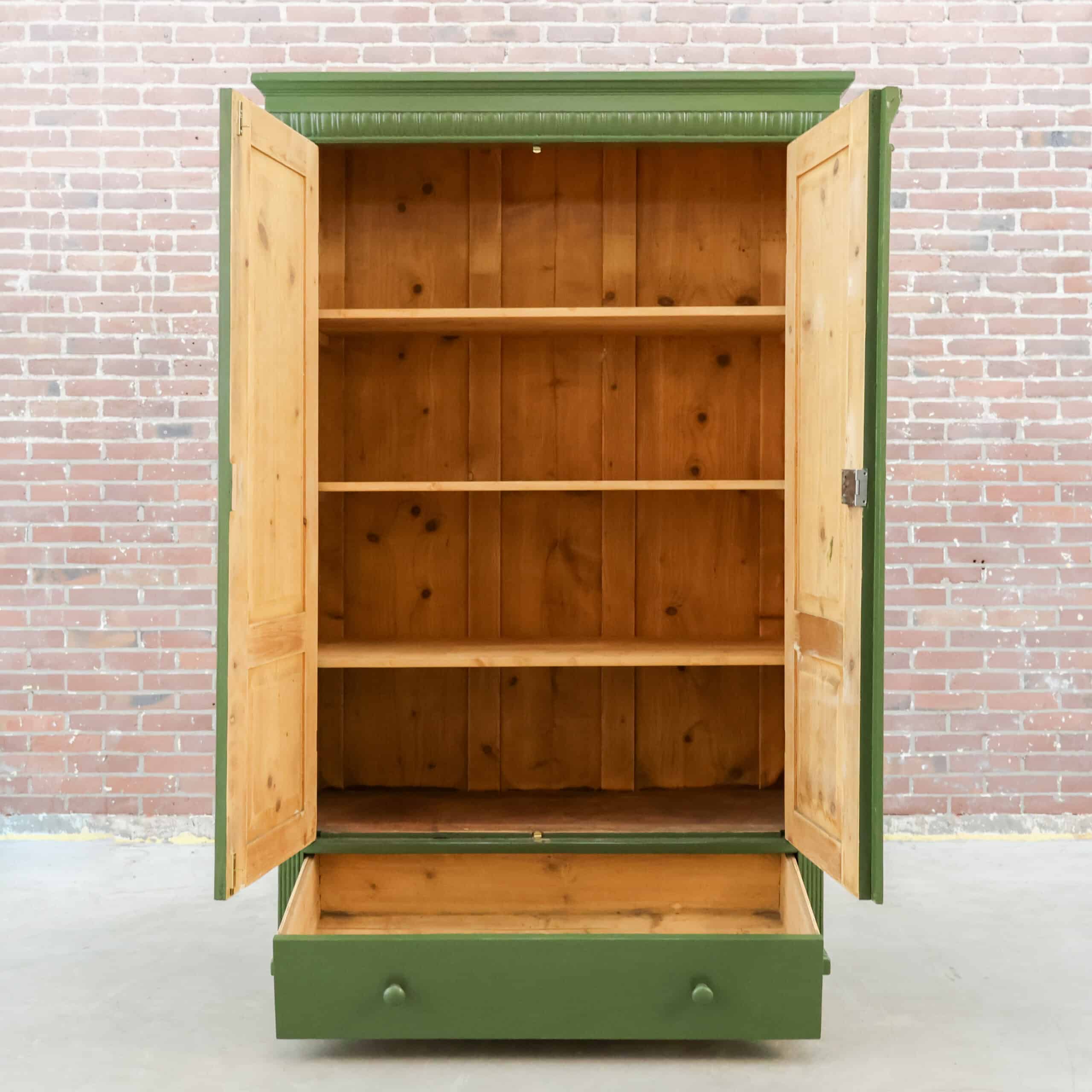 Ook deze leuke brocante linnenkast hebben we opgespeurd én opgeknapt in Hongarije, met oa nieuwe planken en een bijzondere groene kleur. Met deze kast haal je echt gezelligheid in huis!