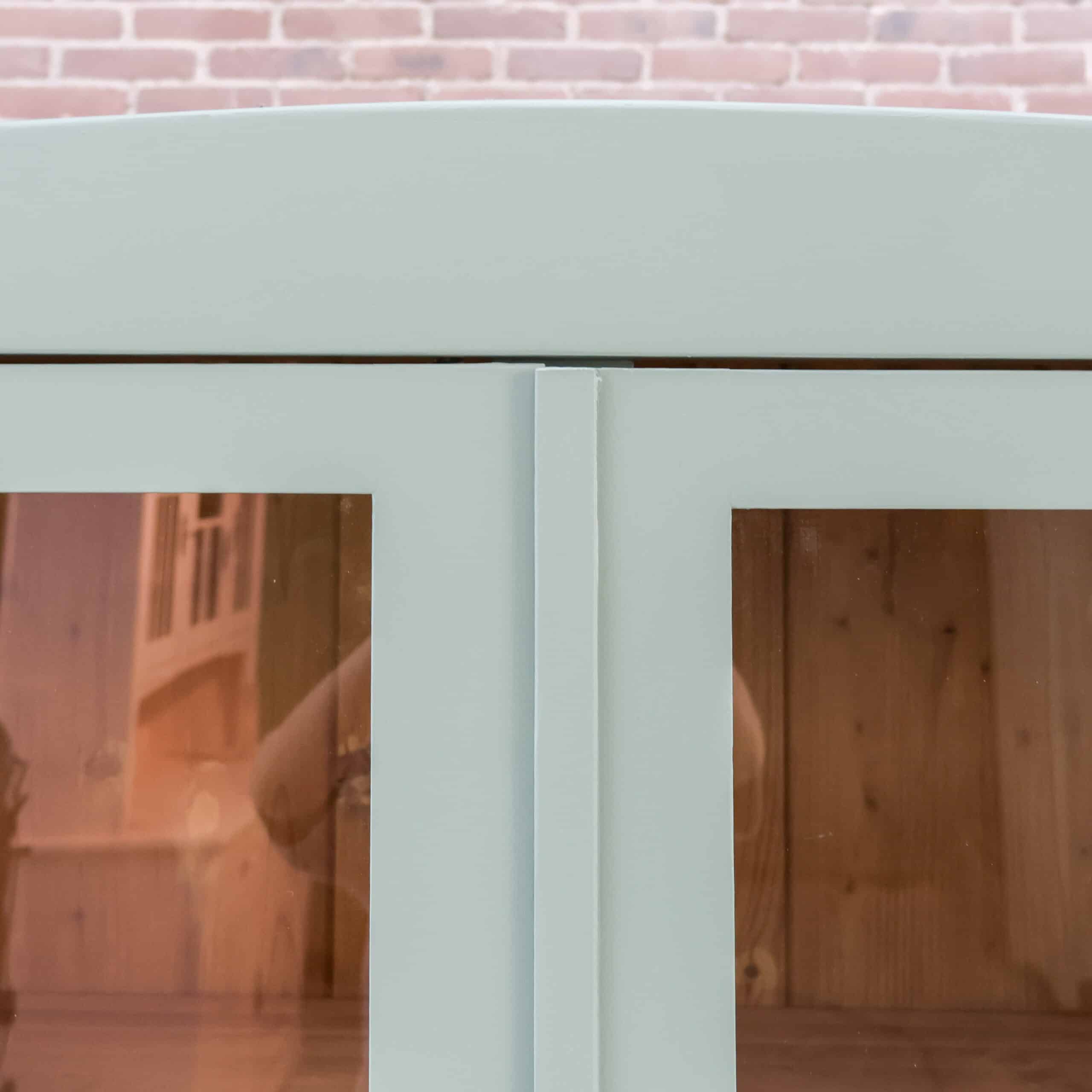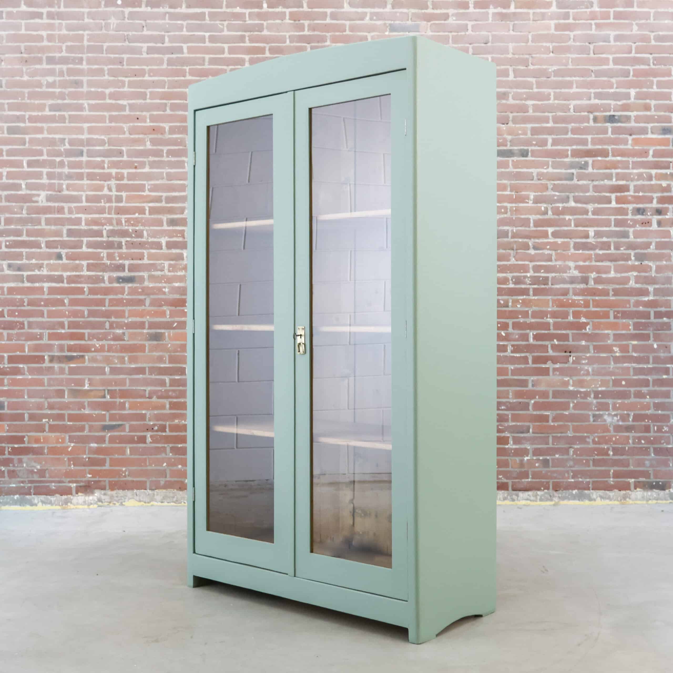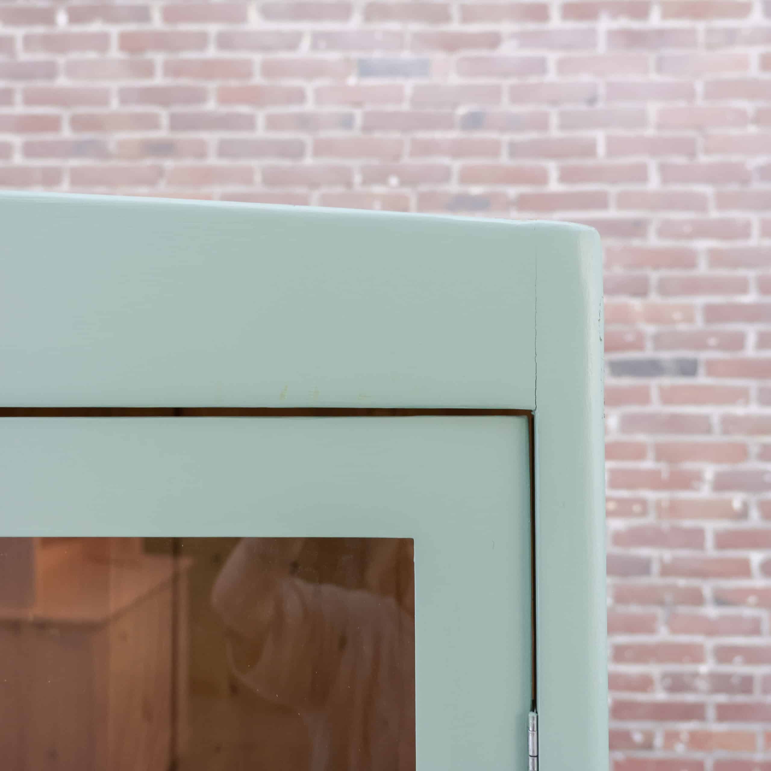 Deze brocante vitrinekast uit Hongarije is volledig opgeknapt en voorzien van een frisse blauwe mint kleur. De kast heeft nieuwe planken, glas en is verder met zorg gerestaureerd. Dankzij de glazen panelen is hij perfect om mooie items in tentoon te stellen. Een stijlvol en praktisch meubel met karakter.