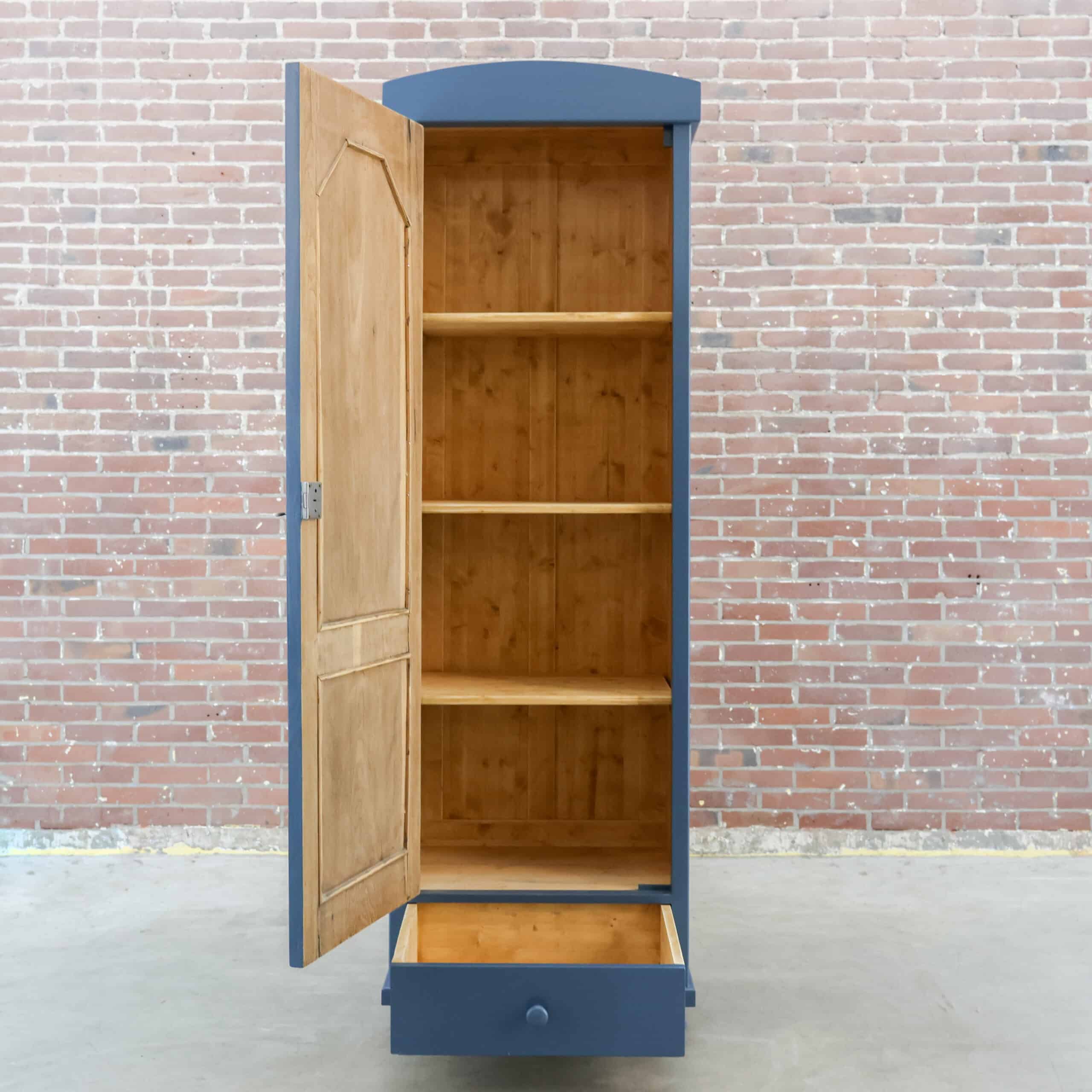 Mooie blauwe linnenkast uit Hongarije! We hebben haar in eigen werkplaats gemaakt, met het hout van oude kasten die we niet meer konden redden. Zo haal je dus een heel uniek én duurzaam exemplaar in huis!