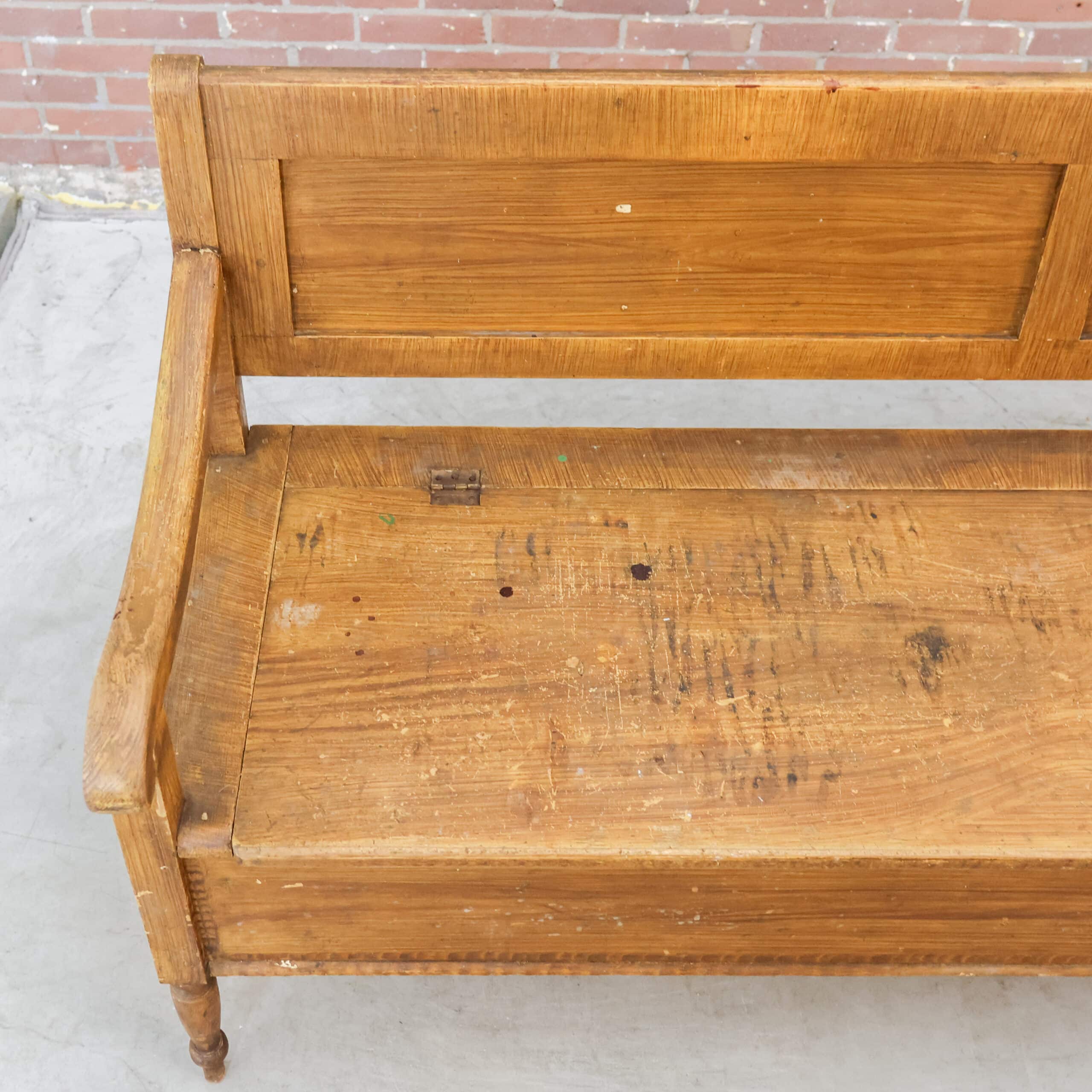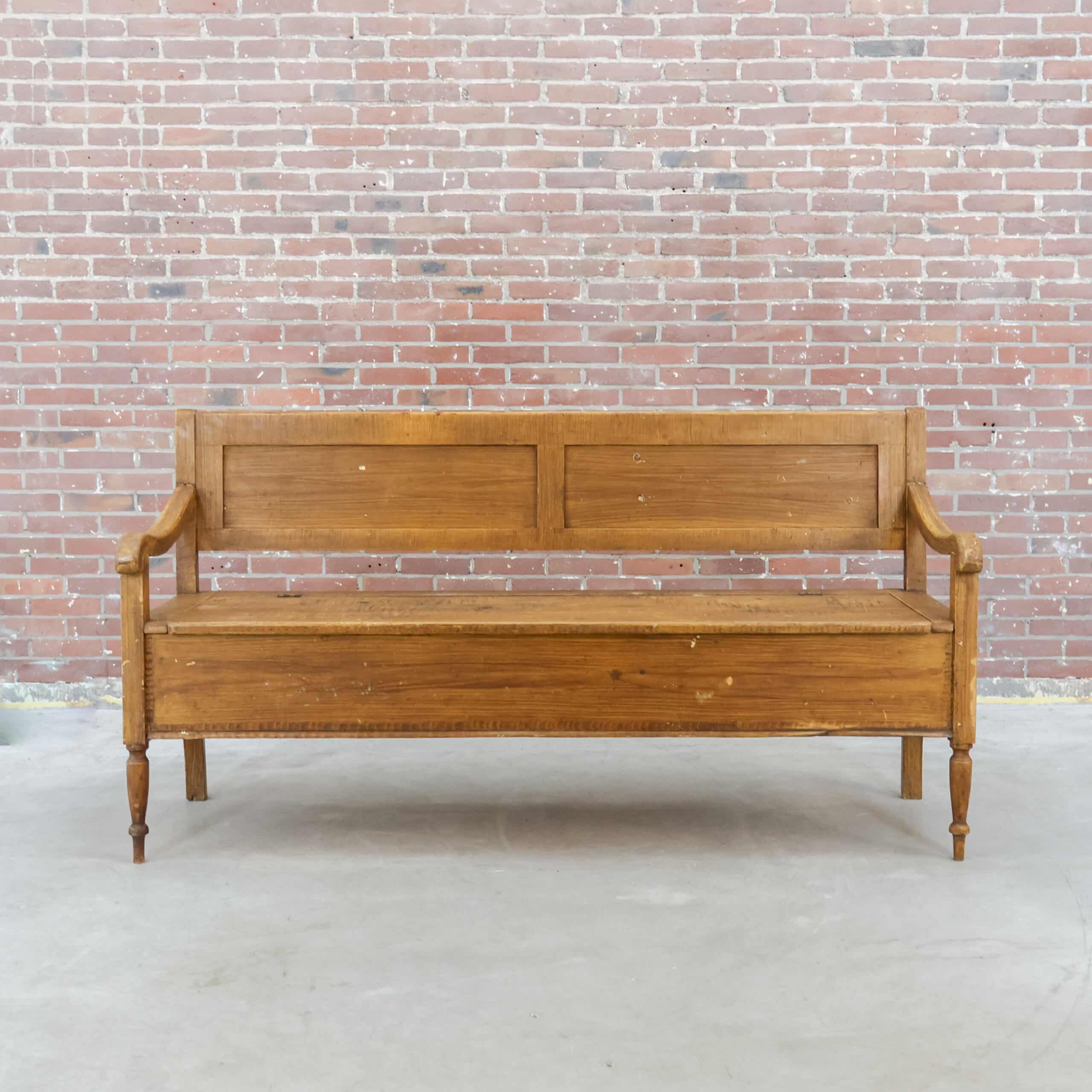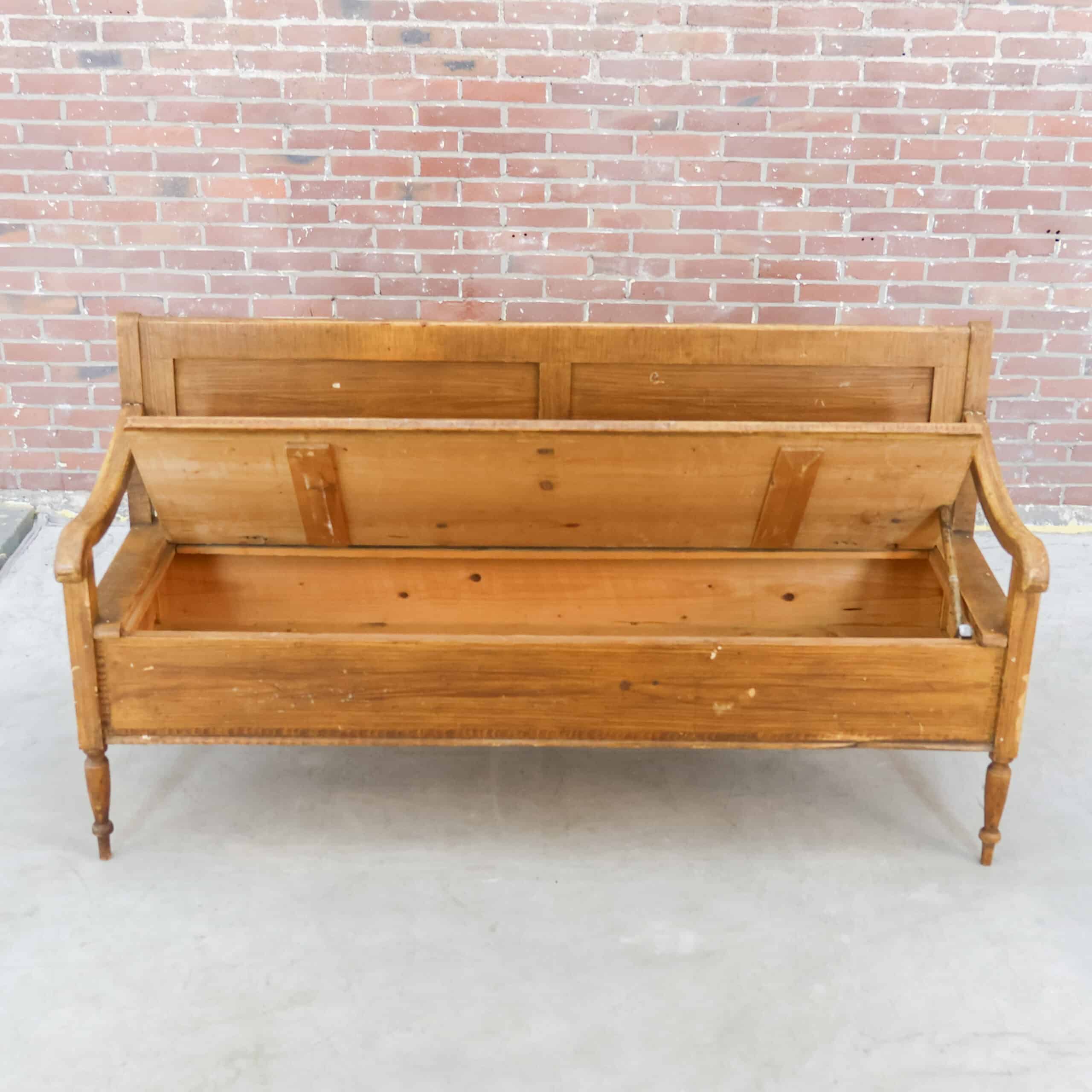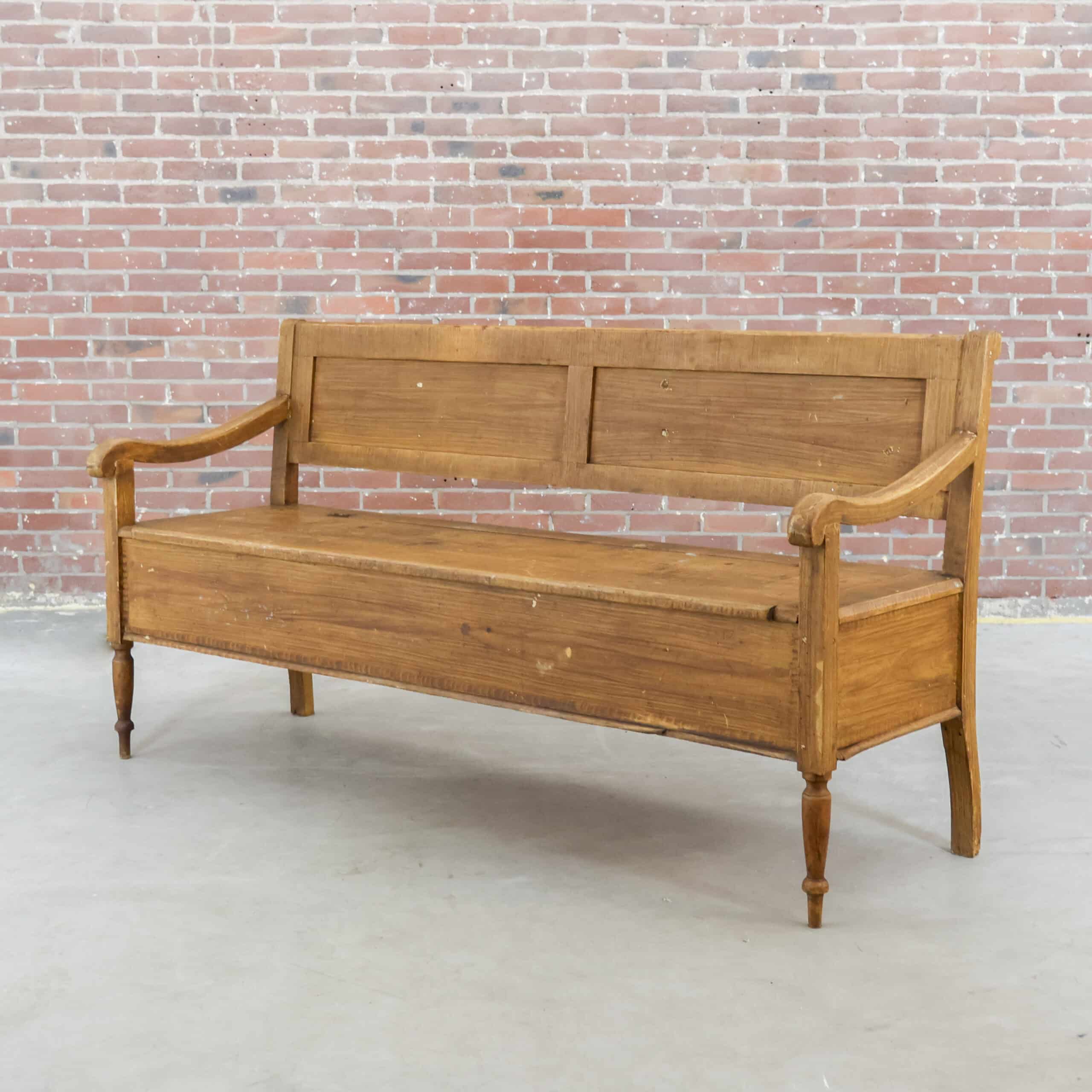 O zo leuk, deze verweerde grenen klepbank! Ze is lekker groot en breed van stuk, dus je kunt er fijn veel in opbergen 🙂 Wie heeft er plek voor deze fijne bank?