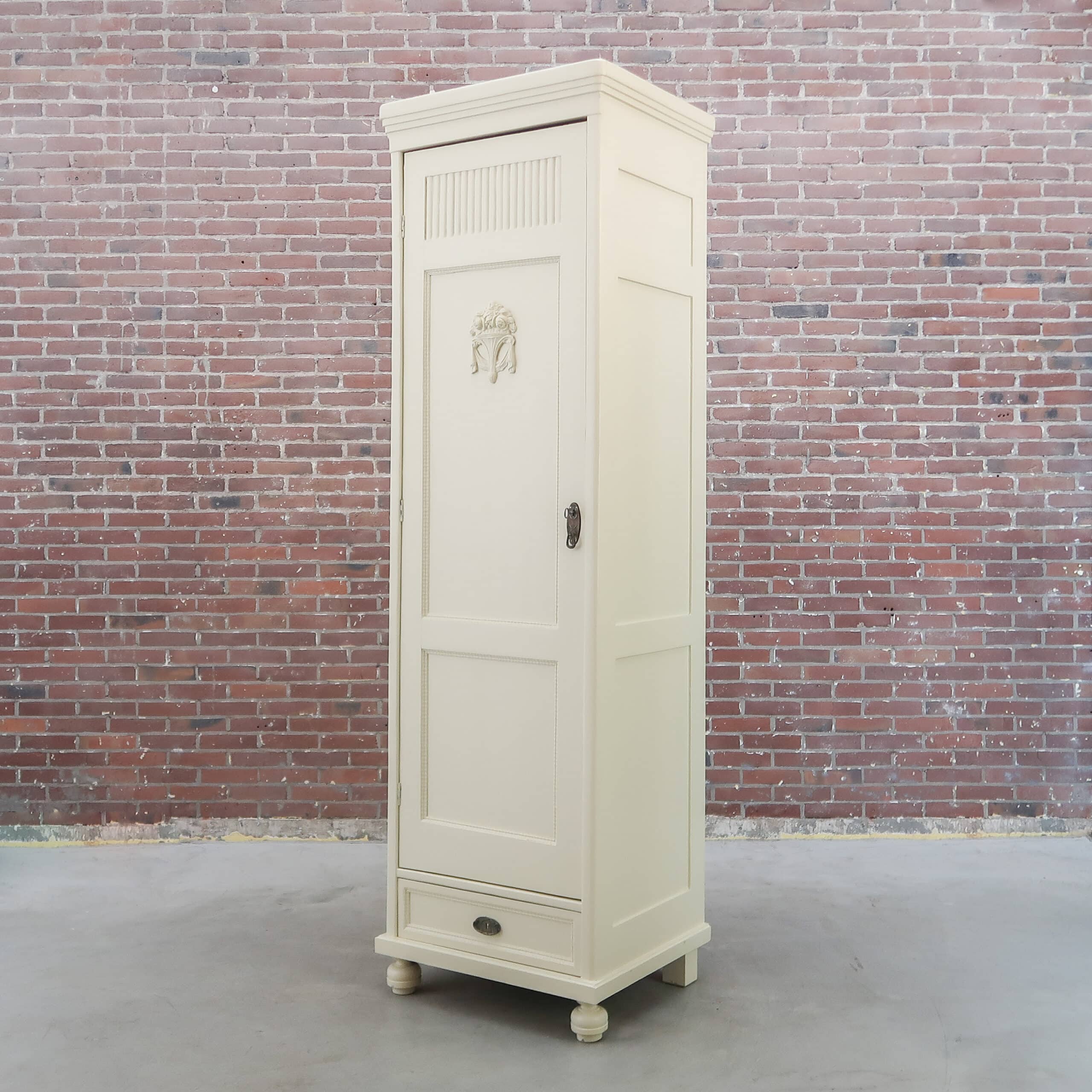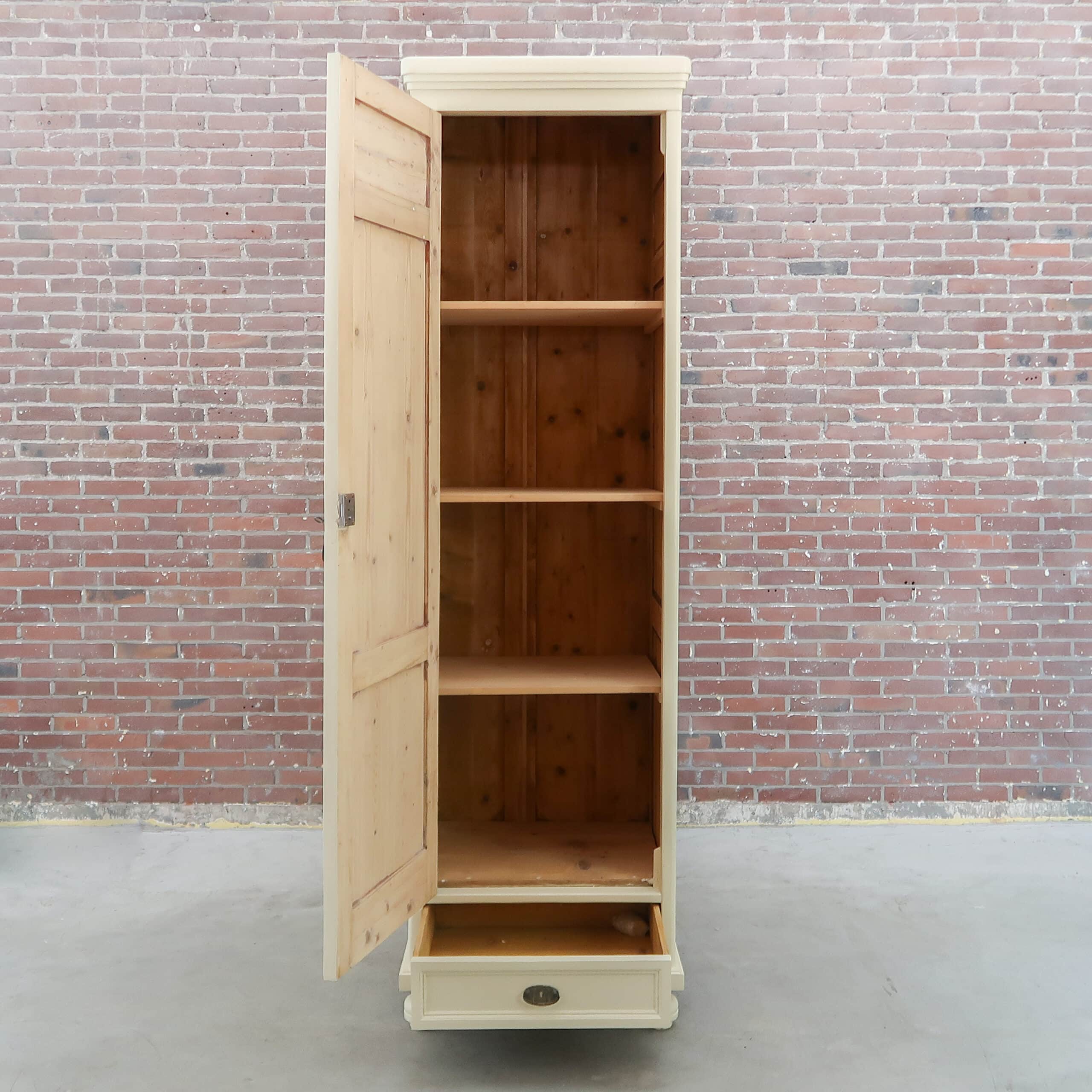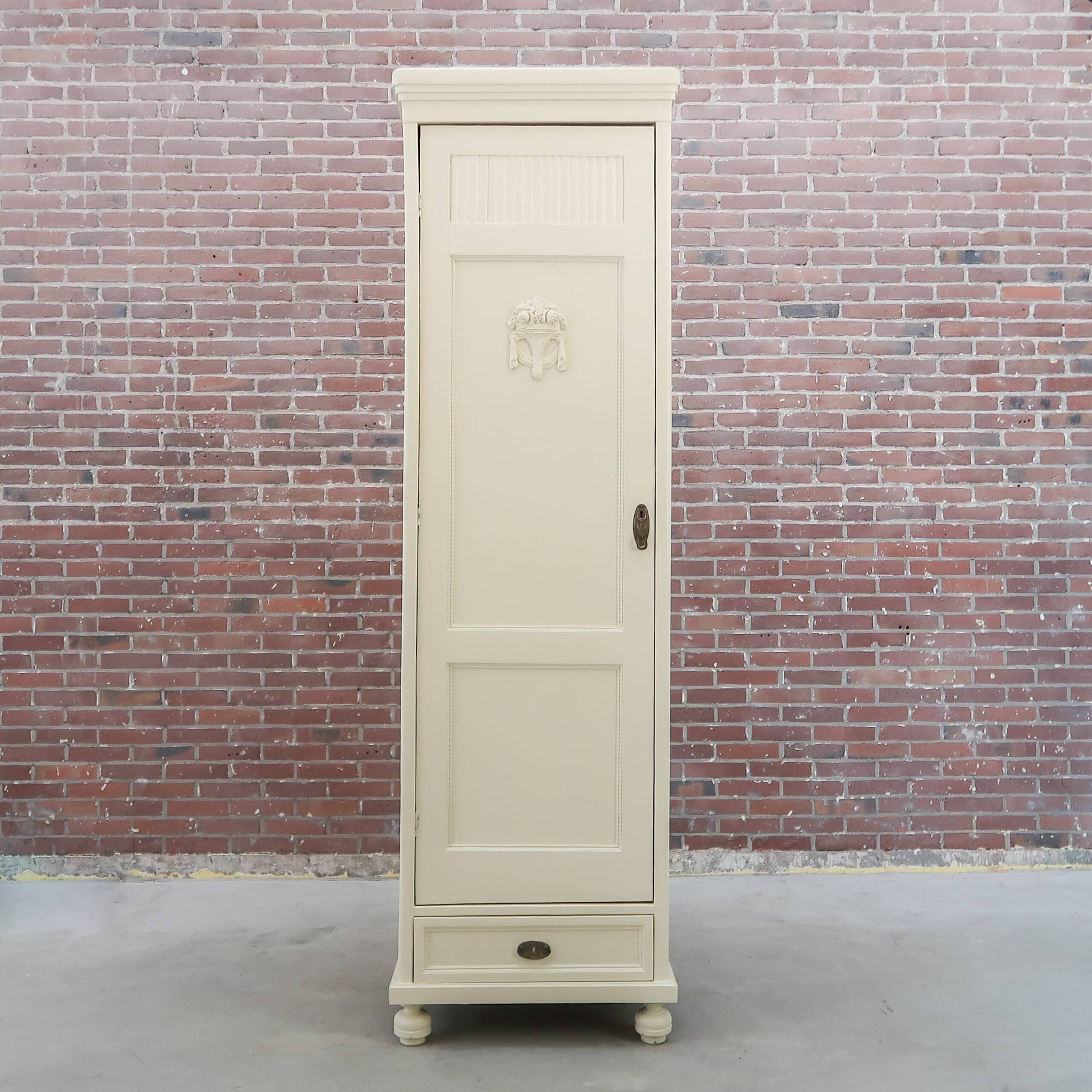 Wederom een prachtige hoge eendeurs linnenkast! Deze hebben we gevonden en nagekeken waar nodig. Deze kast is extra leuk door haar uniek verweerde look.