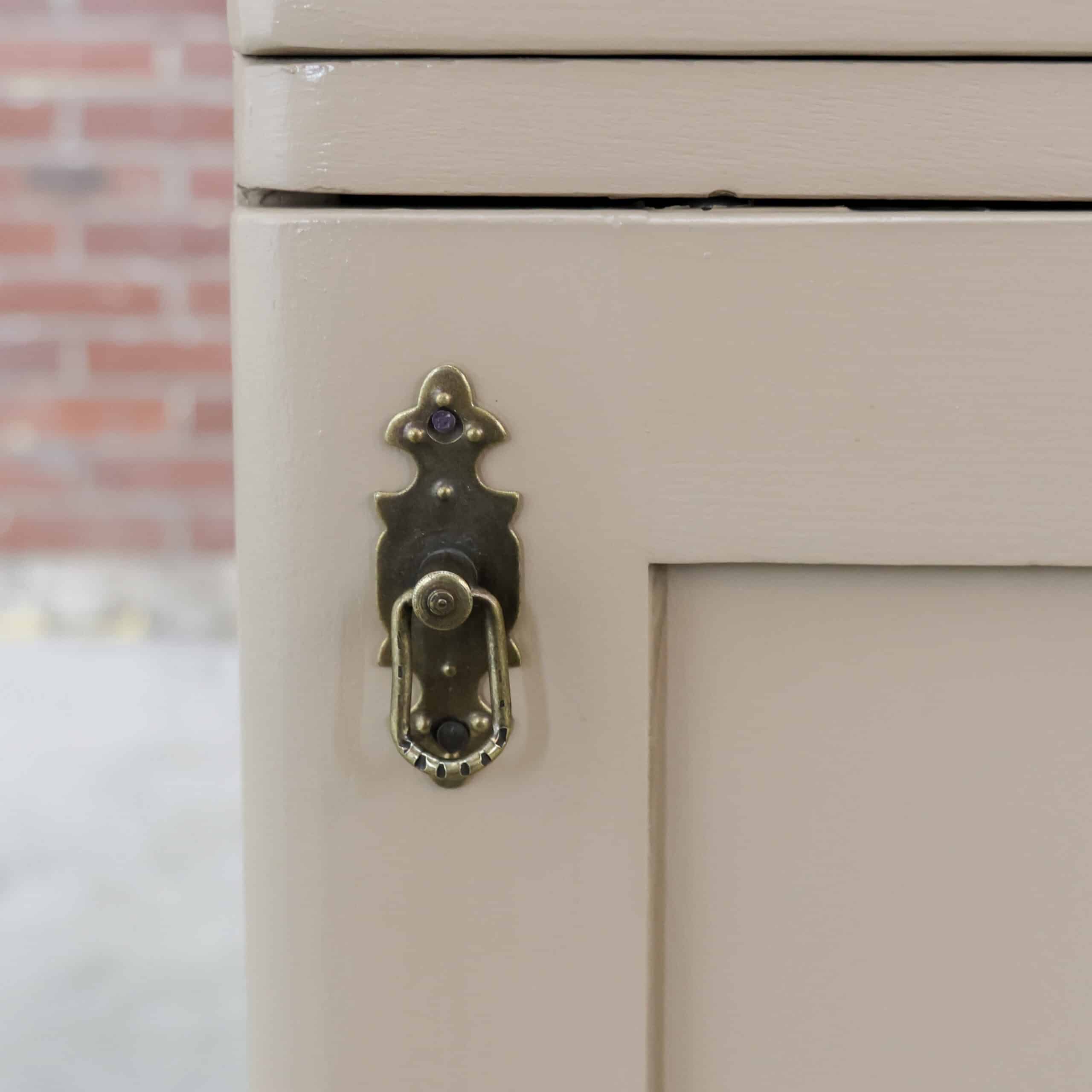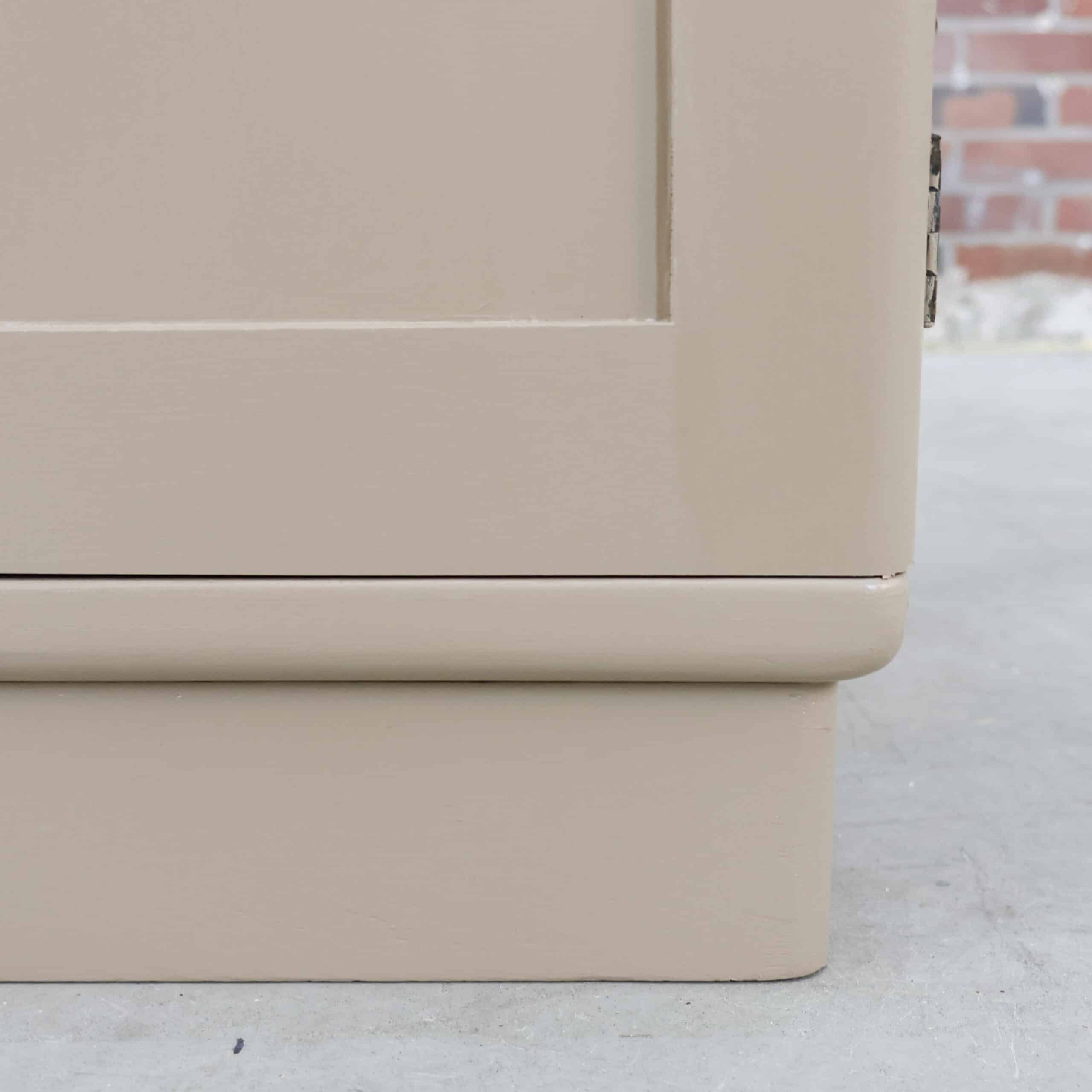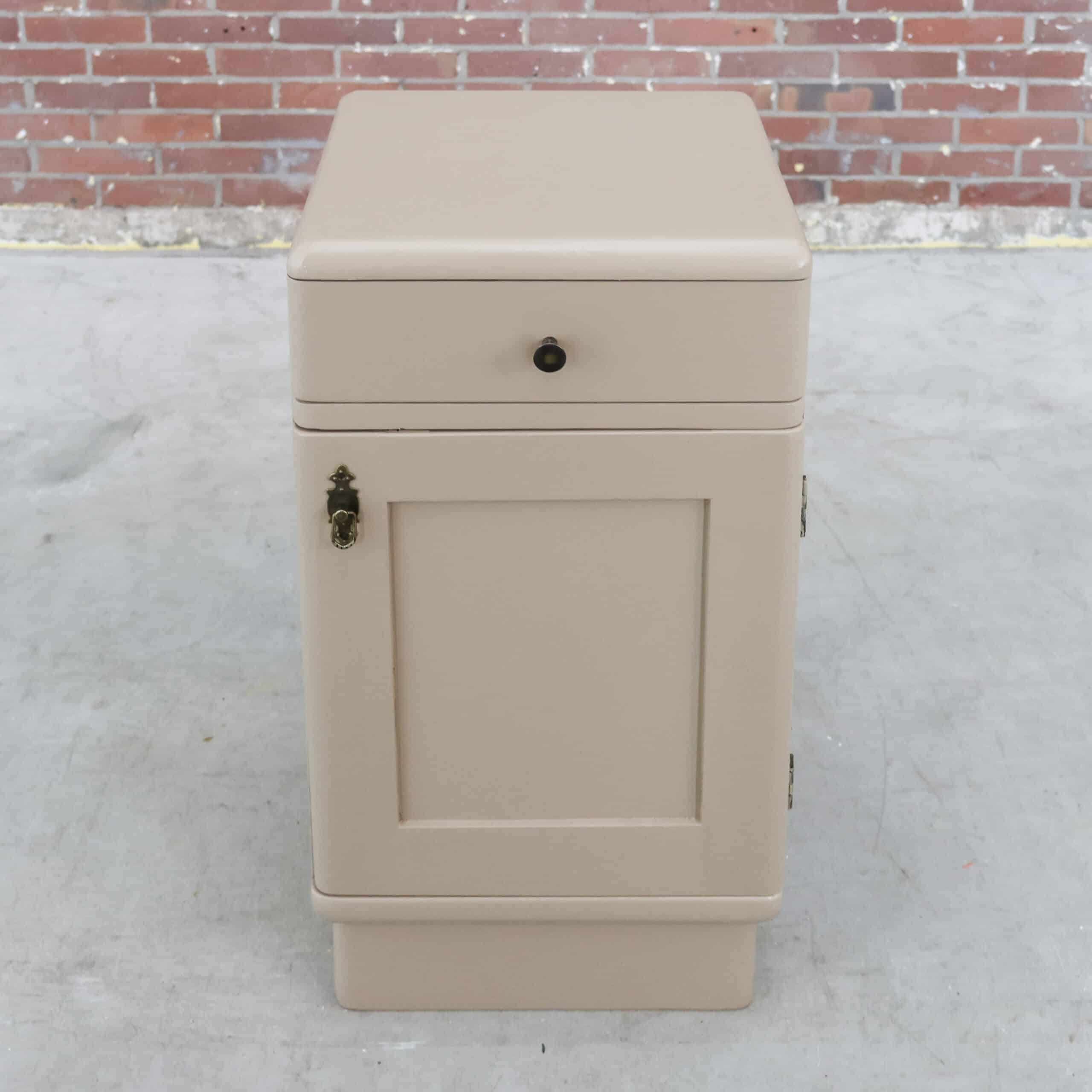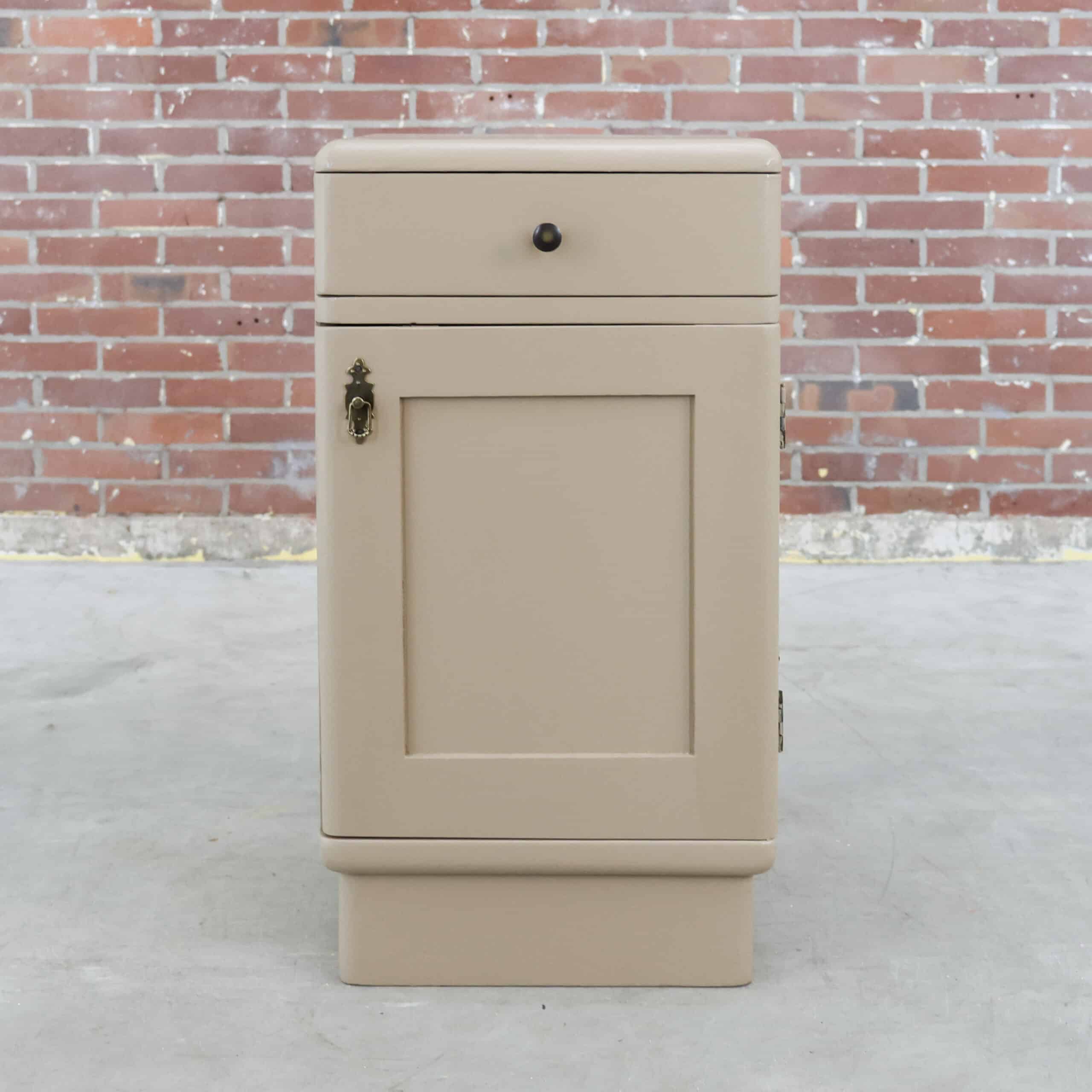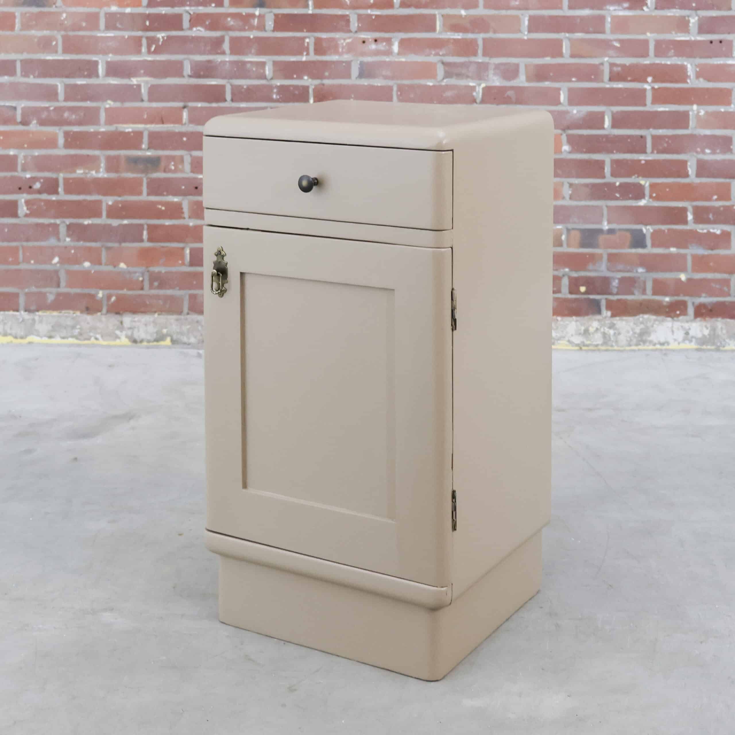 Mooi taupe brocante nachtkastje met handige lade, opgespeurd in Hongarije. Een brocante beauty die prachtig naast elk bed staat.