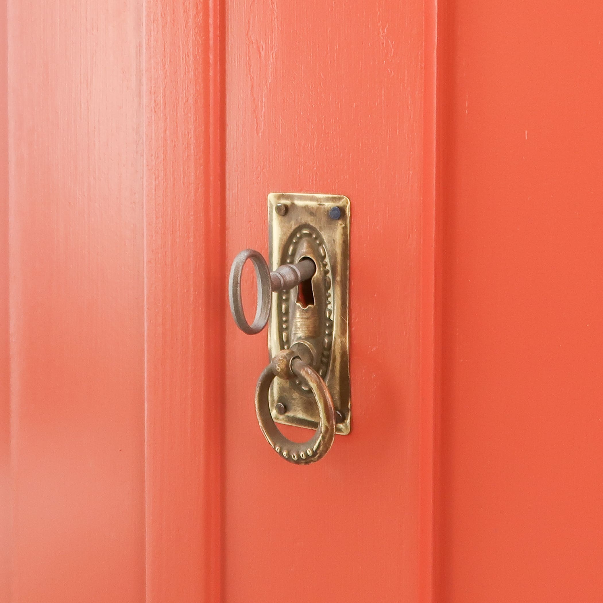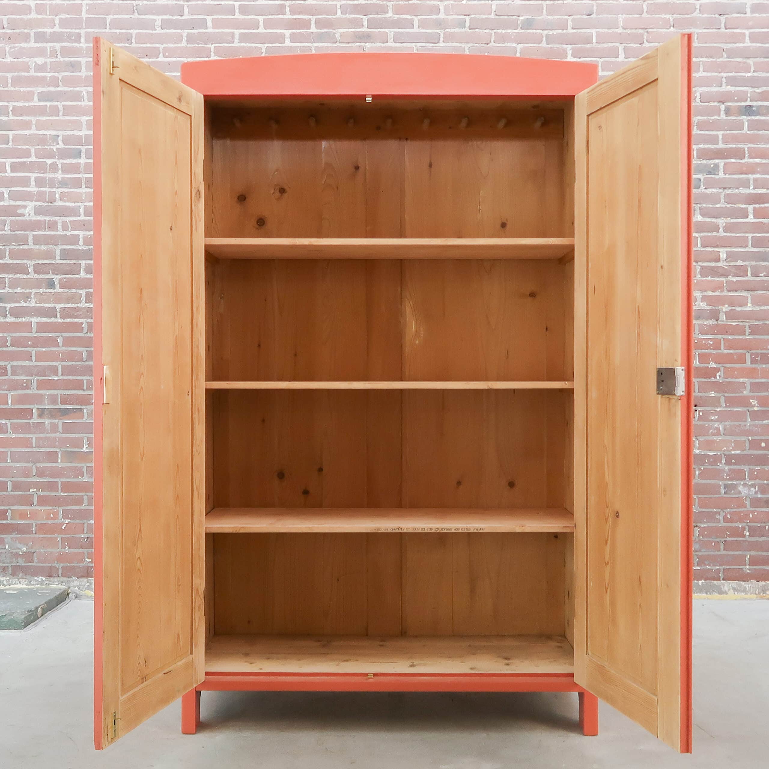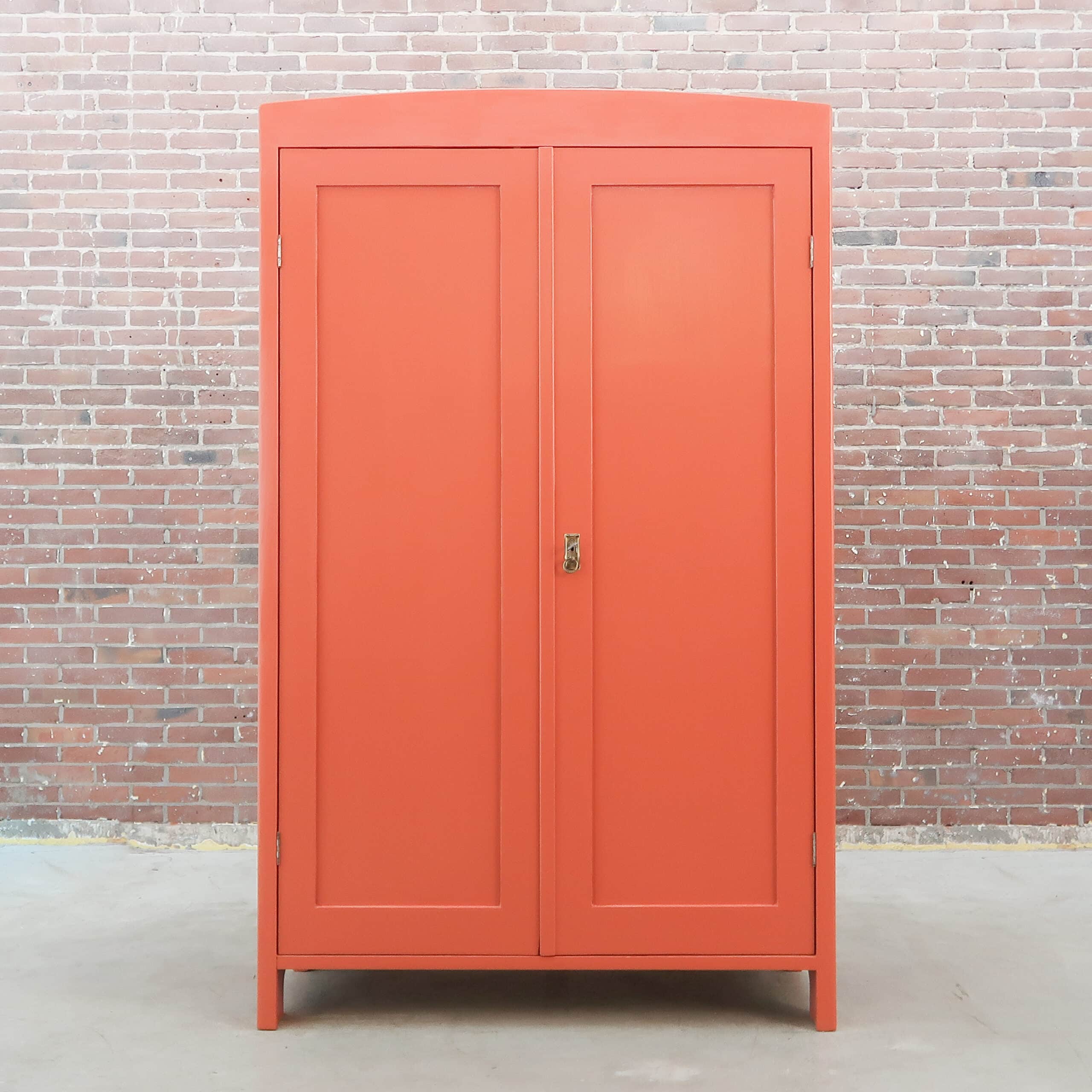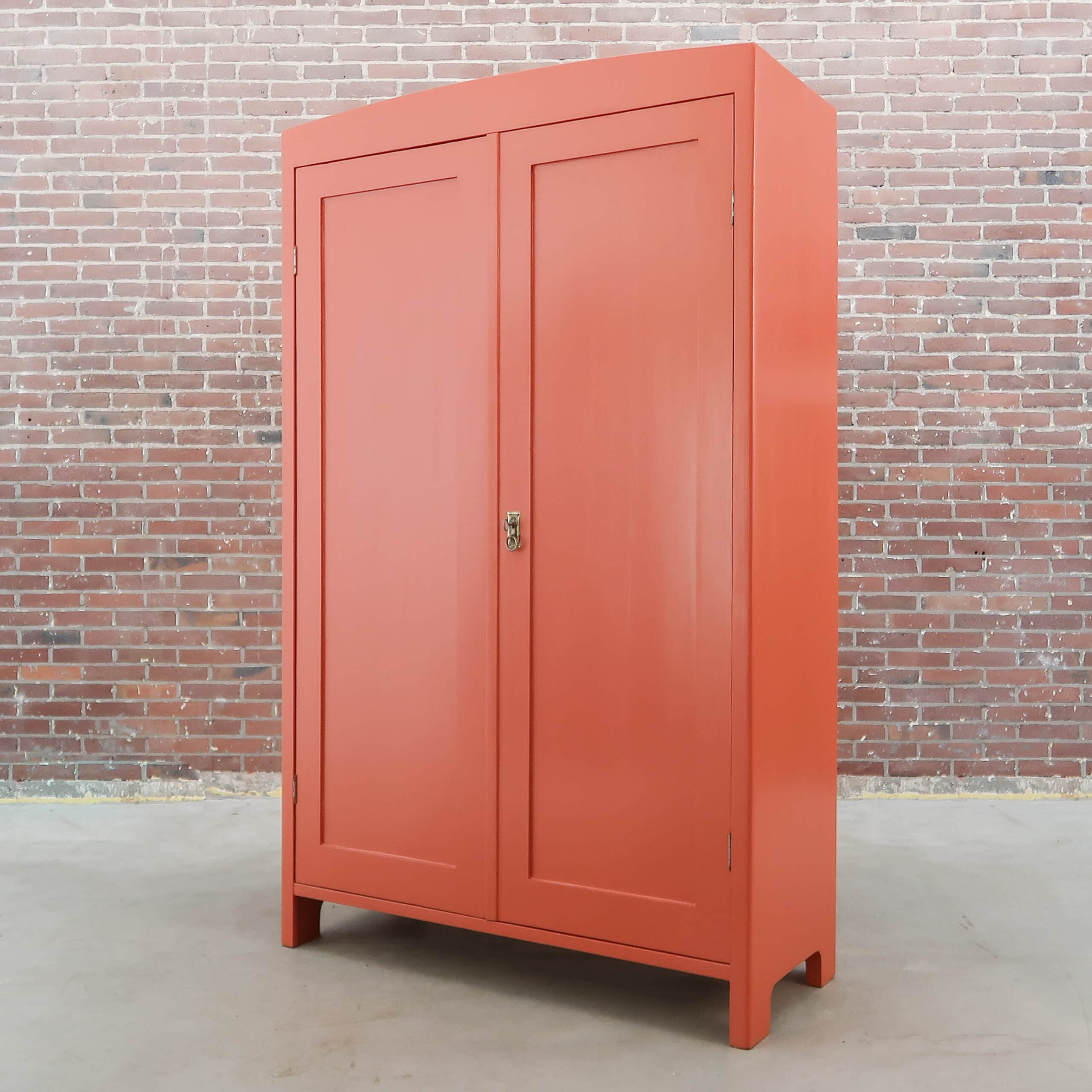 Deze terracotta oranje linnenkast hebben we opgespeurd in Hongarije en opgeknapt waar nodig. Zo heeft ze oa nieuwe planken en een bijzonder mooie kleur gekregen.