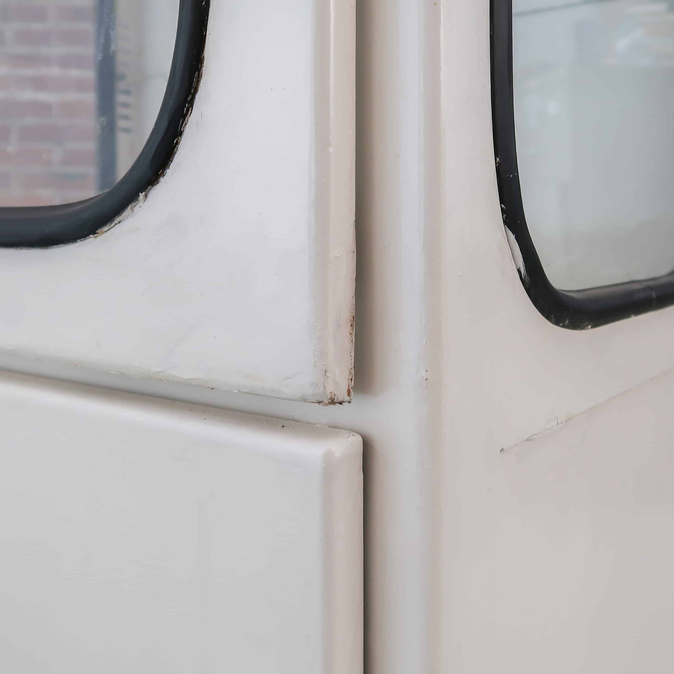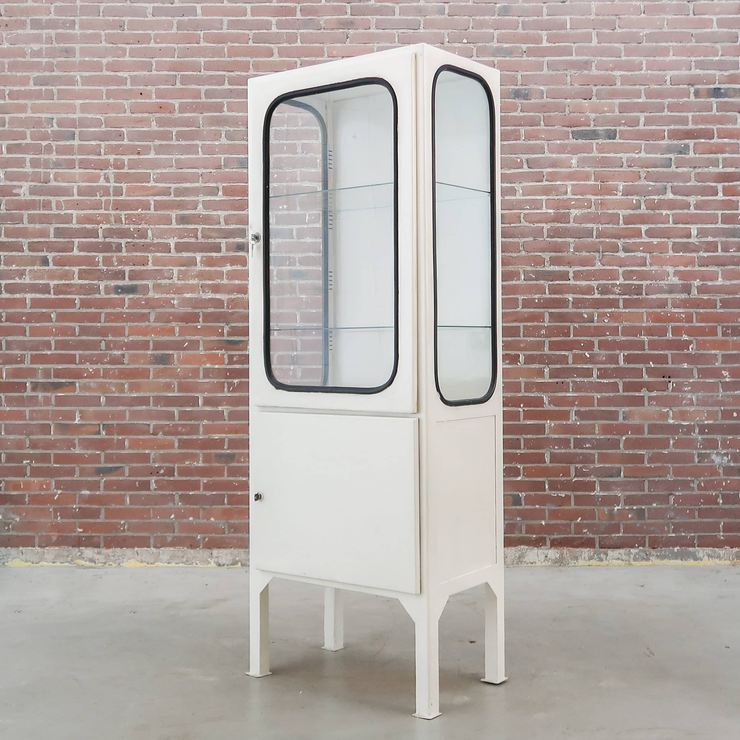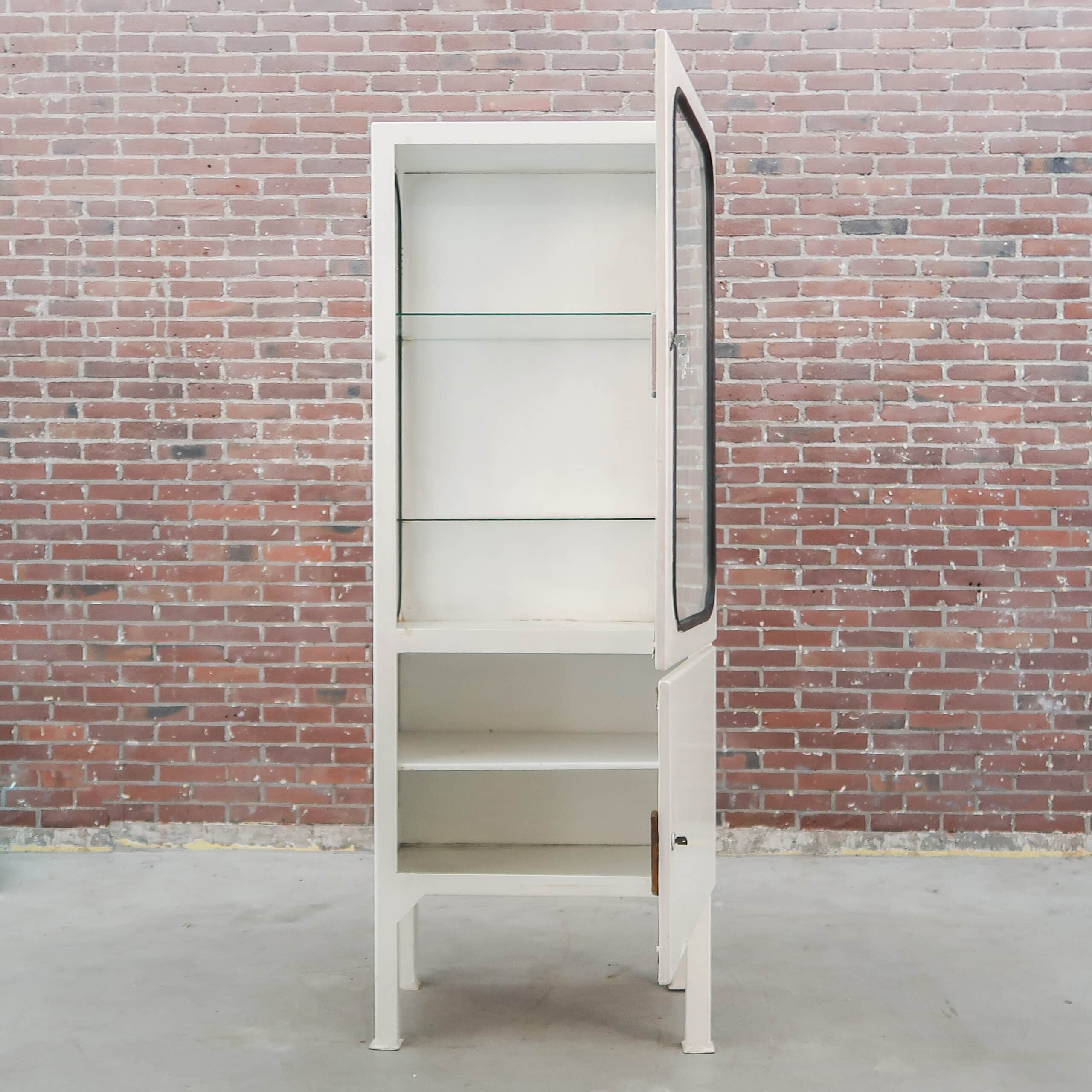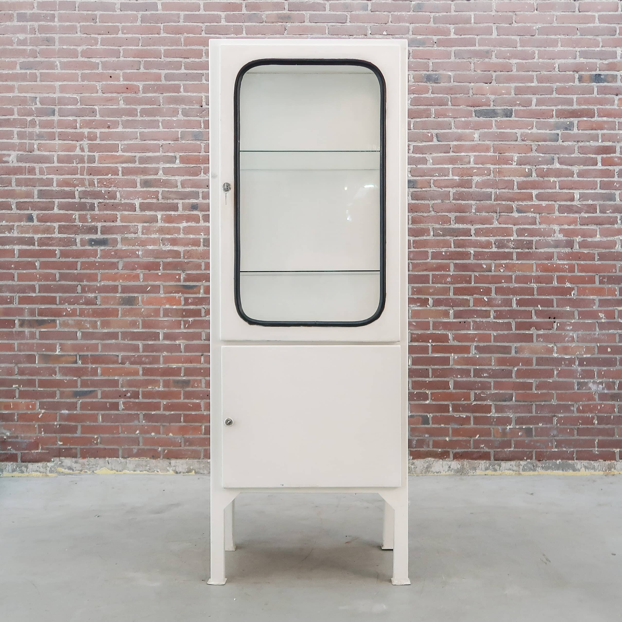 Mooie vintage dokterskast uit Hongarije! Nog geheel in originele staat en dat zie je terug aan het verweerde glas en metaal, wat de kast een echte sfeermaker. Leuk in de keuken, badkamer, woonkamer.. Eigenlijk overal 🙂