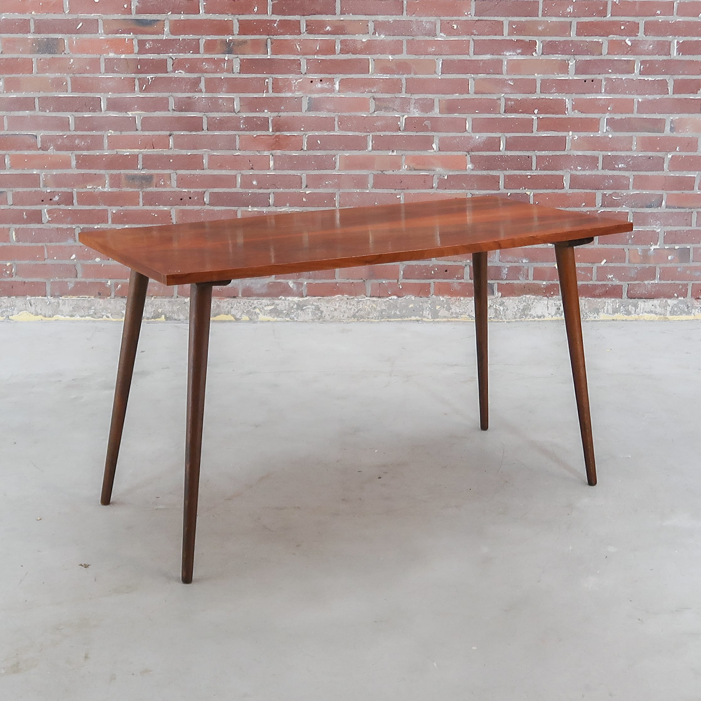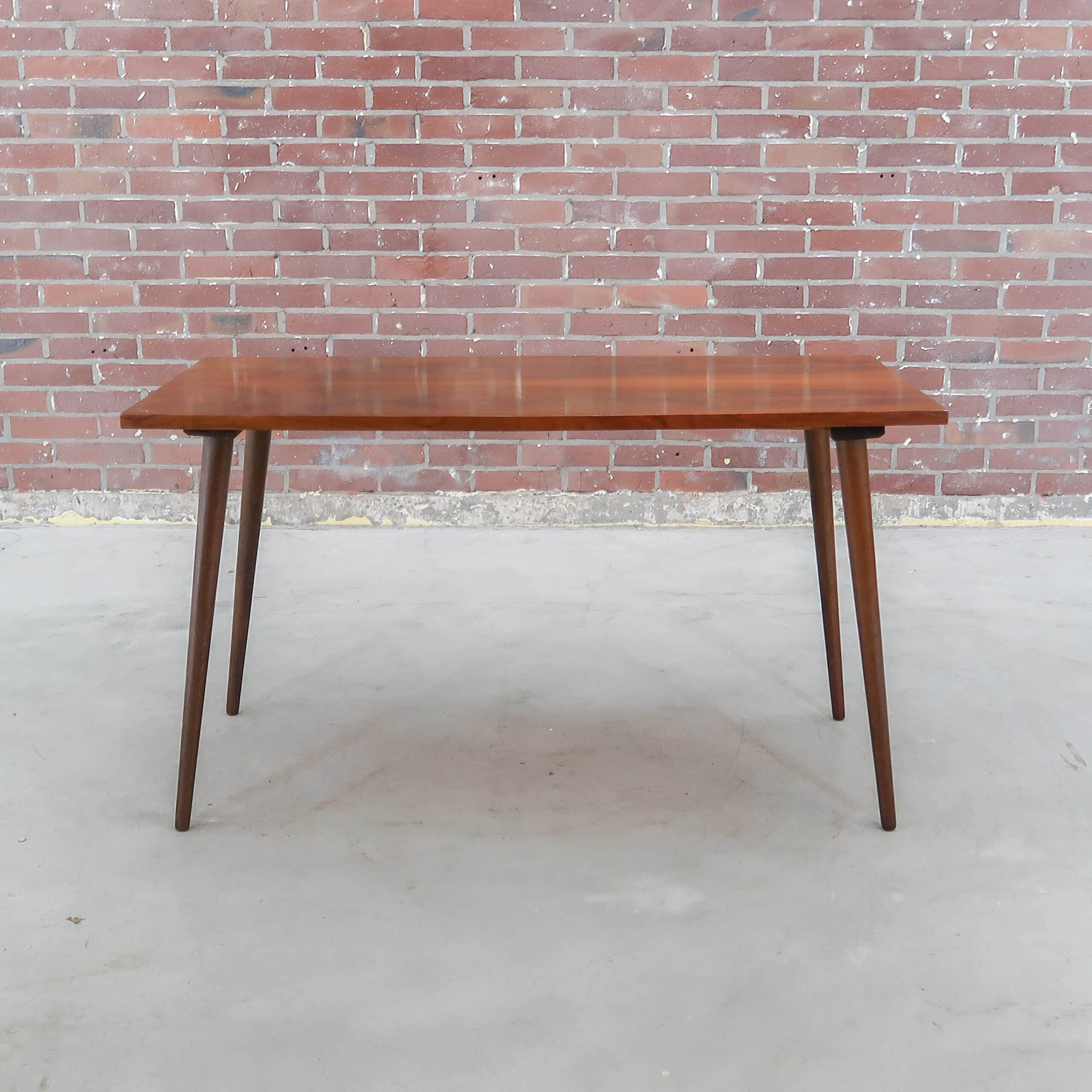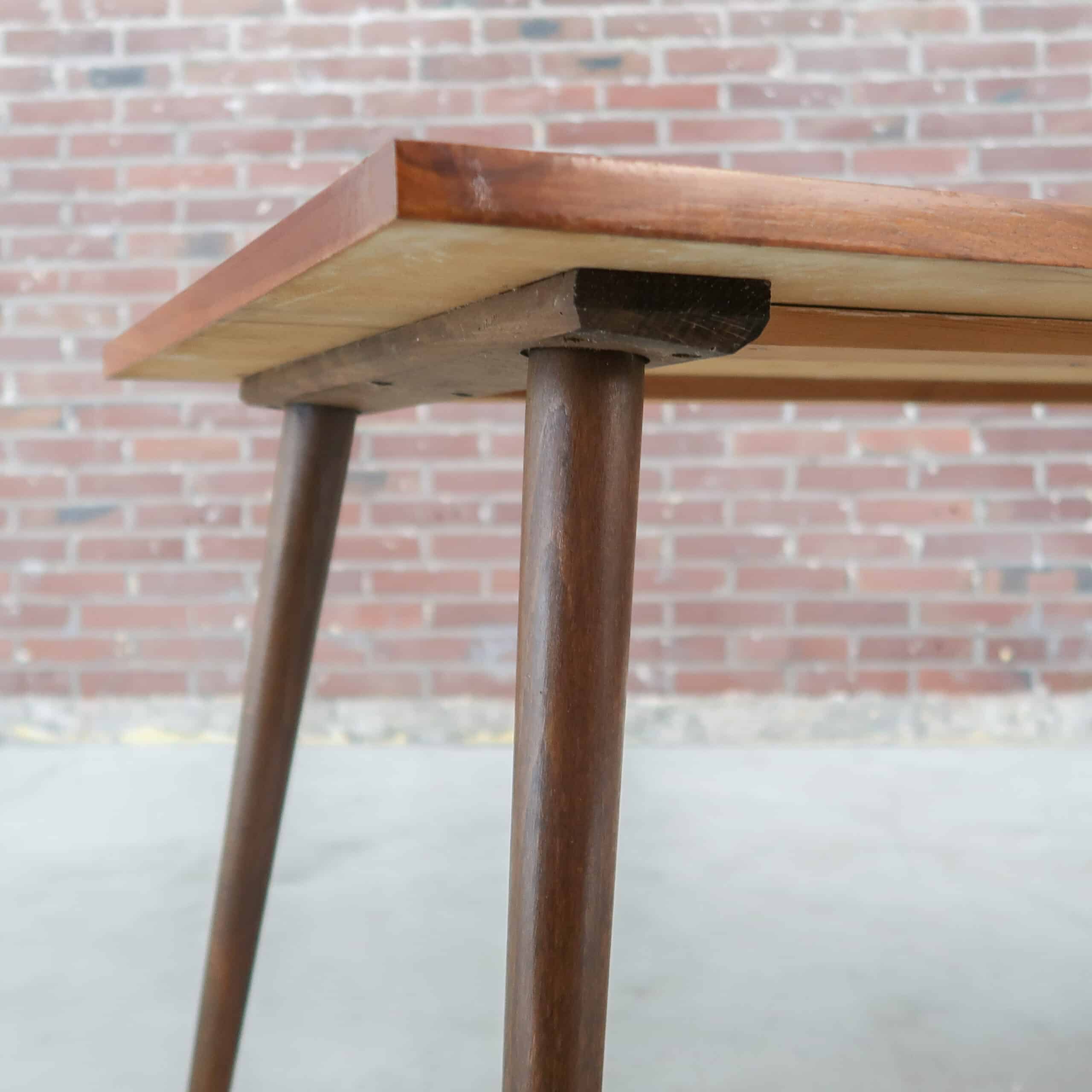Deze slanke vintage salontafel komt uit de jaren ’70, gemaakt door Drevovýroba Košice in voormalig Tsjechoslowakije. Het warme verweerde walnootfineer en de taps toelopende poten geven haar een elegante, tijdloze uitstraling. Een subtiel ontwerp met een knipoog naar Scandinavisch modernisme. Een prachtig stuk met geschiedenis en karakter voor in elk interieur.