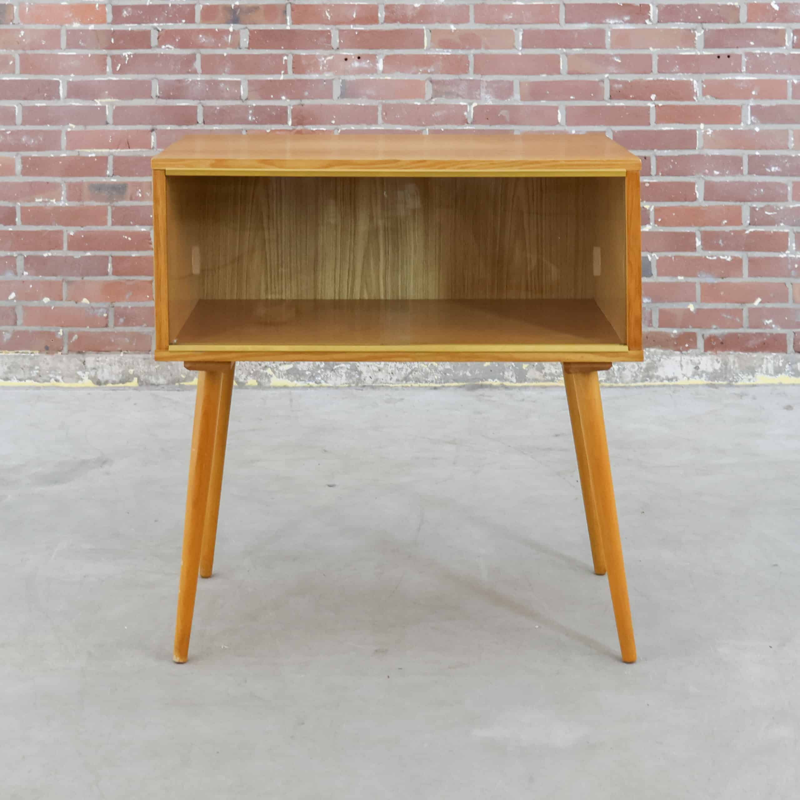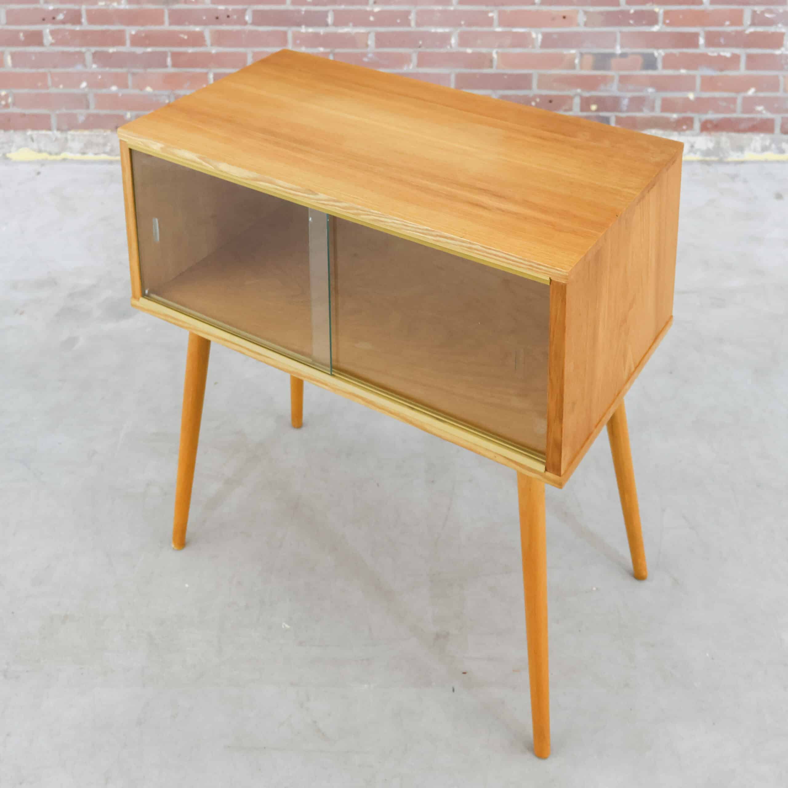 Wat een mooi vintage vitrinekastje! Het kastje twee glazen schuifdeurtjes en is een prachtige in al zijn eenvoud! Ook leuk als nachtkastje.
