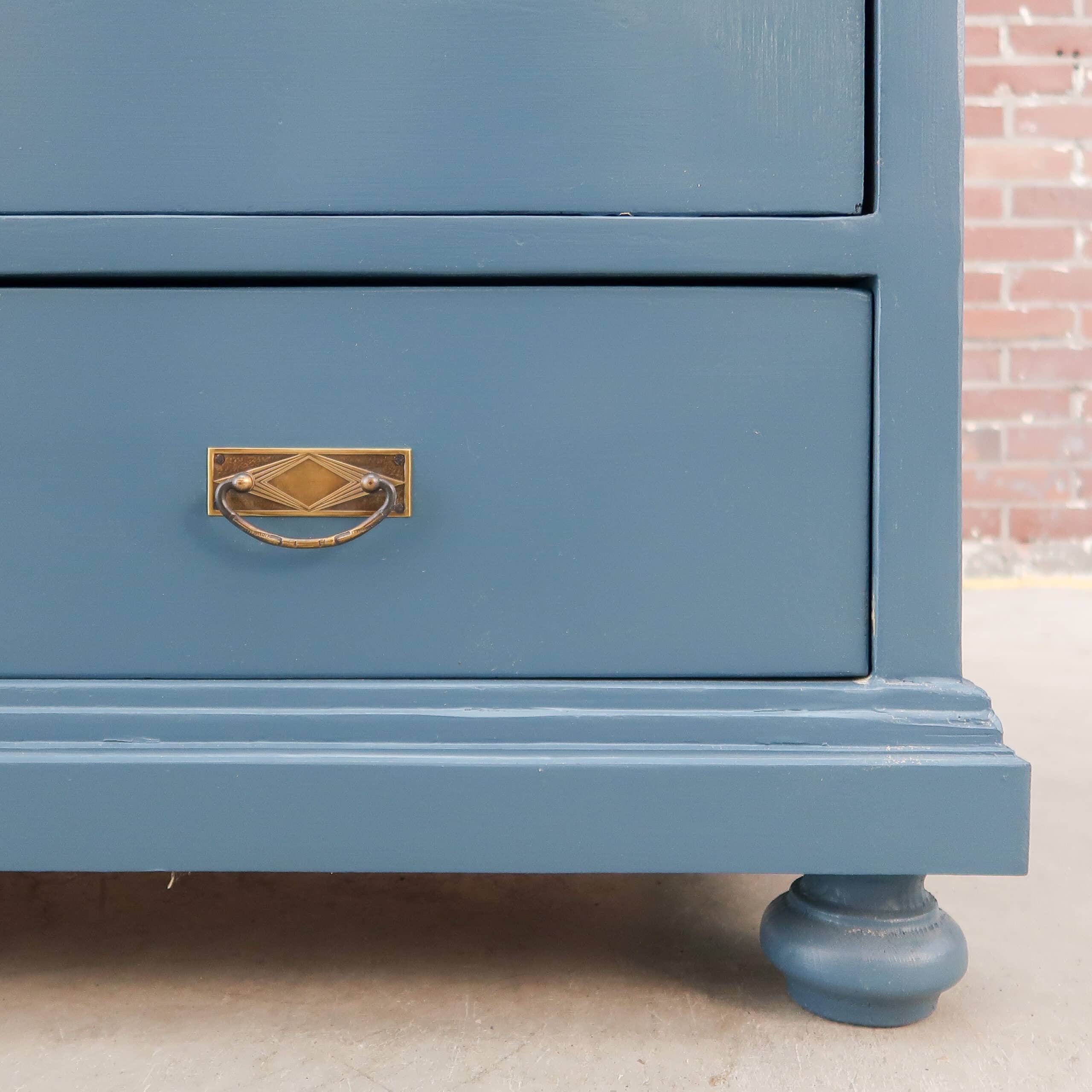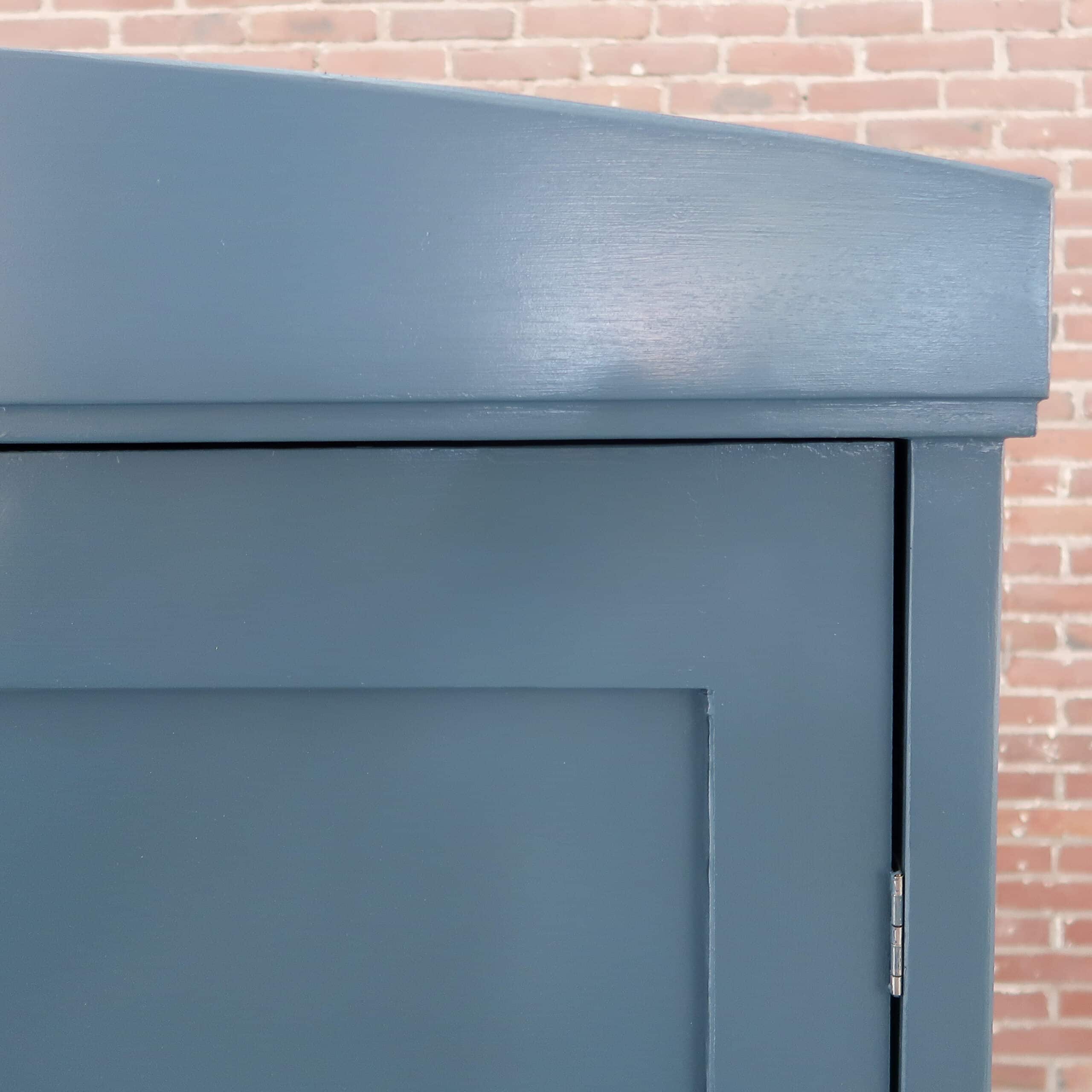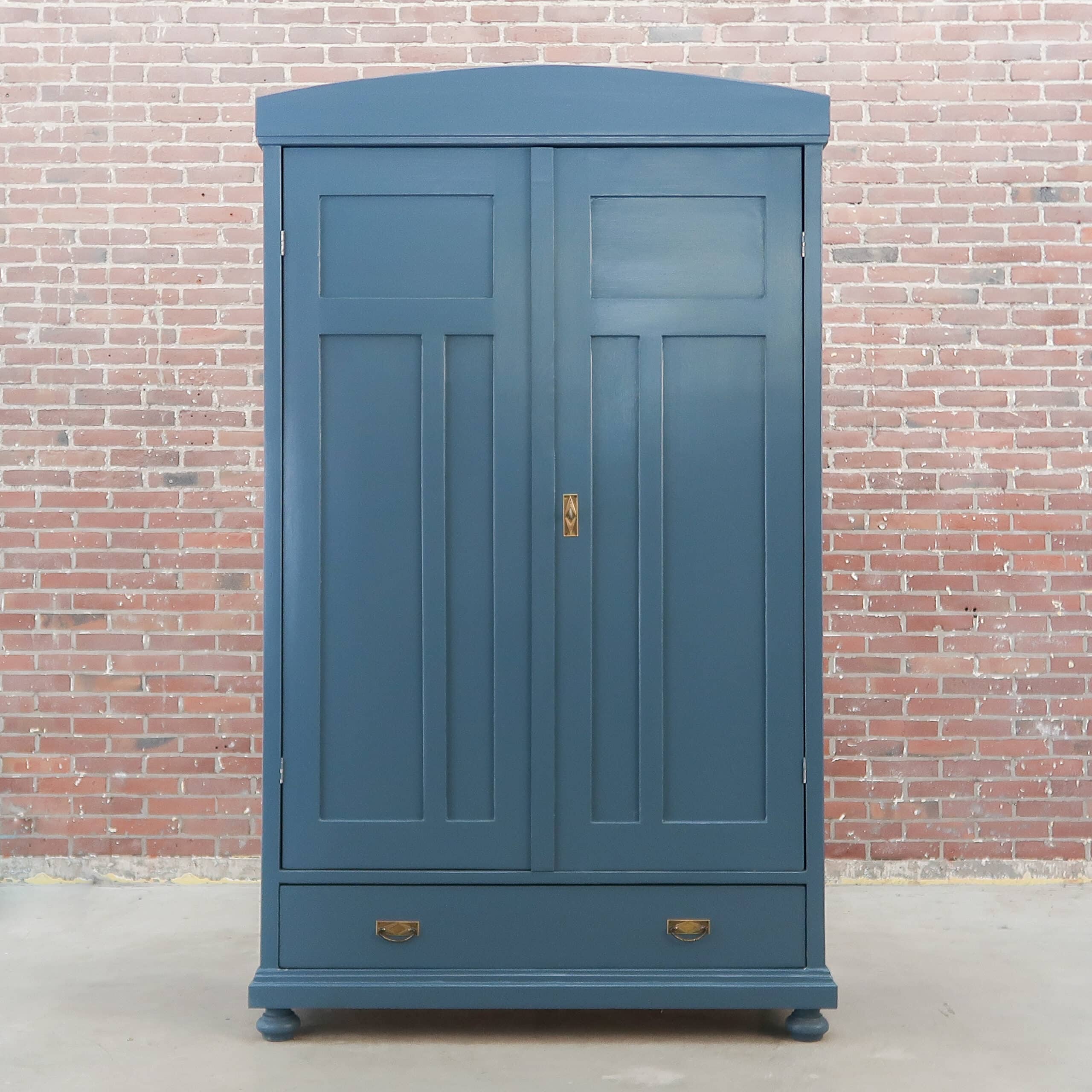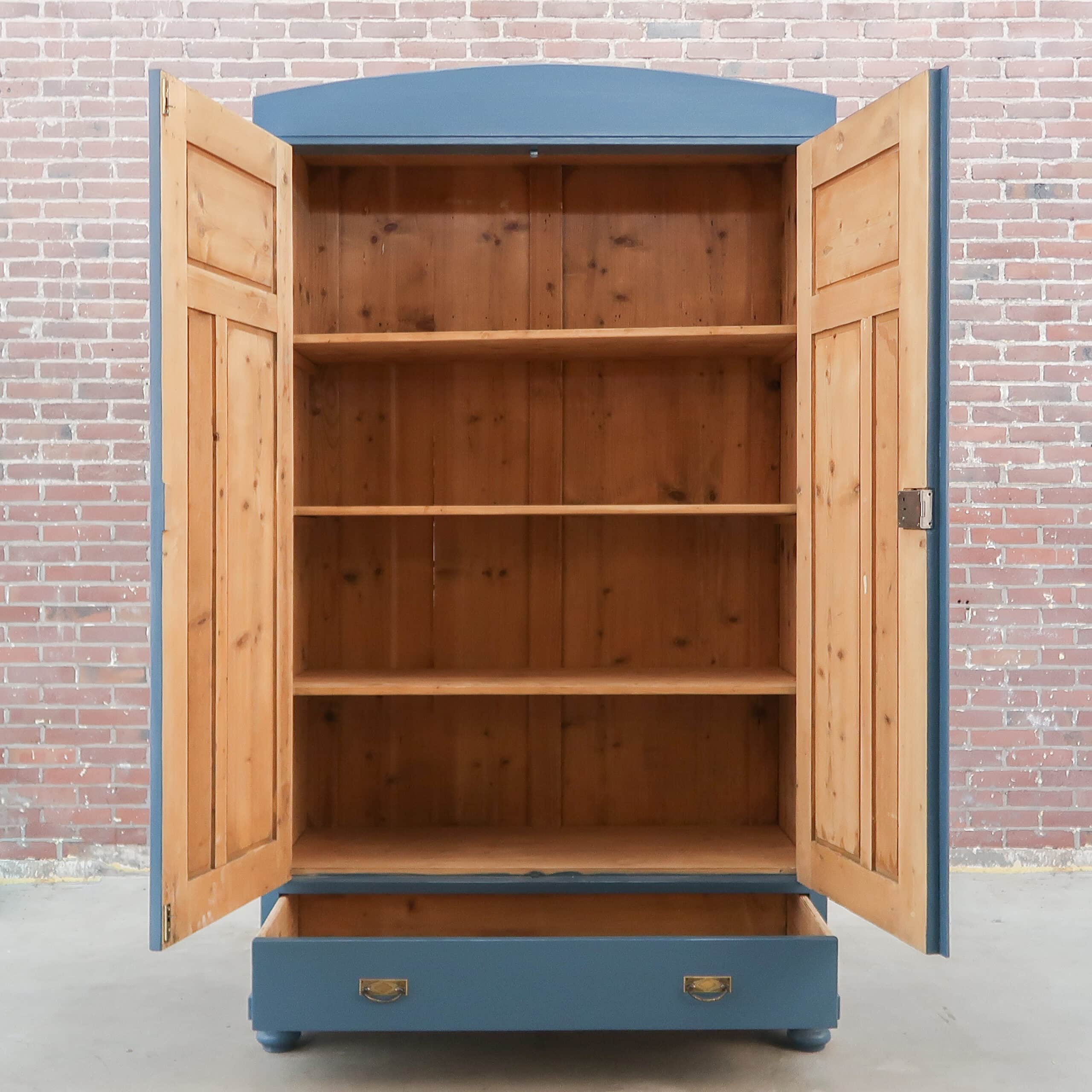 Nèt binnen, deze fijne blauwe linnenkast! We hebben haar opgeknapt waar nodig en naast nieuwe planken ook een mooie blauwe kleur gegeven.