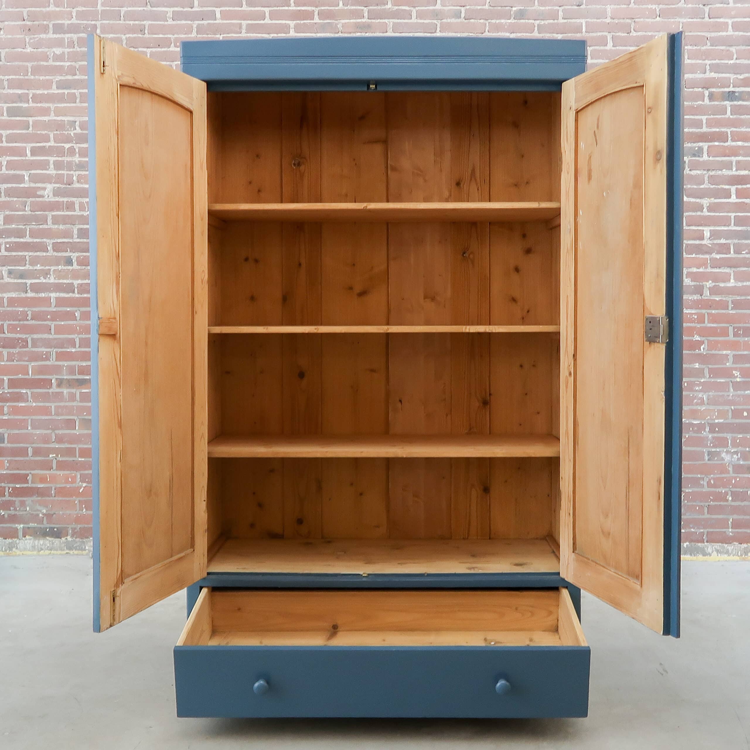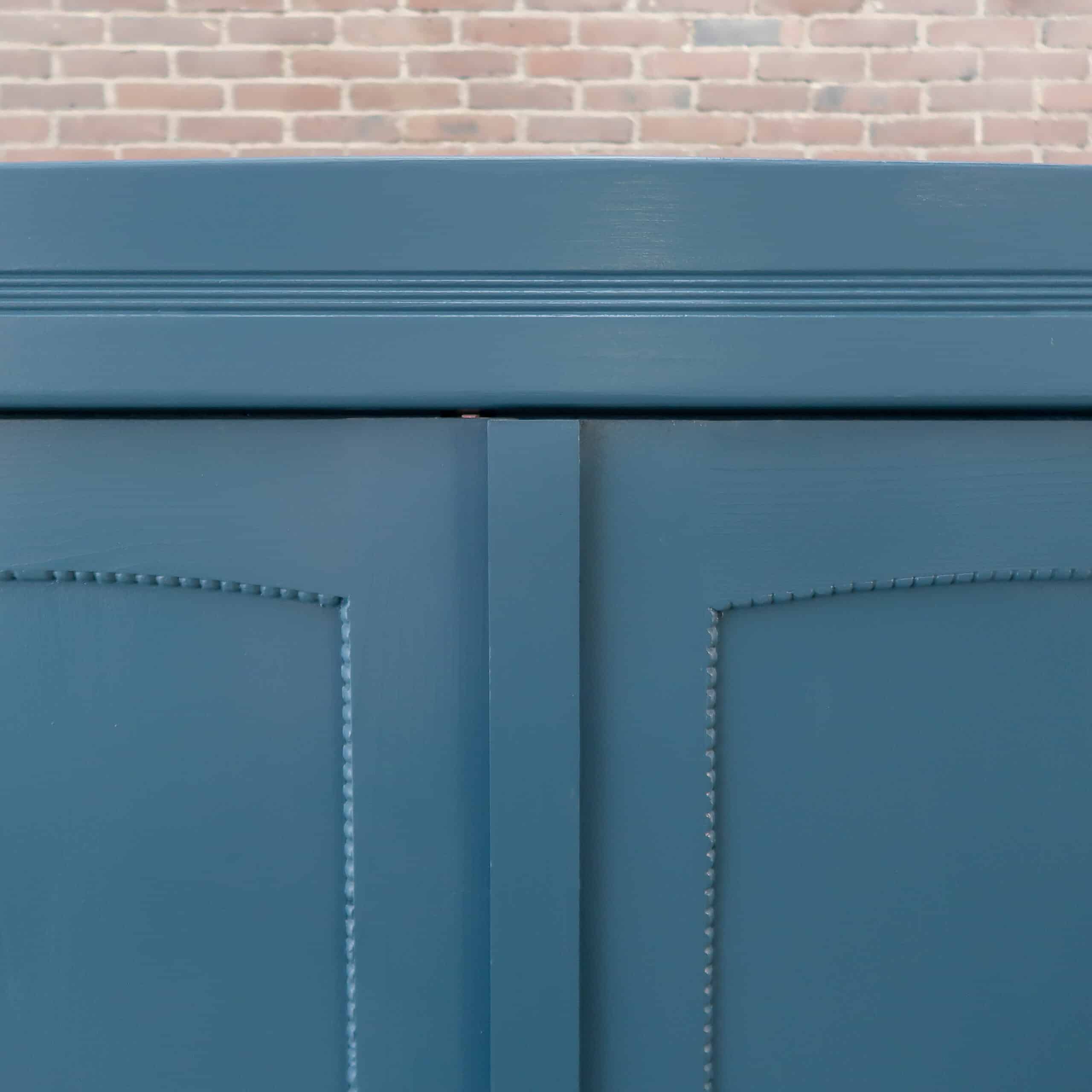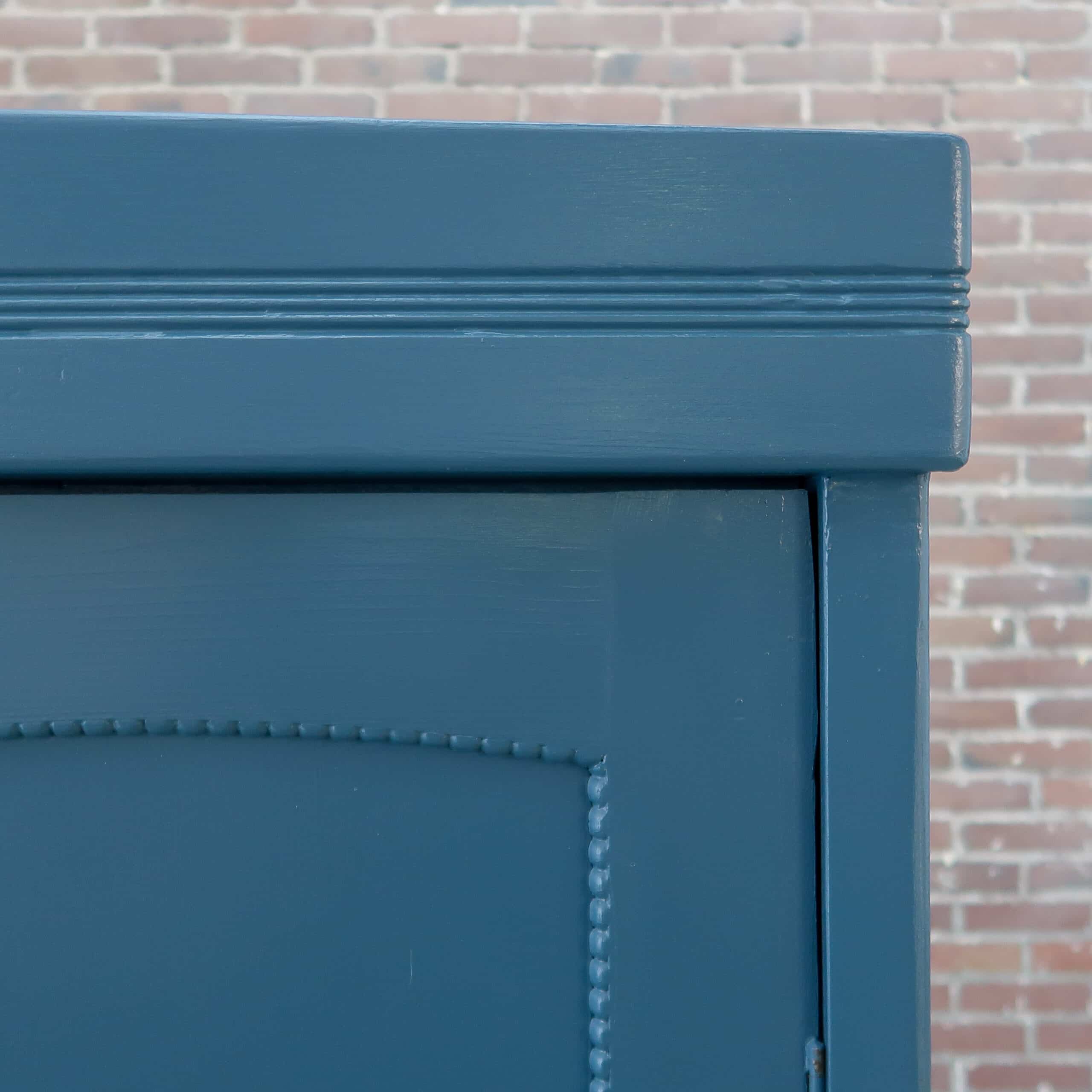 Nèt binnen, deze fijne blauwe linnenkast! We hebben haar opgeknapt waar nodig en naast nieuwe planken ook een mooie blauwe kleur gegeven.