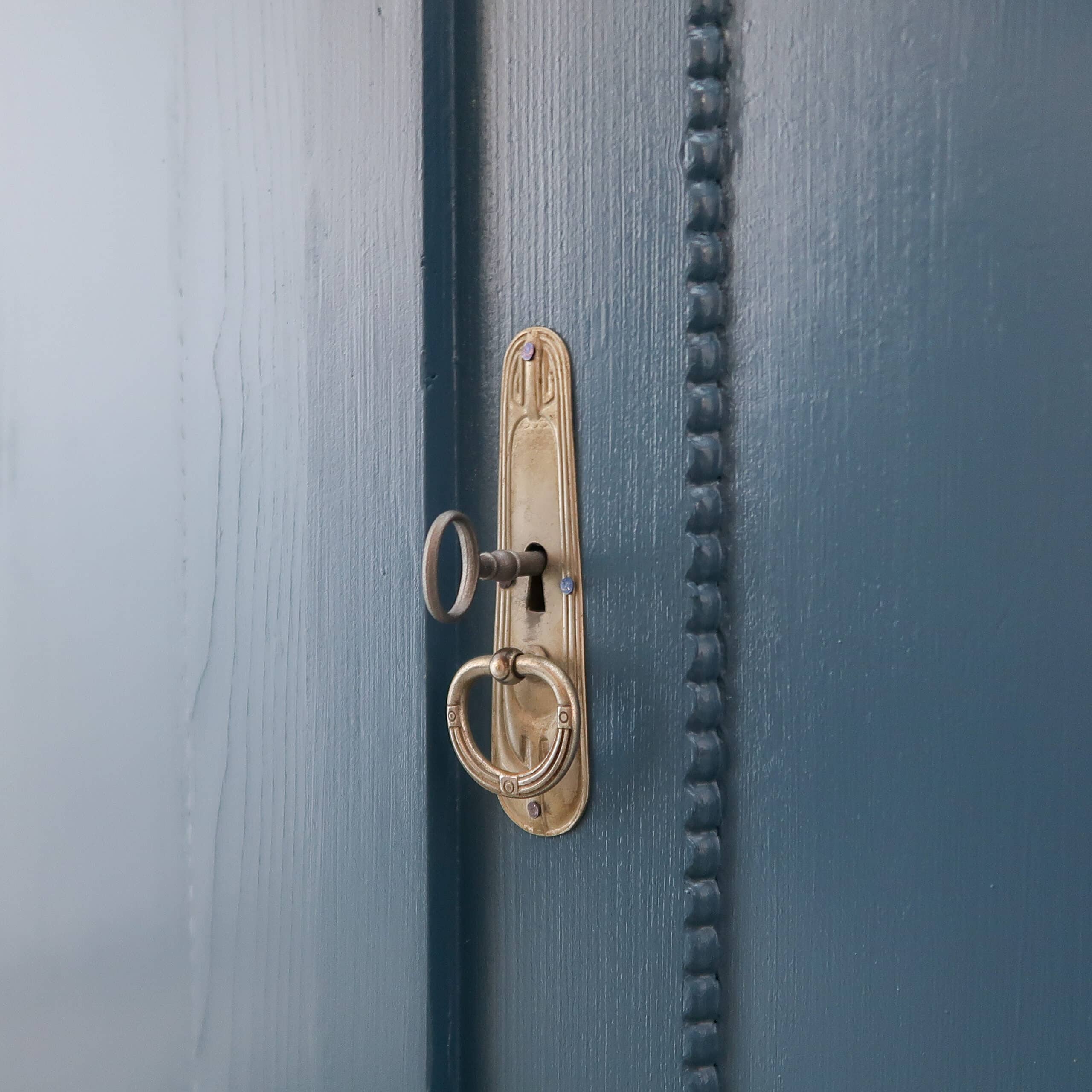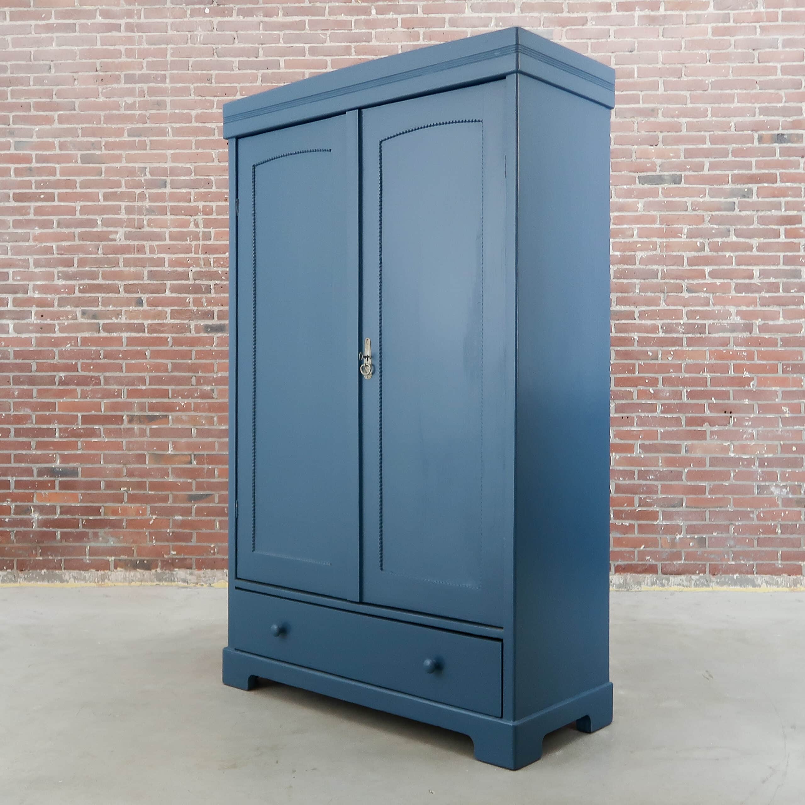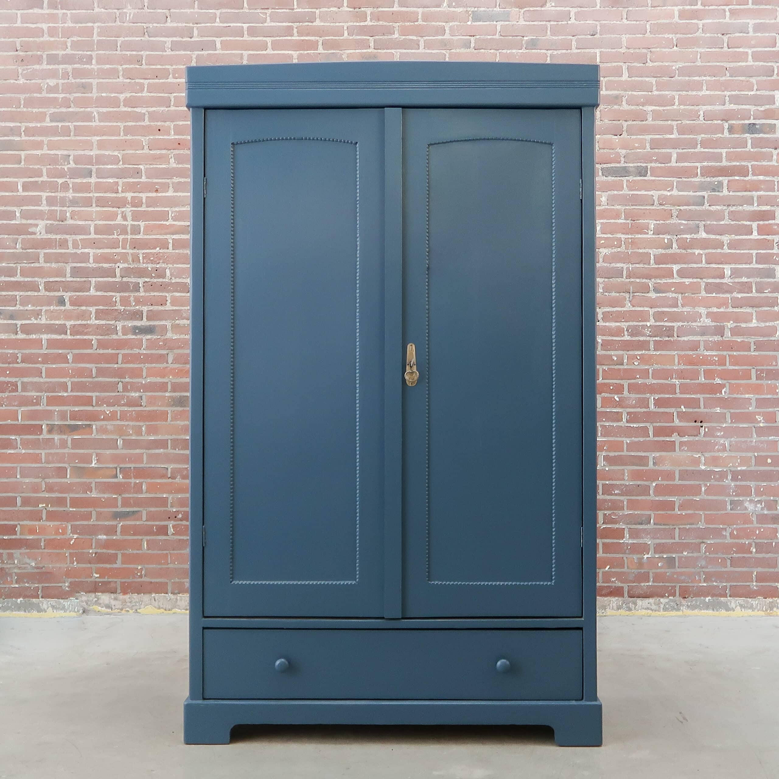 Nèt binnen, deze fijne blauwe linnenkast! We hebben haar opgeknapt waar nodig en naast nieuwe planken ook een mooie blauwe kleur gegeven.