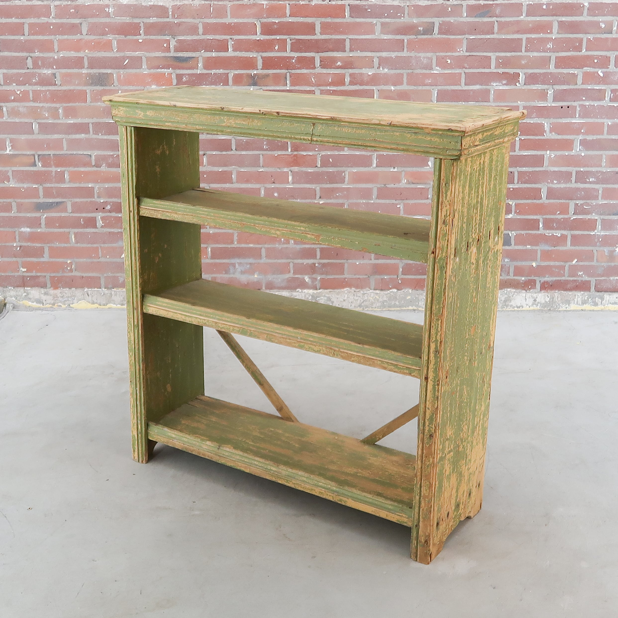 Leuk brocante boekenrek uit Hongarije met een stoere look. Echt prachtig in zijn eenvoud en genoeg plek voor al je boeken en spulletjes.