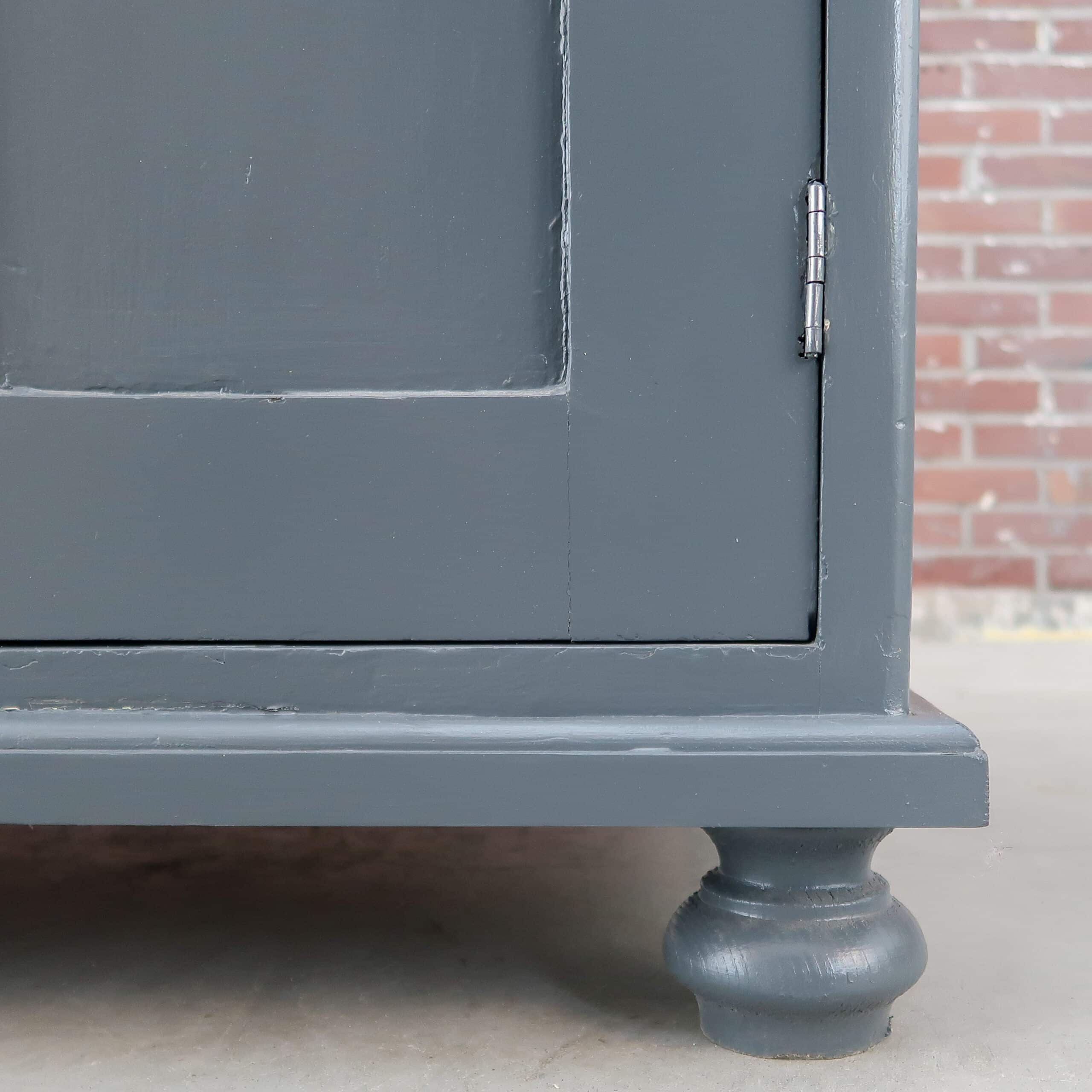 Deze brocante grijze buffetkast hebben we opgespeurd in Hongarije. De kast is opgeknapt en klaar voor een nieuw leven. Echt een sfeermaker voor elk huis.