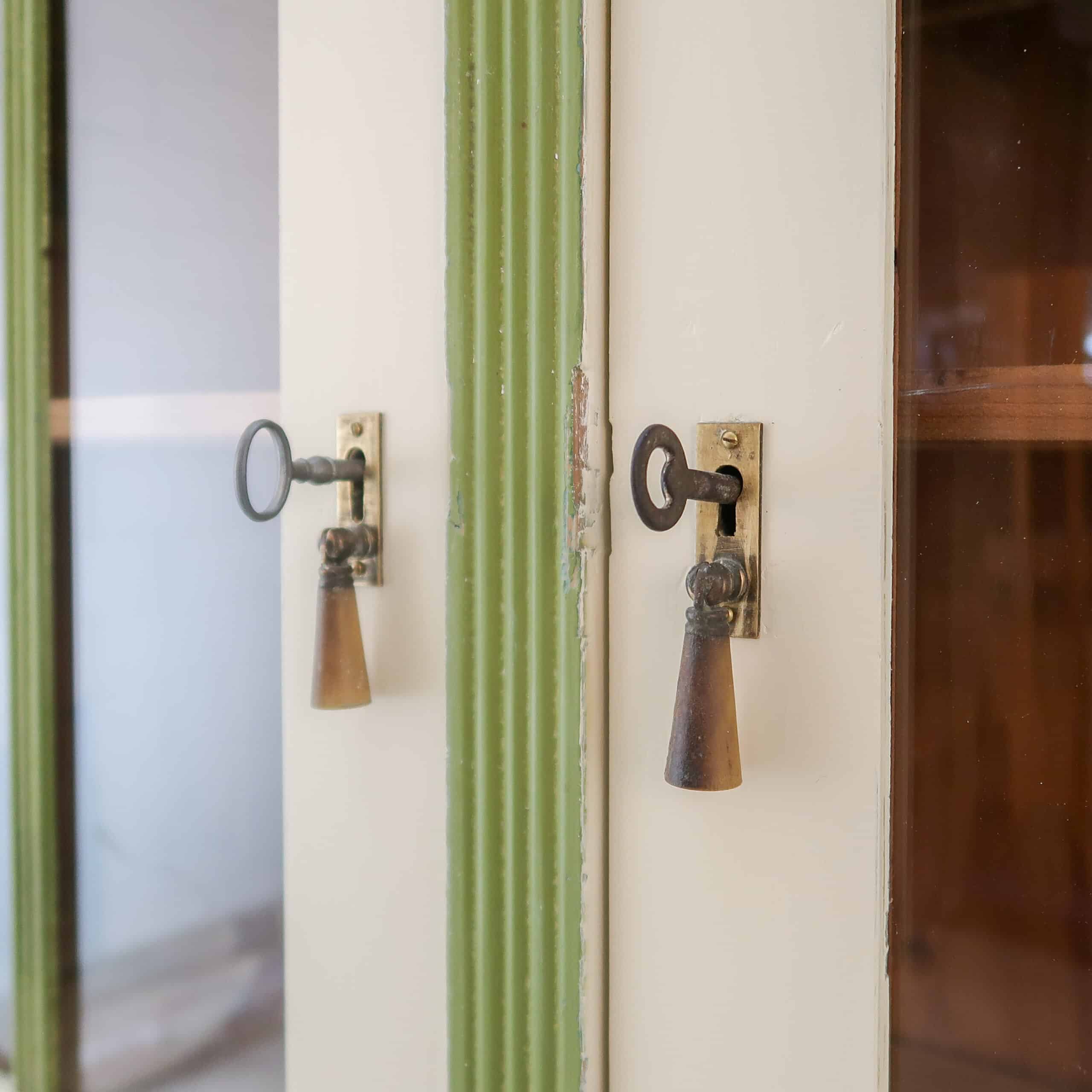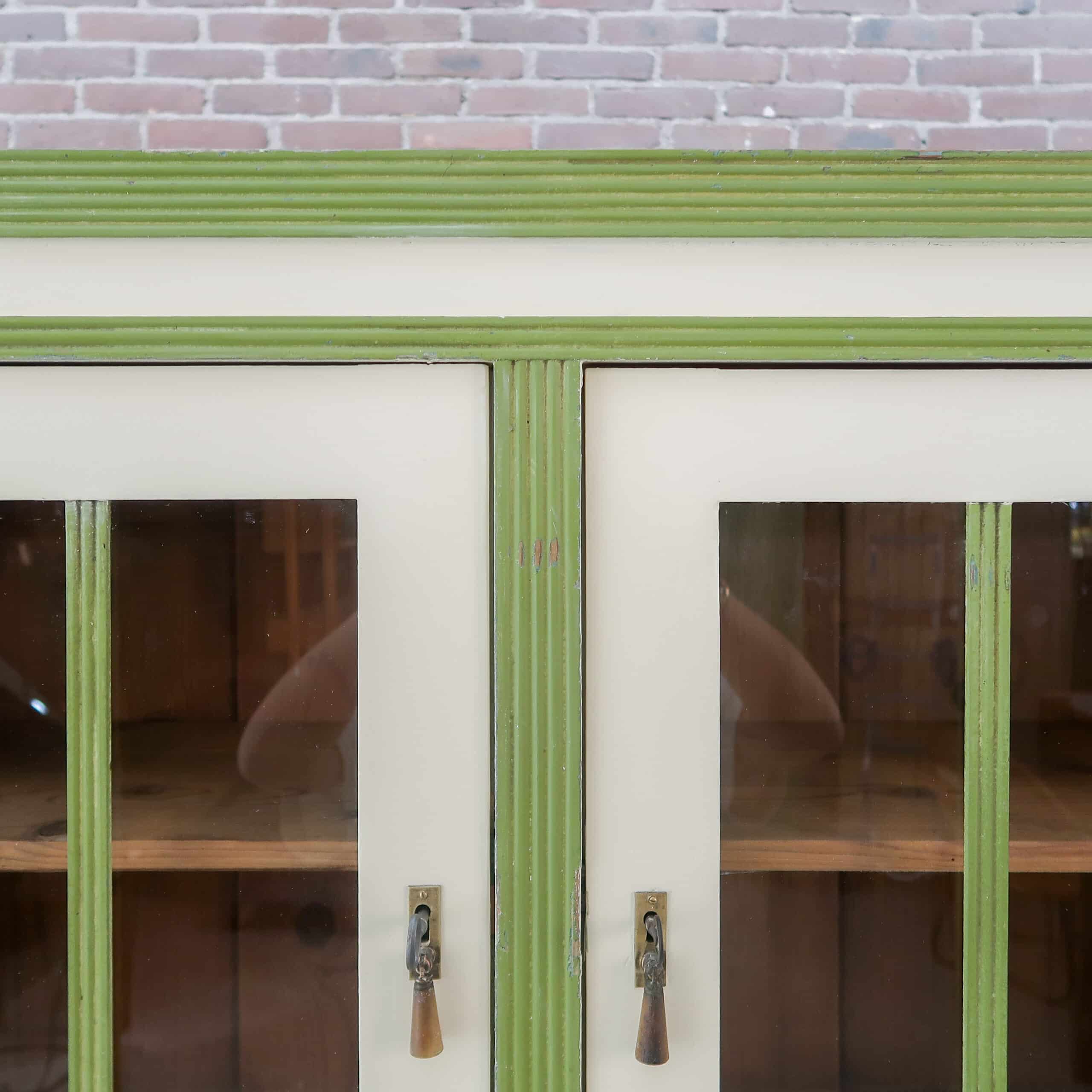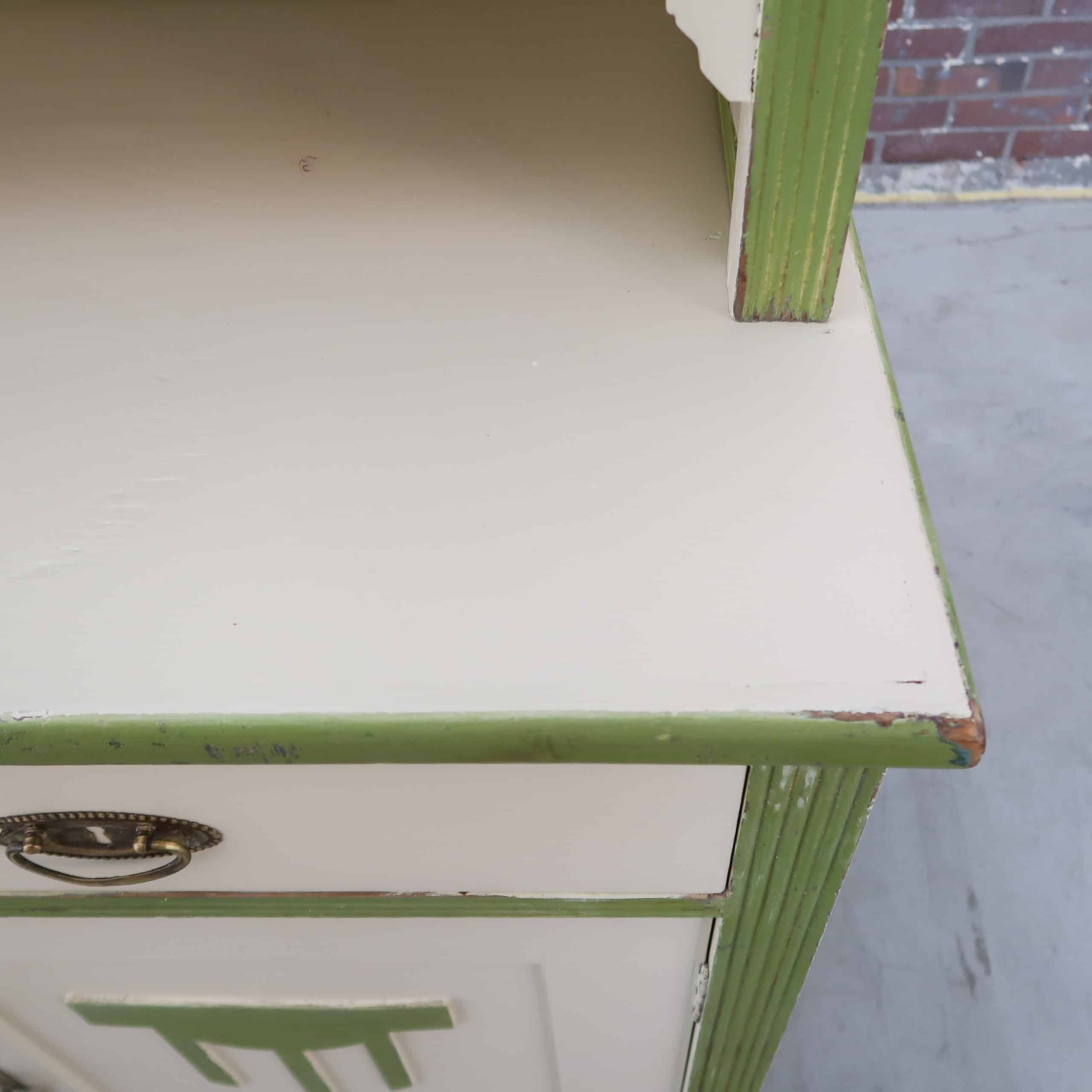 Deze prachtige brocante buffetkast hebben we gevonden in Hongarije. De kast heeft een mooie lichte kleur met groene accenten, daarmee is het echt een sfeermaker voor in de keuken of woonkamer.