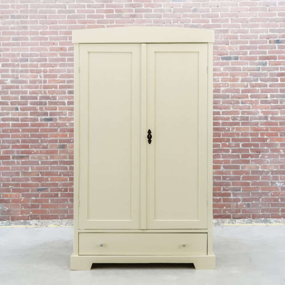 Deze brocante linnenkast hebben we opgespeurd in Hongarije en opgeknapt waar nodig. Ze heeft ze oa nieuwe planken en een bijzondere kleur crème gekregen.