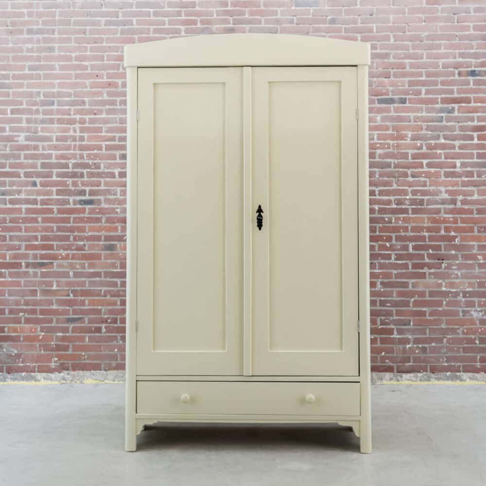 Deze brocante linnenkast hebben we opgespeurd in Hongarije en opgeknapt waar nodig. Ze heeft ze oa nieuwe planken en een bijzondere kleur crème gekregen.