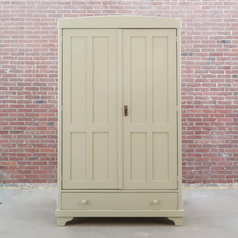 Deze brocante zachte gele linnenkast hebben we opgespeurd in Hongarije en opgeknapt waar nodig. Ze heeft ze oa nieuwe planken en een bijzondere kleur crème gekregen.