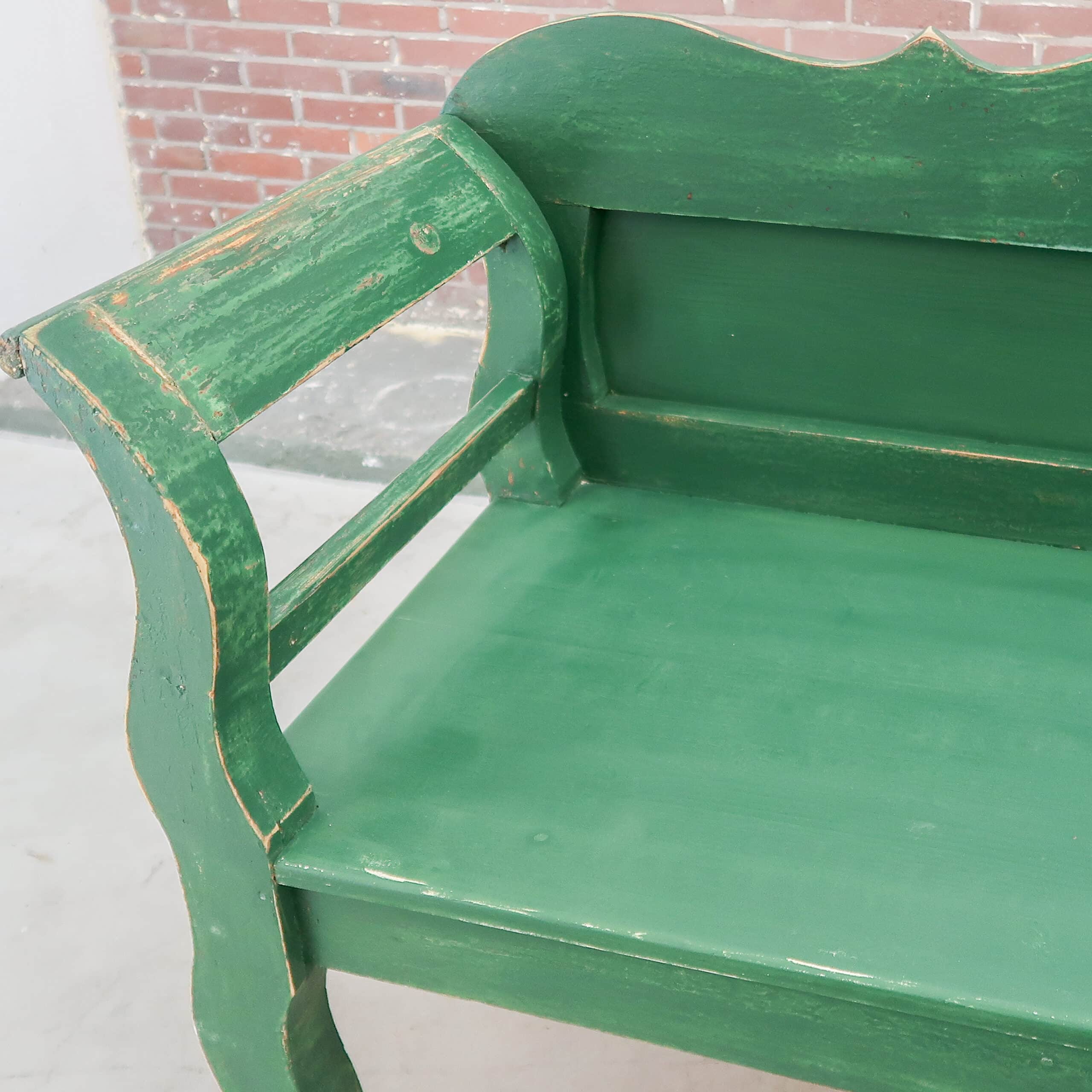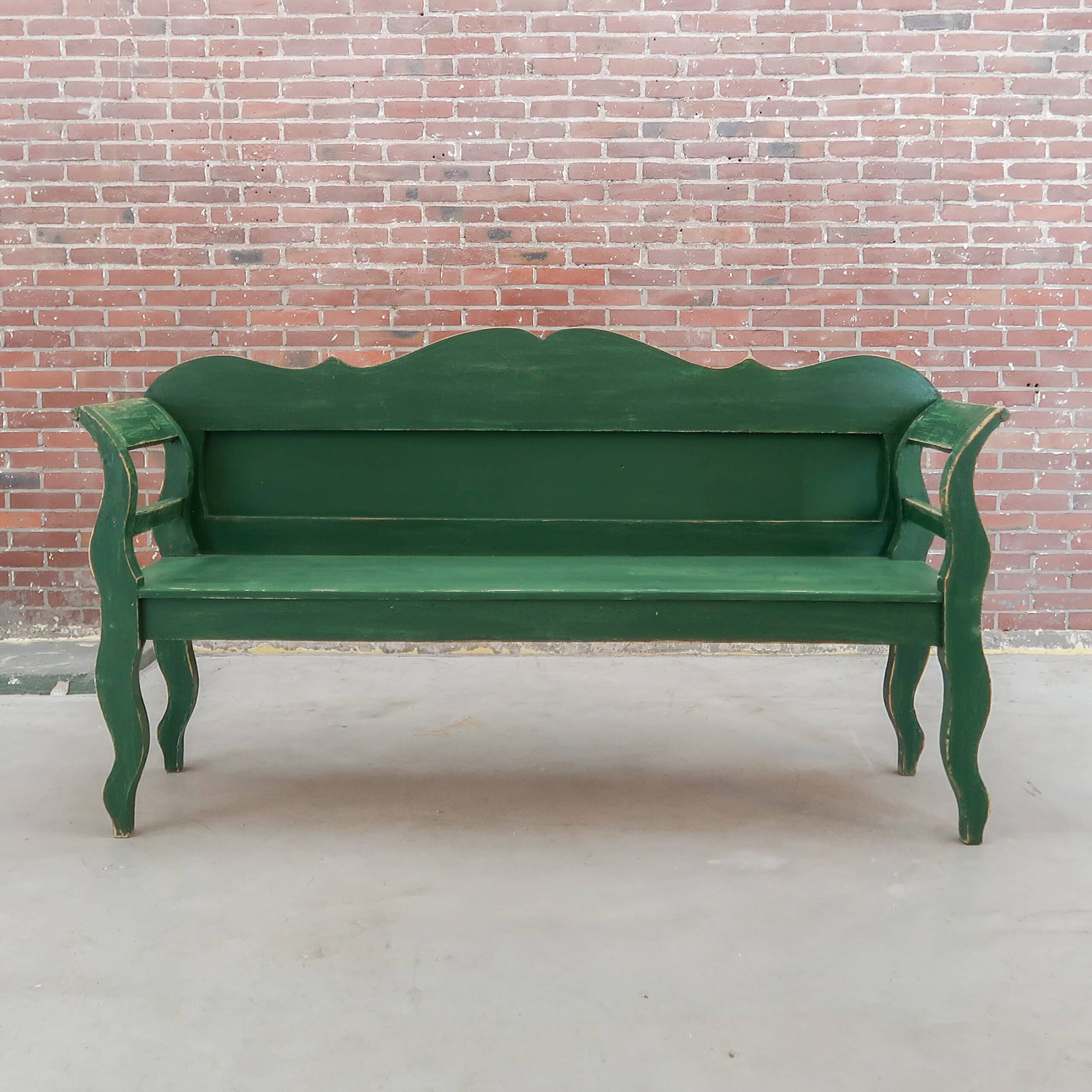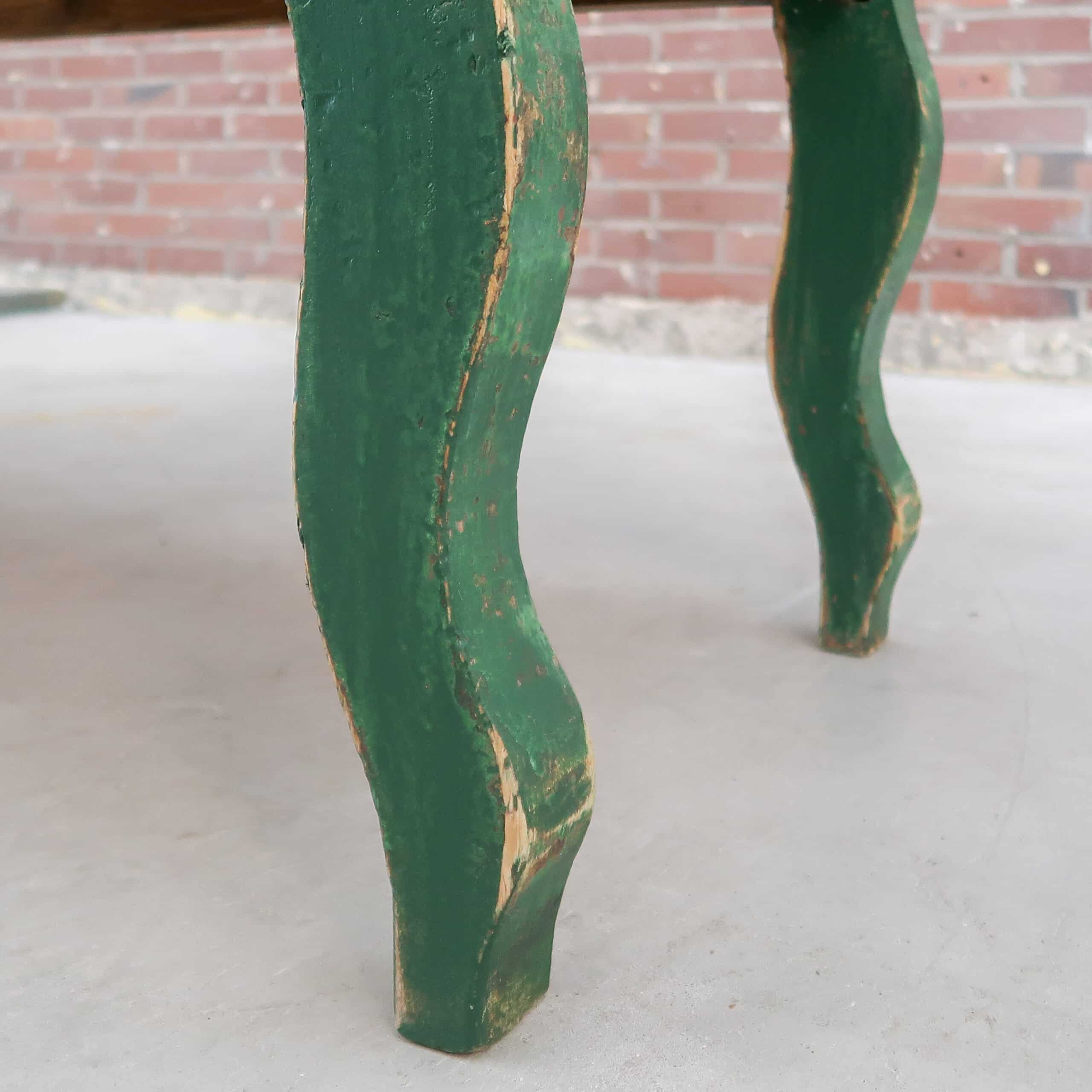 Deze brocante bank hebben we opgespeurd in Hongarije. Een sfeervolle bank die ook nog een heerlijk zit. De bank heeft een prachtige groene kleur.