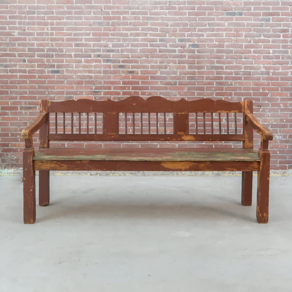 Deze brocante houten bank hebben we opgespeurd in Hongarije. Een heel sfeervol bankje geheel in originele staat, wat ook nog eens heerlijk zit.