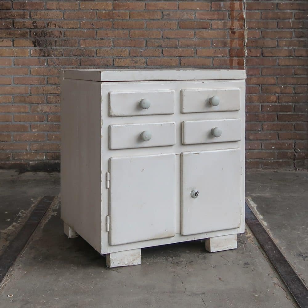 Leuke brocante houten wastafeltje uit Hongarije, nog geheel in originele staat! Bijvoorbeeld leuk voor onder een overkapping, in de buitenkeuken of tuinkas. De bovenste twee lades zijn alleen decoratief.