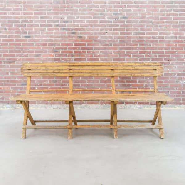 Deze tuinbank heeft een ijzeren frame. Het frame heeft een verweerde bruin rode roest kleur. Hij komt uit Hongarije. De rugleuning en zitting bestaat uit houten planken. Het hout is niet geschilderd en soms verweerd. Een leuke tuinbank voor het lekkere weer.