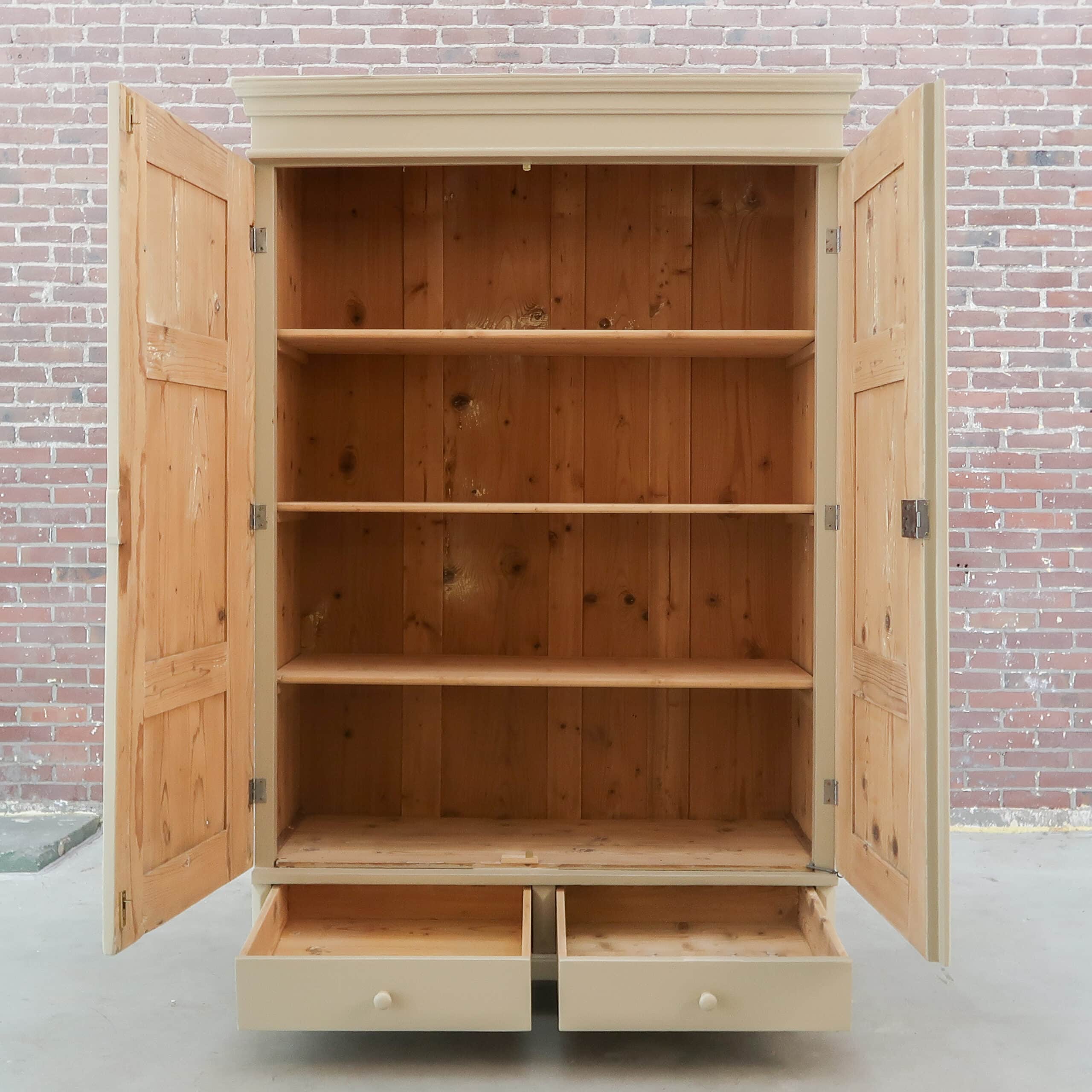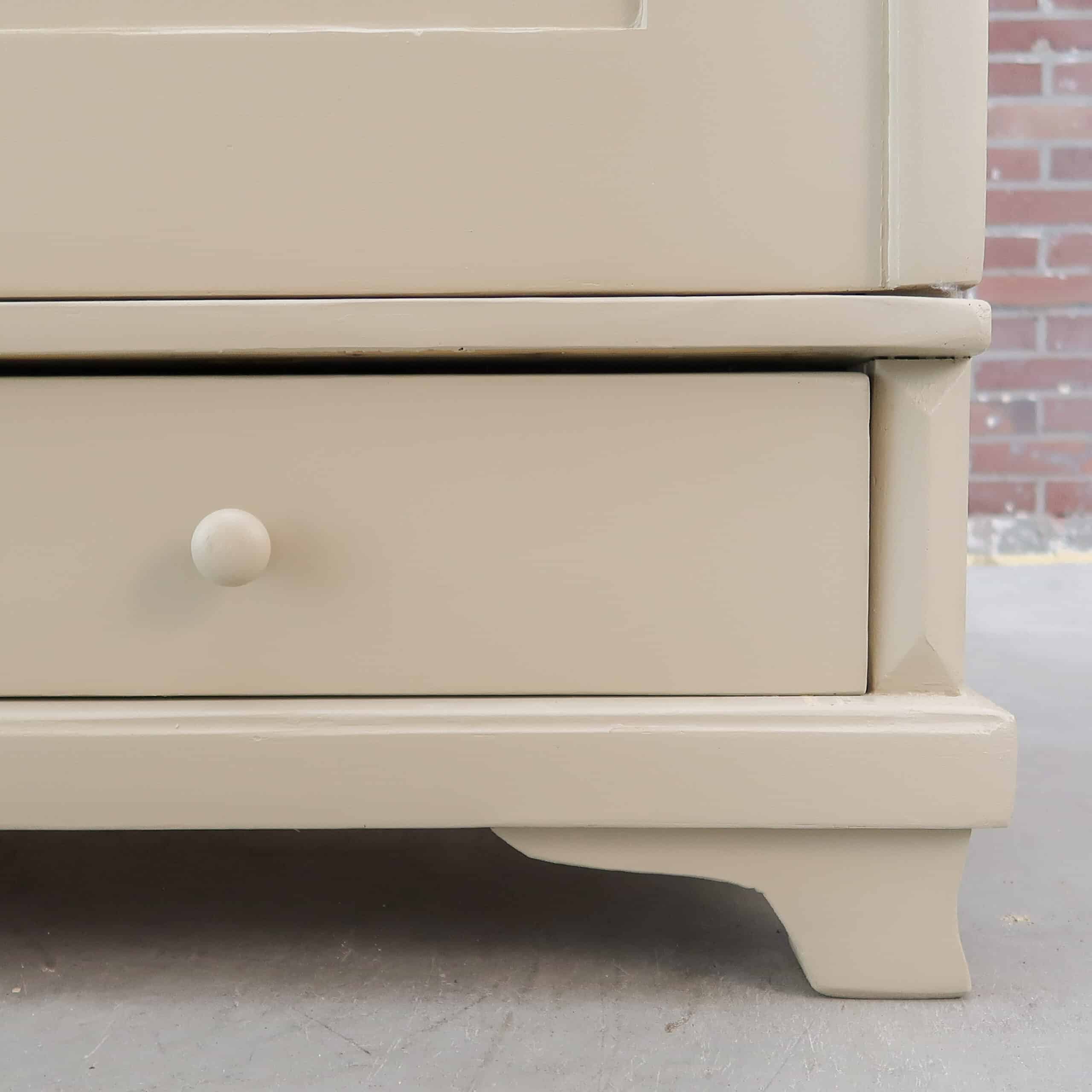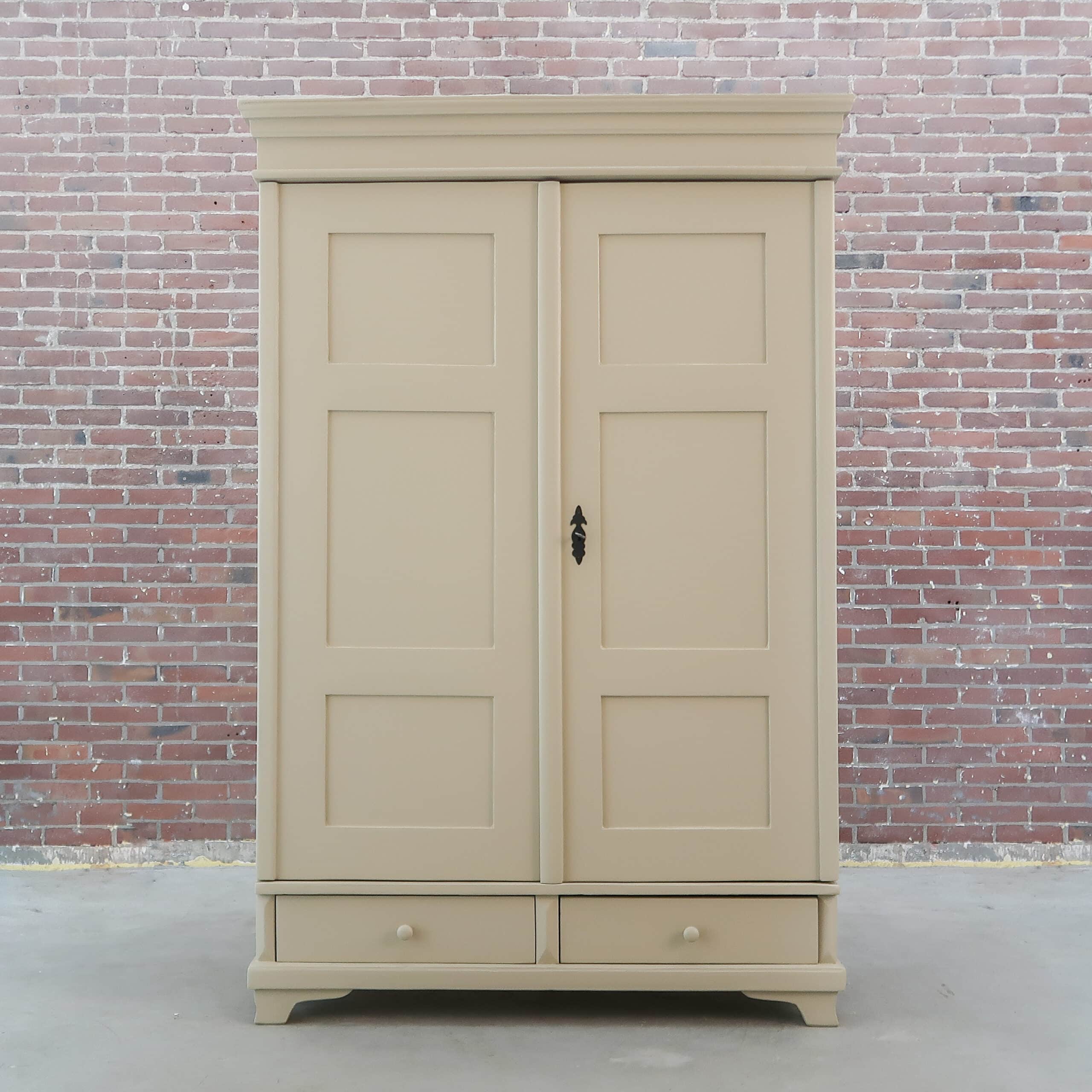 Deze brocante kledingkast hebben we opgespeurd en opgeknapt in Hongarije, zo heeft hij oa nieuwe planken en een subtiele beige kleur gekregen.