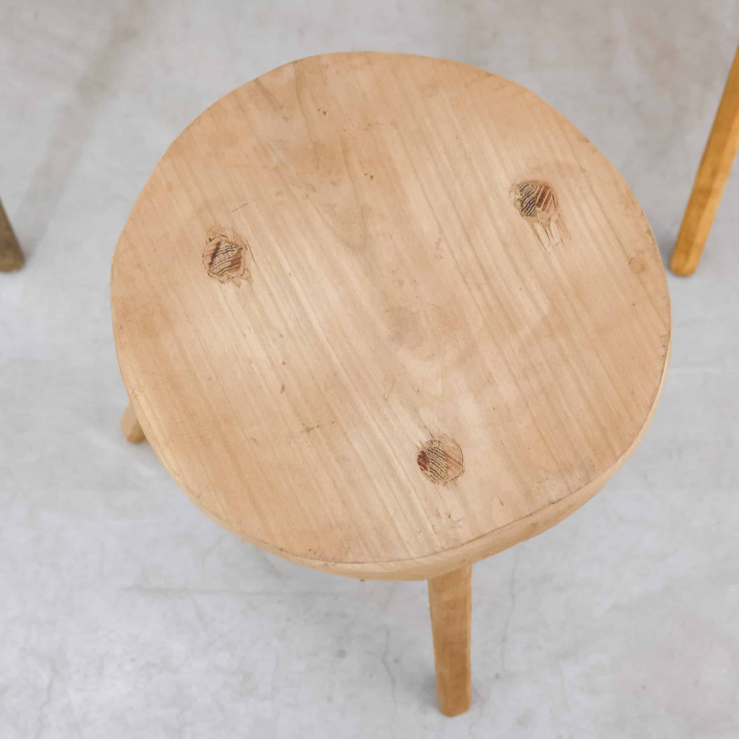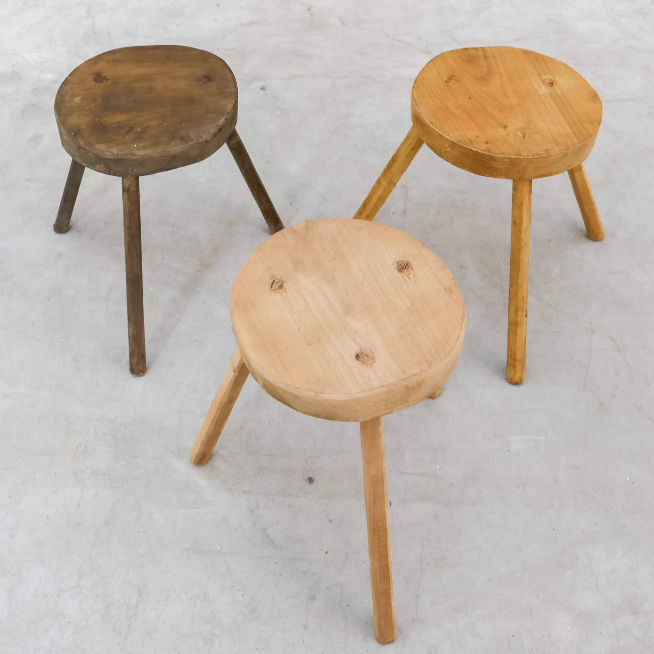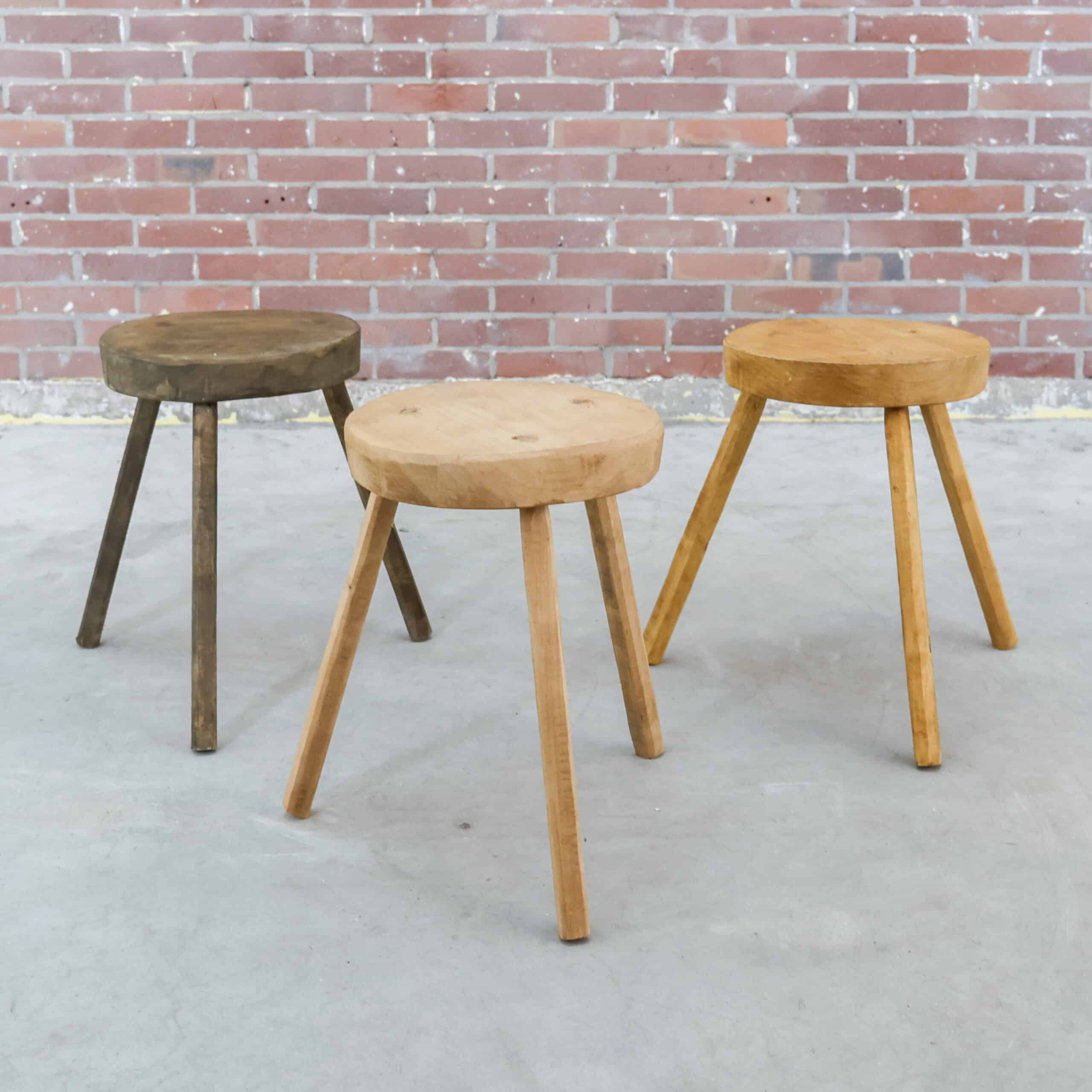 Leuke set brocante houten krukjes met een eenvoudige en karaktervolle wabi sabi uitstraling. De massieve zittingen en schuine poten geven ze een stoer en tijdloos ontwerp. Mooi als bijzetkrukjes, plantentafeltjes of speels te combineren in een interieur. Geen enkele kruk identiek, wat ze extra charmant maakt.
