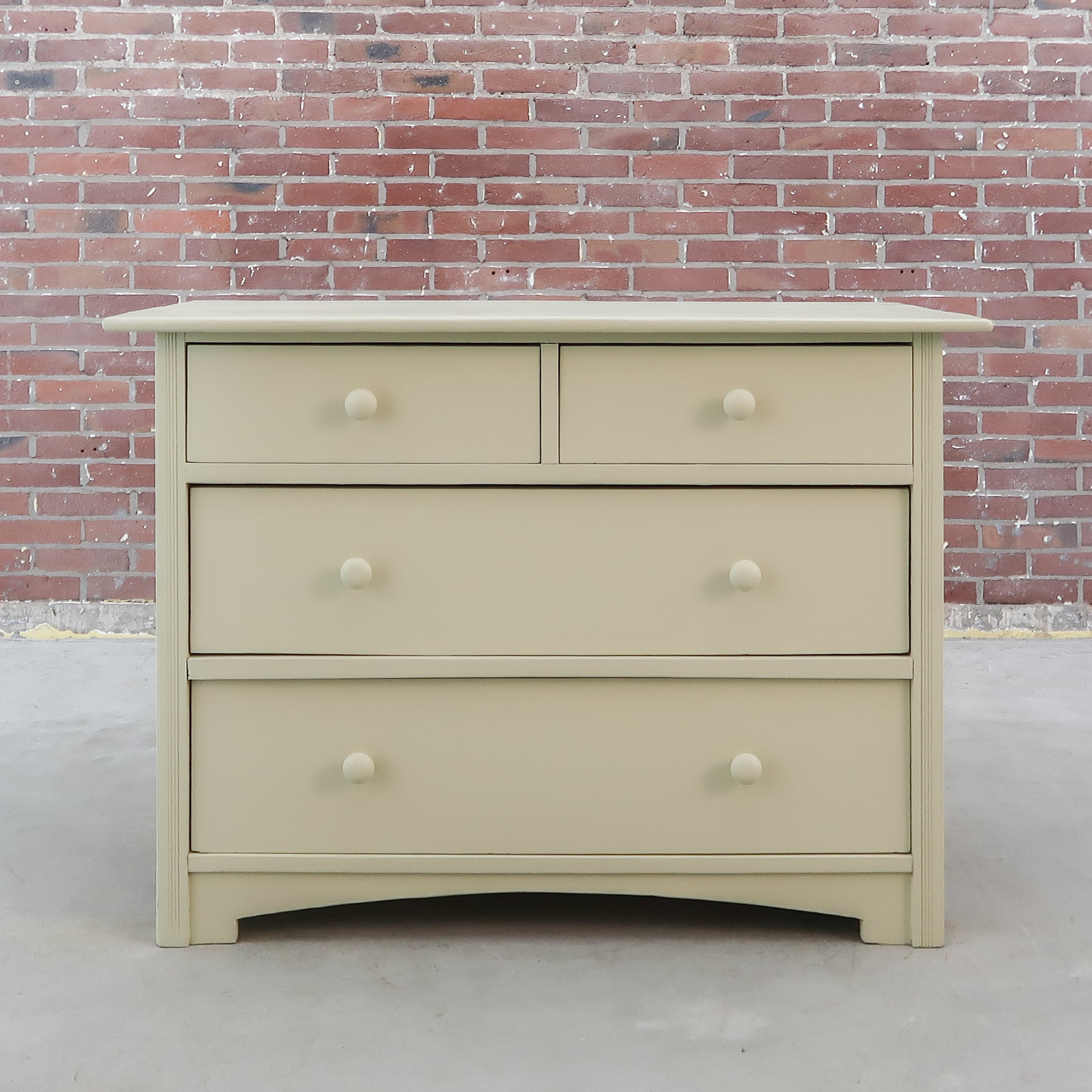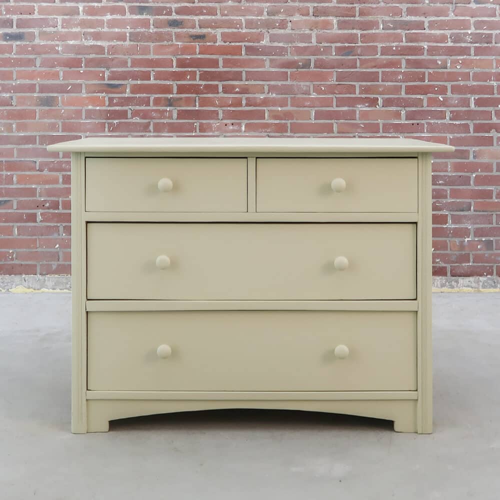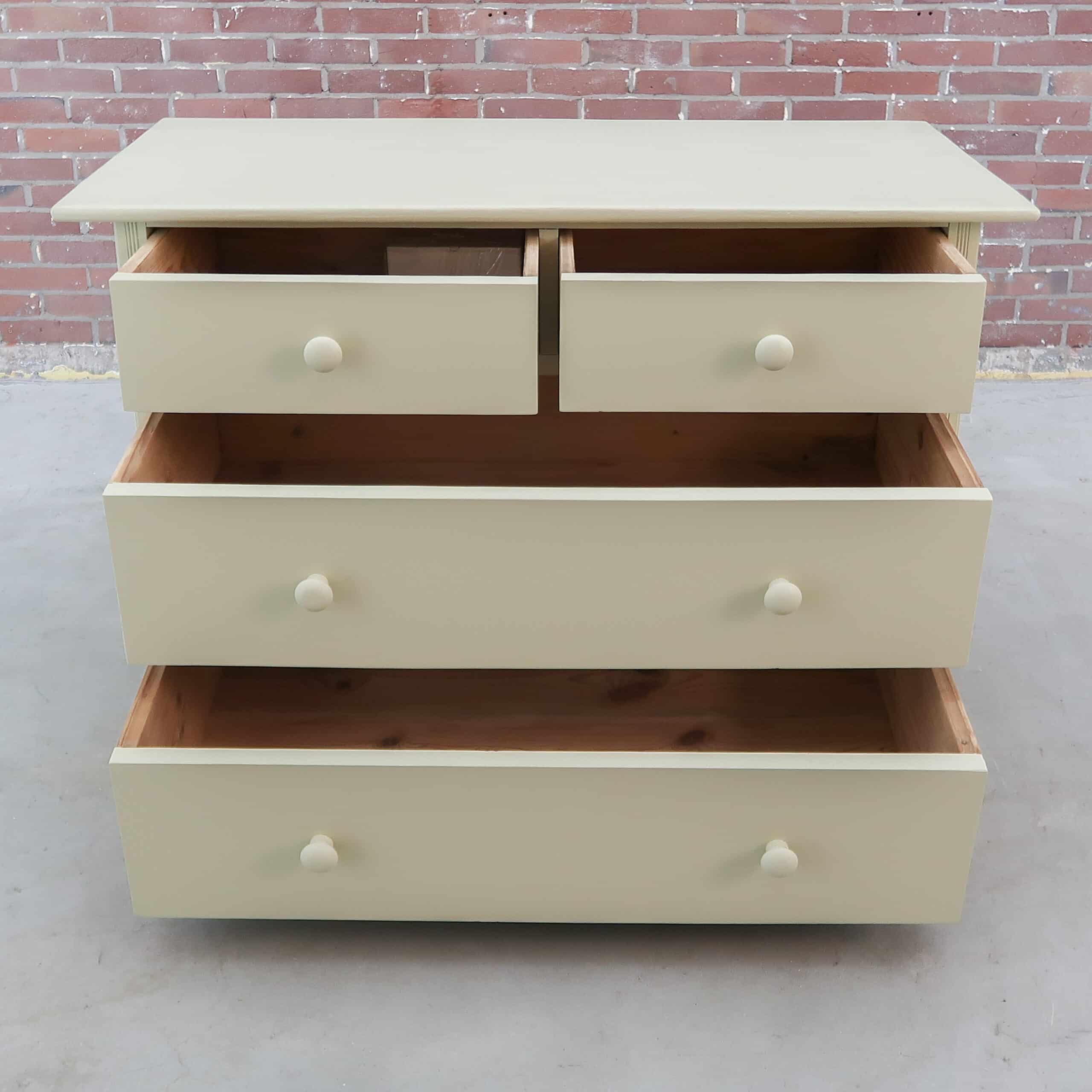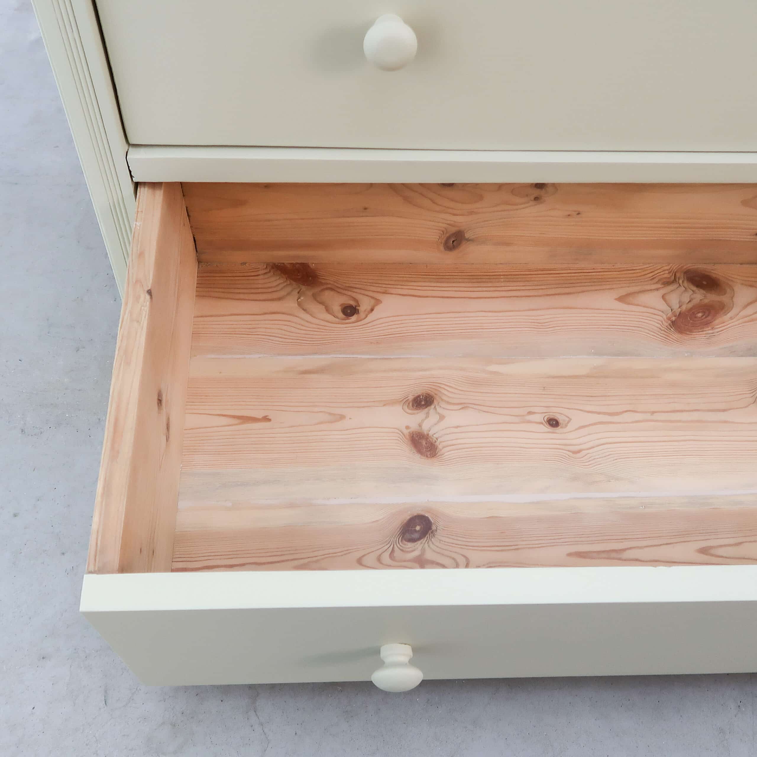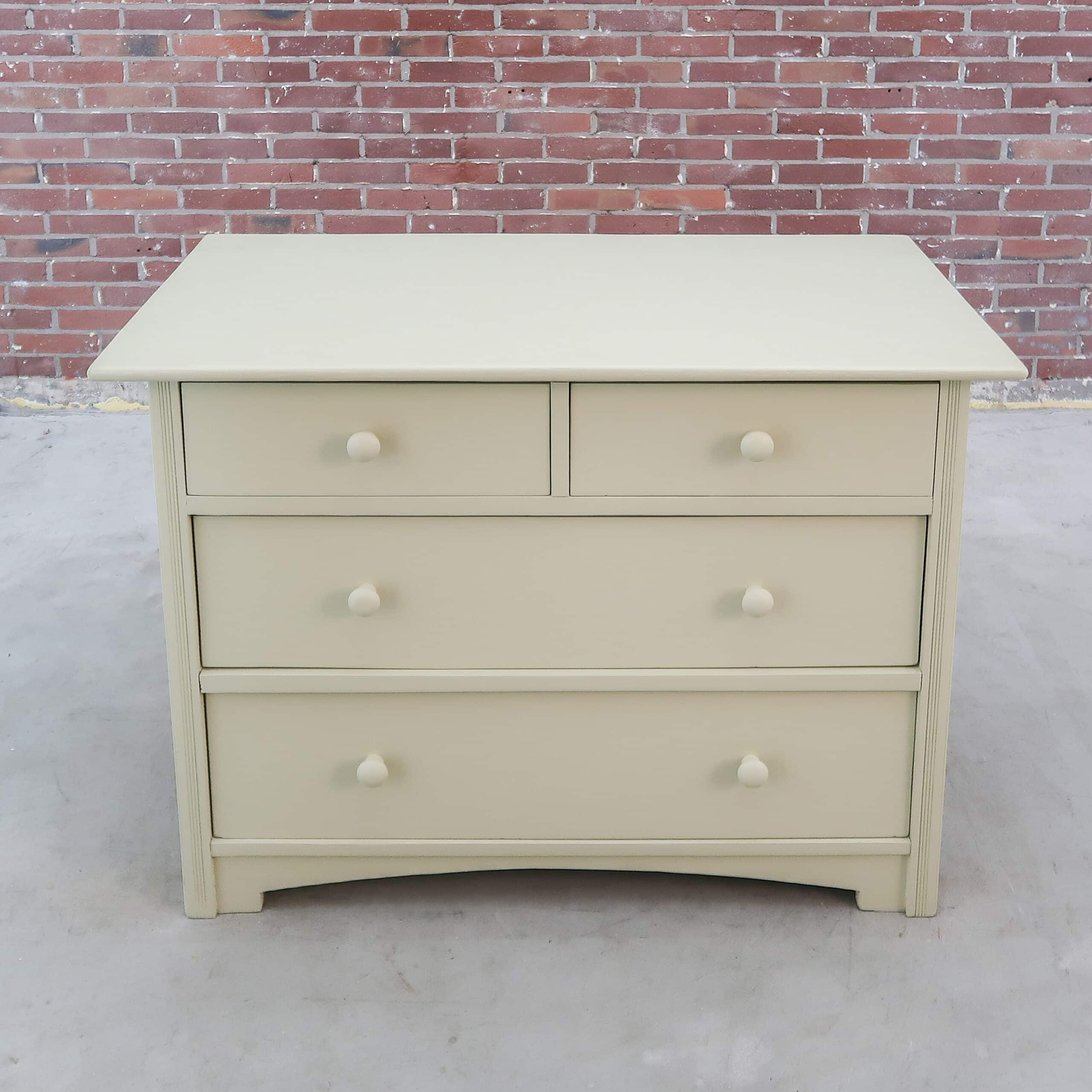 Deze brocante ladekast is volledig opgeknapt en afgewerkt in een frisse beige kleur. Met zijn stevige lades en uitstraling is het een praktisch én sfeervol meubel. Perfect als opberger in de hal, slaapkamer of woonkamer. Een karaktervol stuk dat direct opvalt in elk interieur.