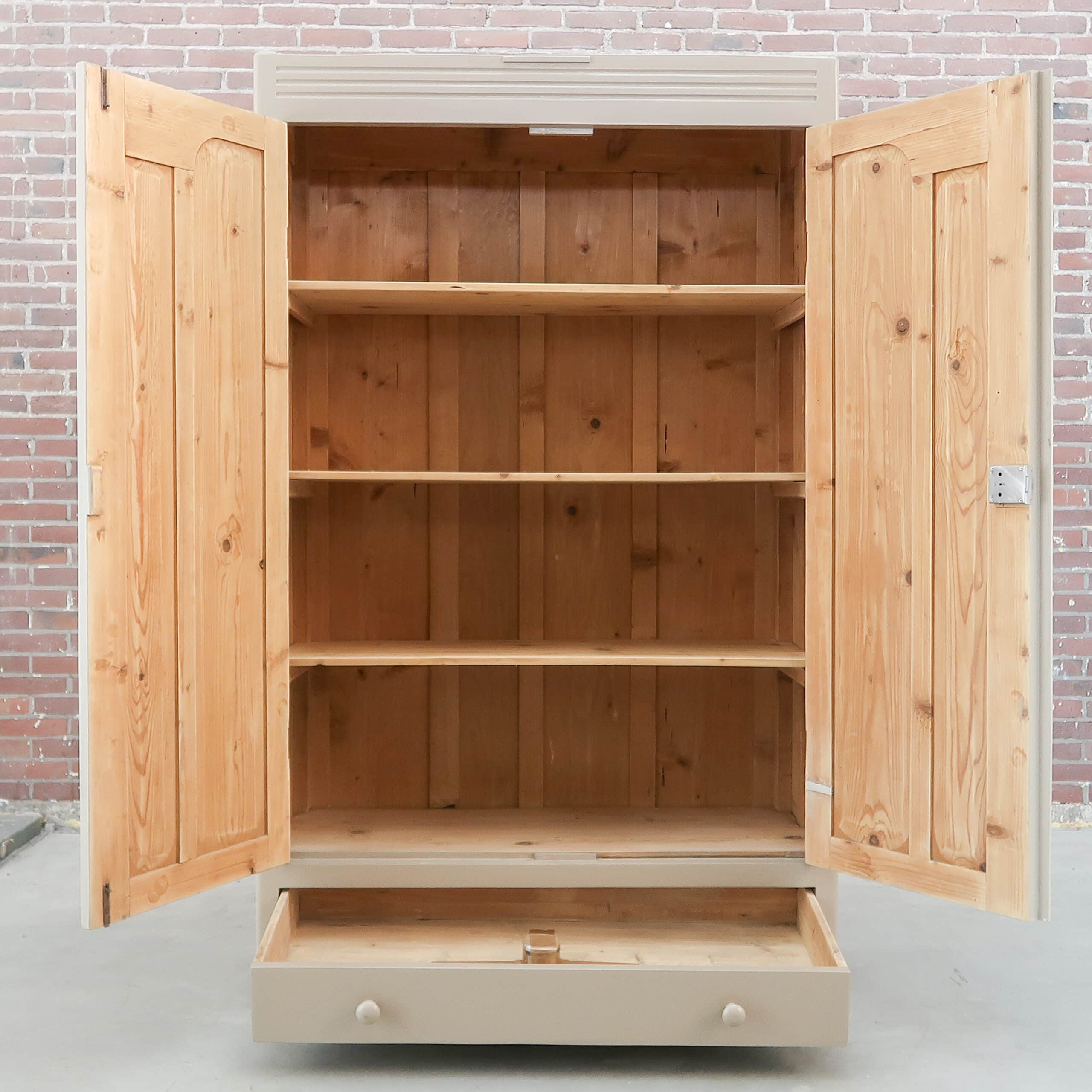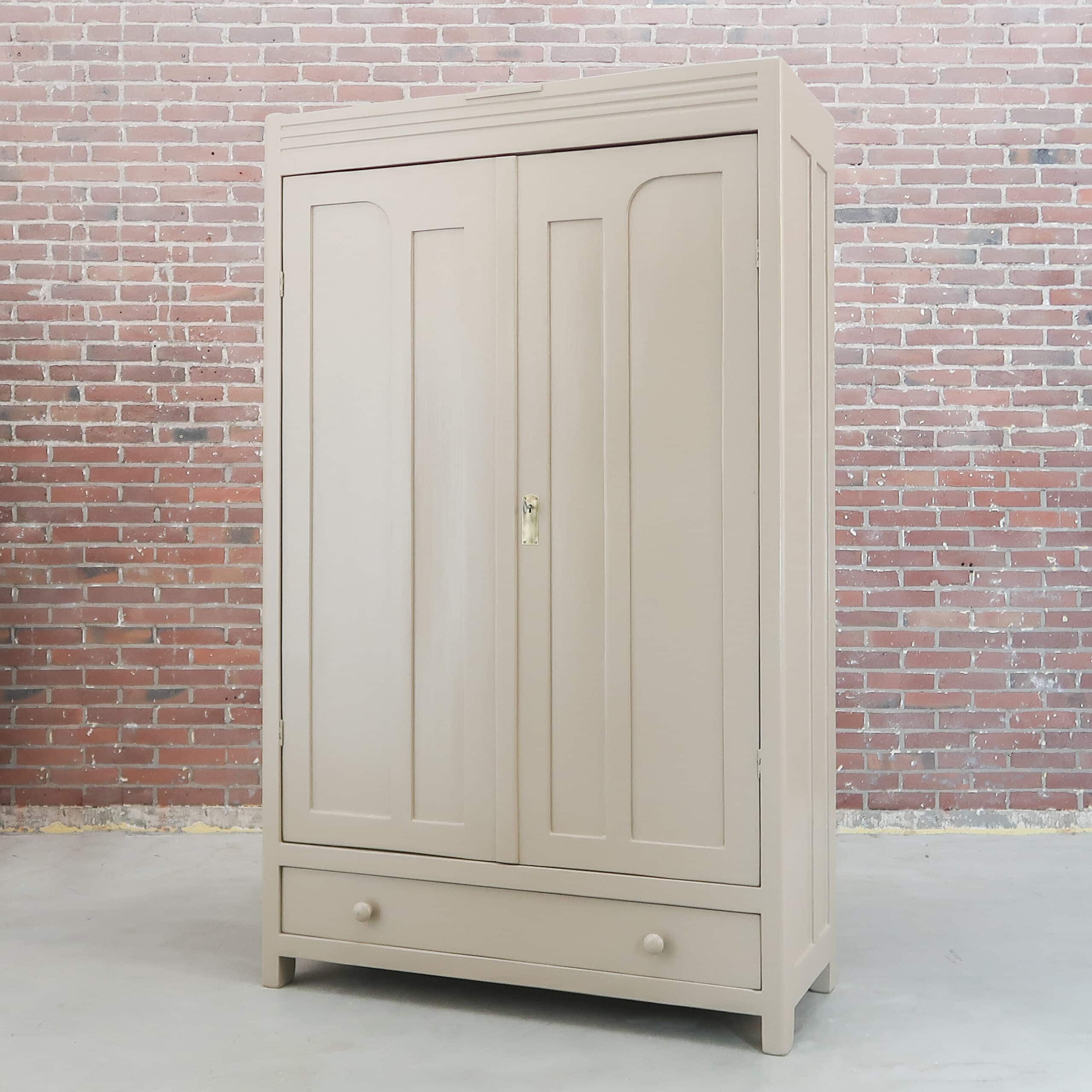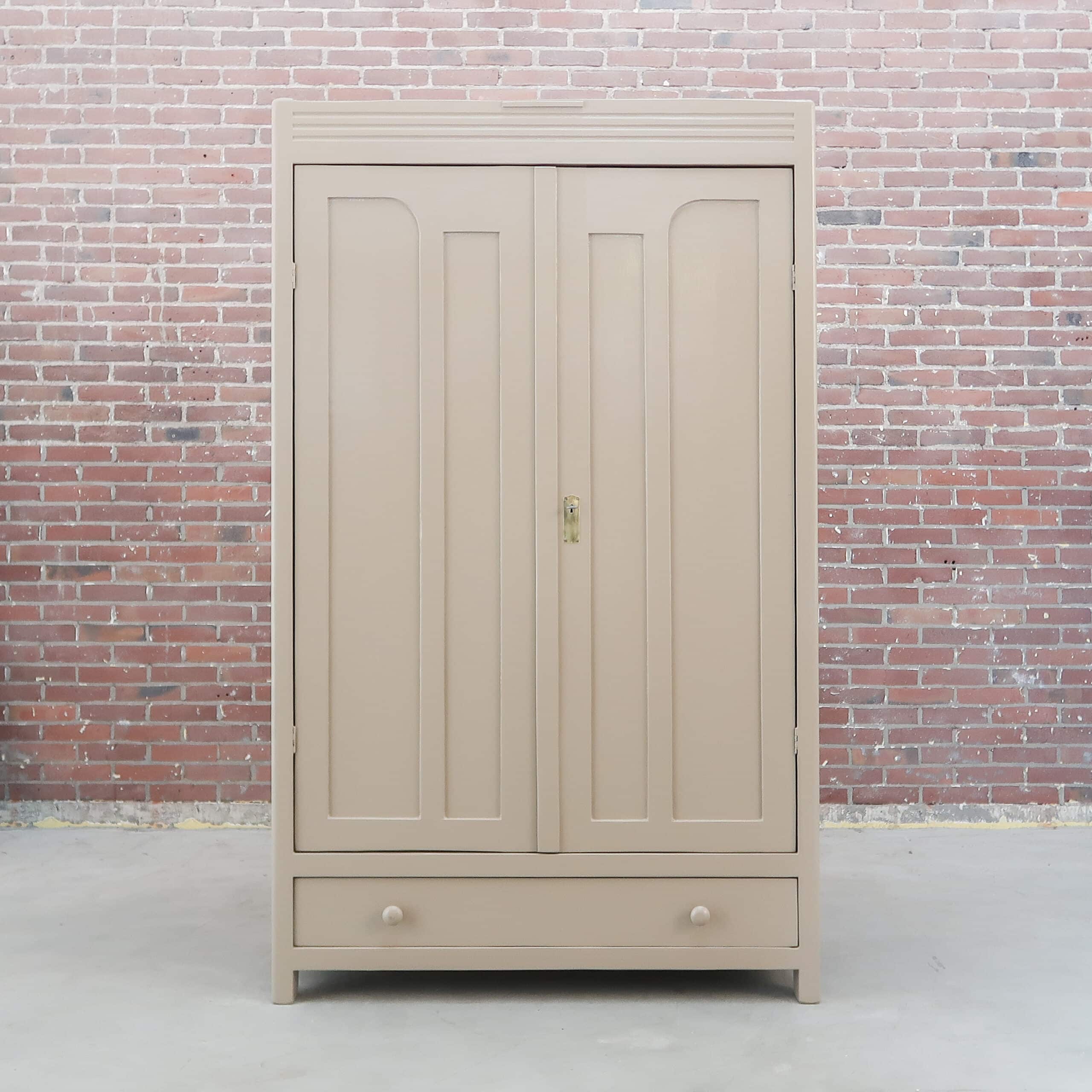 Deze brocante linnenkast hebben we opgespeurd en opgeknapt in Hongarije, zo heeft hij oa nieuwe planken en een subtiele taupe kleur gekregen.