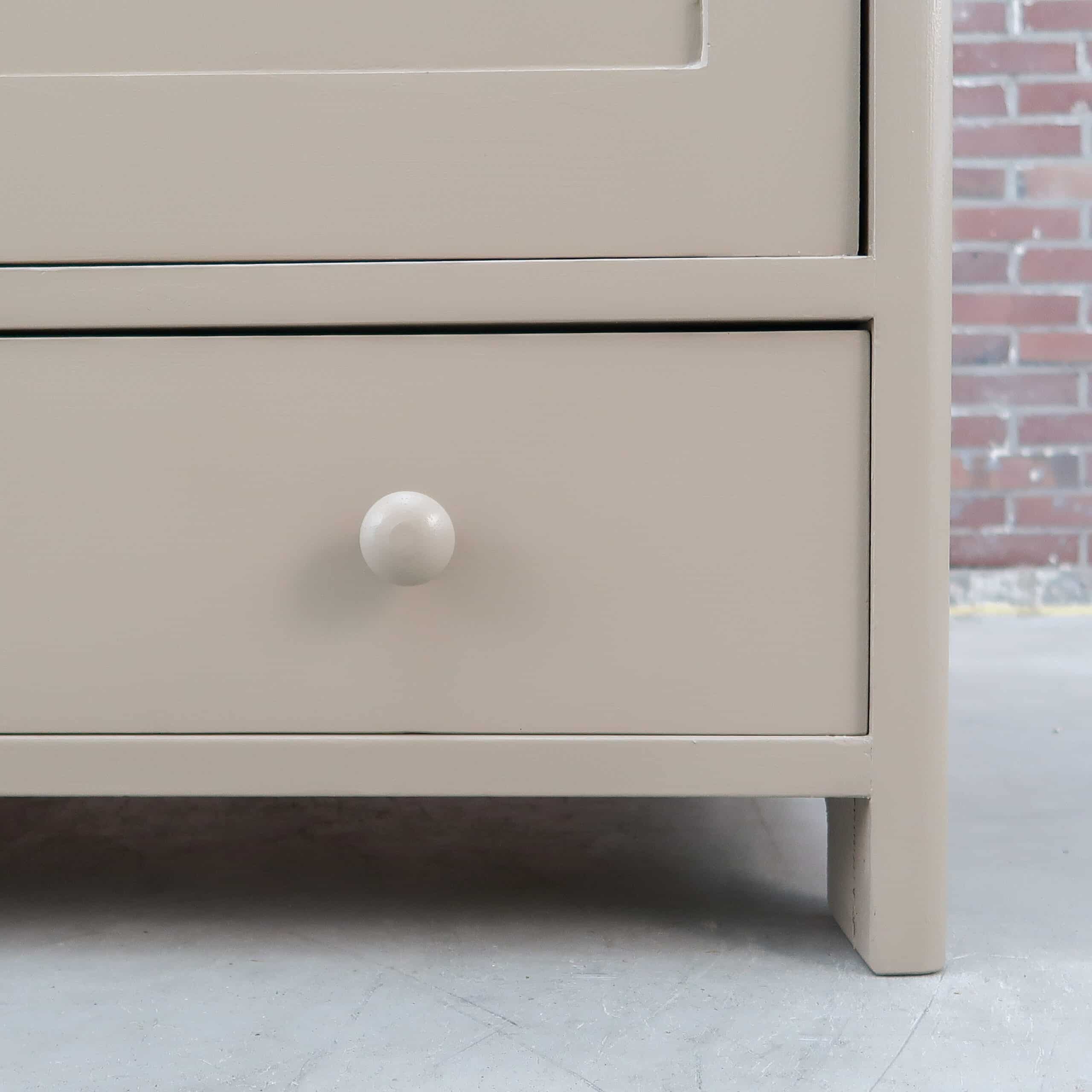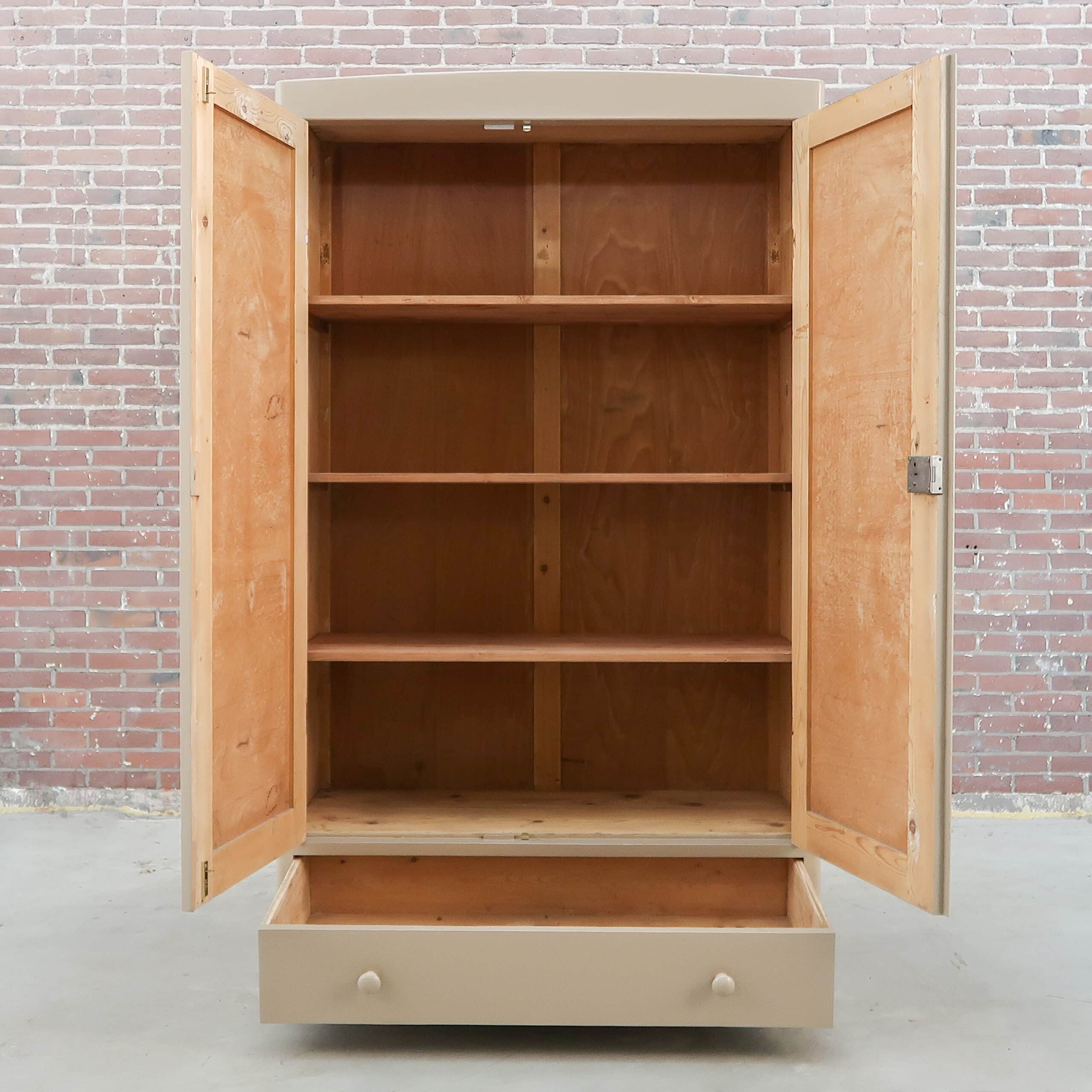 Deze brocante linnenkast hebben we opgespeurd en opgeknapt in Hongarije, zo heeft hij oa nieuwe planken en een subtiele taupe kleur gekregen.