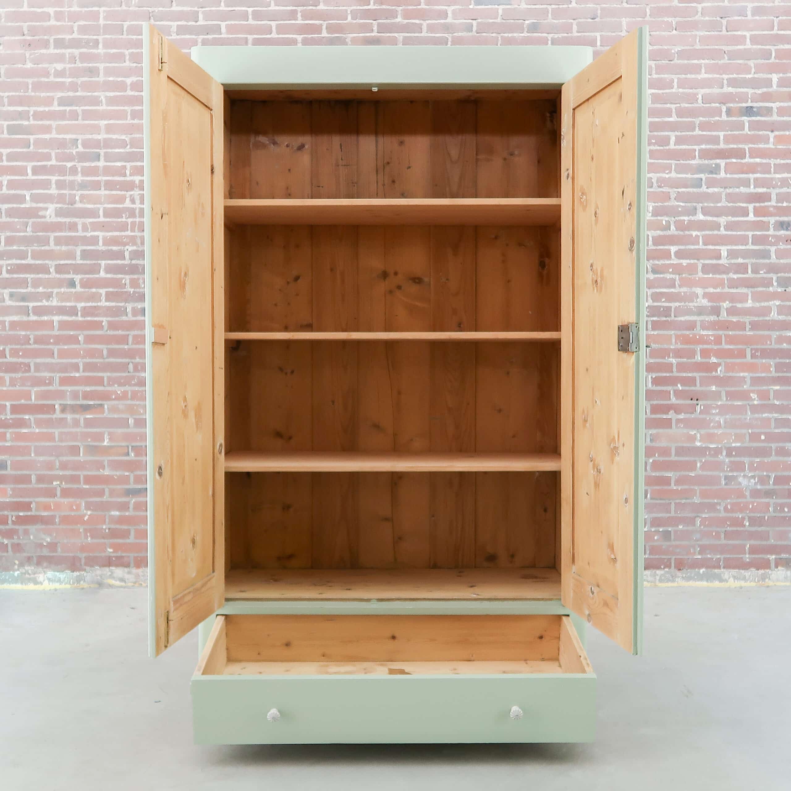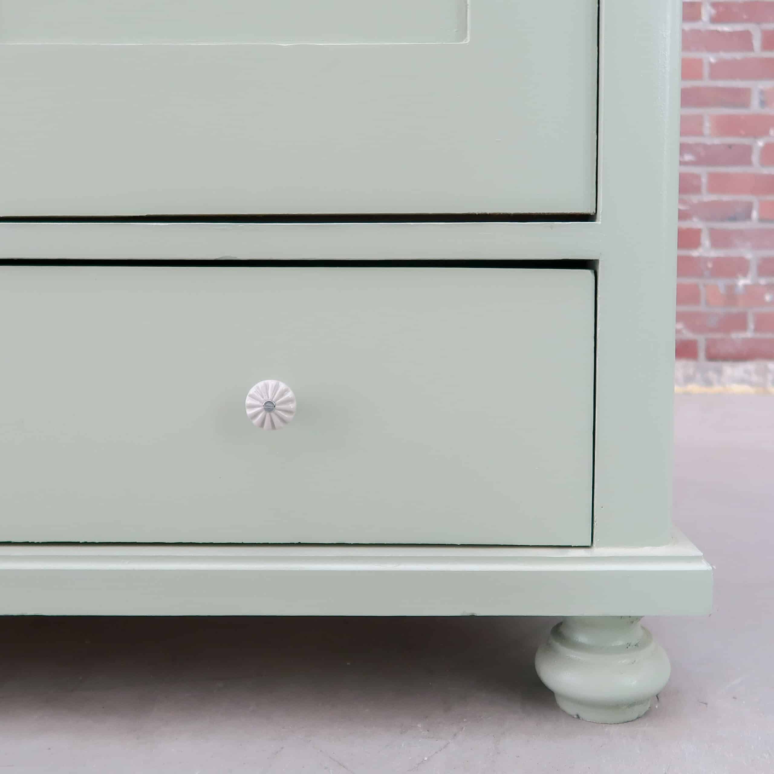 Deze brocante linnenkast hebben we opgespeurd en opgeknapt in Hongarije met oa een subtiele groene crème kleur! Een fijne kast voor de slaapkamer.