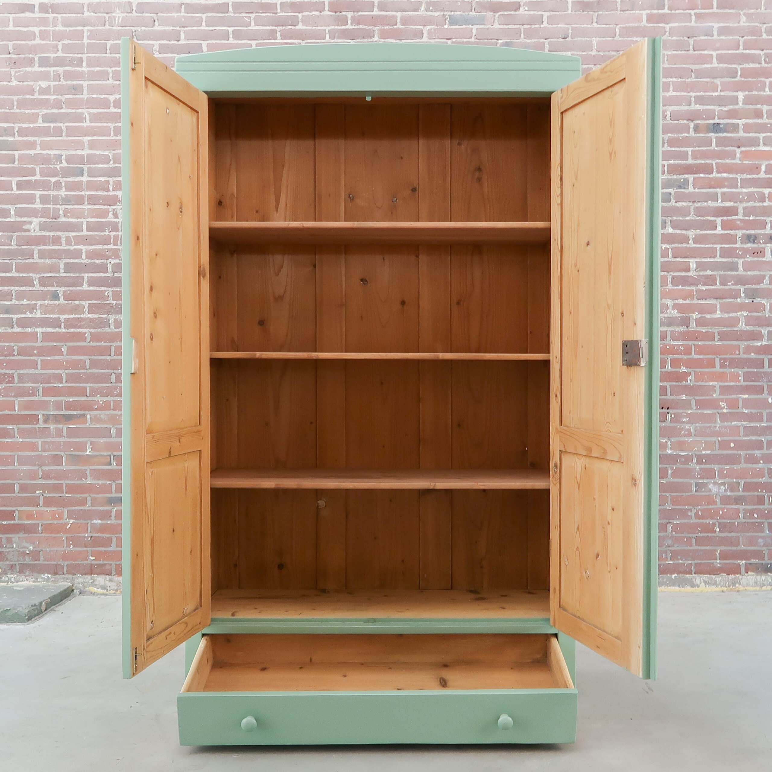 Ook deze prachtige brocante linnenkast hebben we opgespeurd én opgeknapt in Hongarije. Ze is voorzien van mooie sierlijsten en heeft een zachte turquoise kleur gekregen. De perfecte kast voor in een slaapkamer of woonkamer die wel wat extra kleur kan gebruiken!