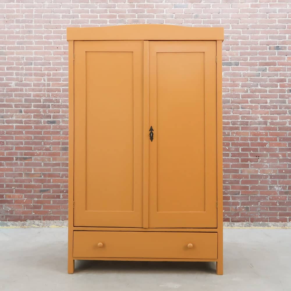 Deze brocante linnenkast hebben we opgespeurd in Hongarije en opgeknapt waar nodig. Ze heeft ze oa nieuwe planken en een bijzondere kleur oranje gekregen.