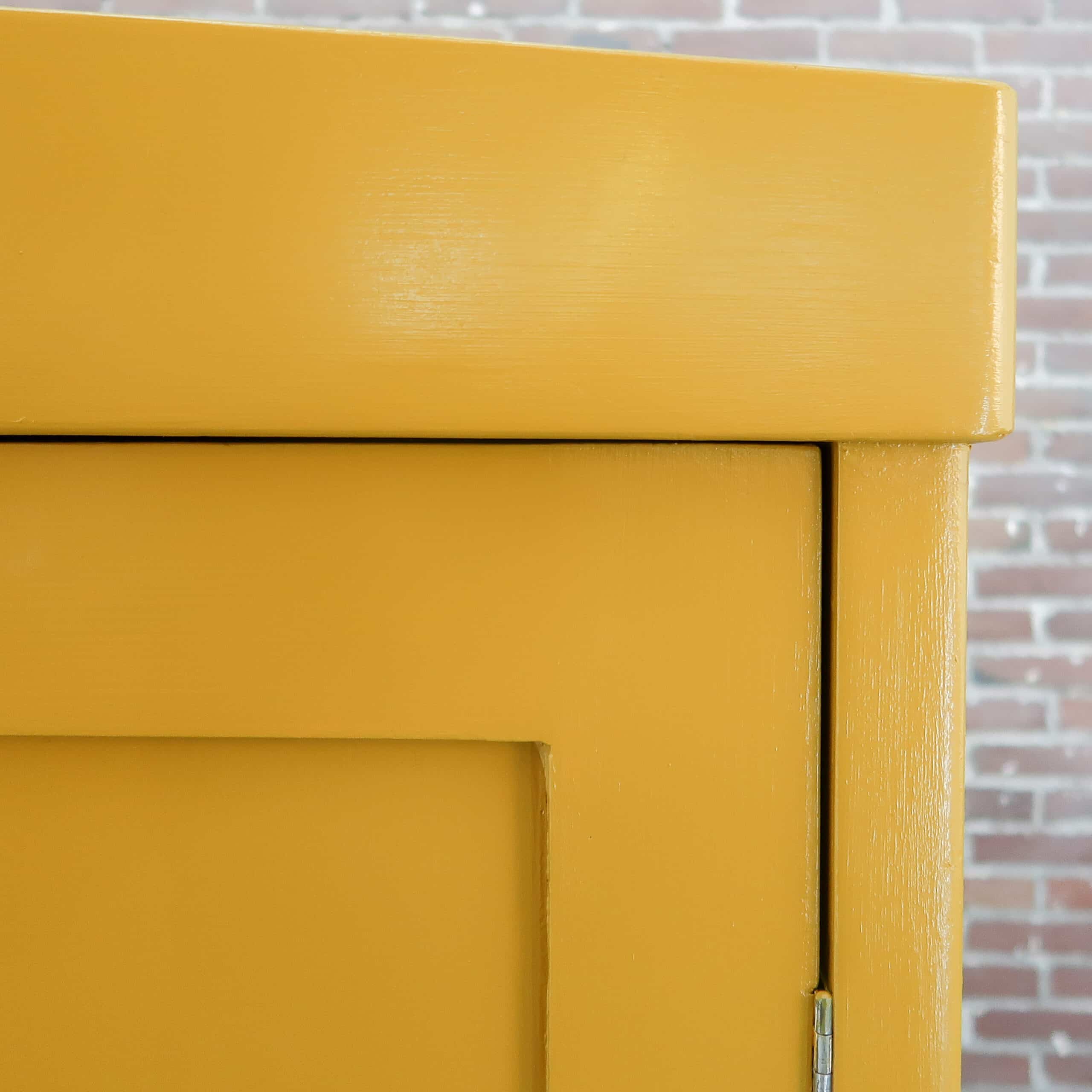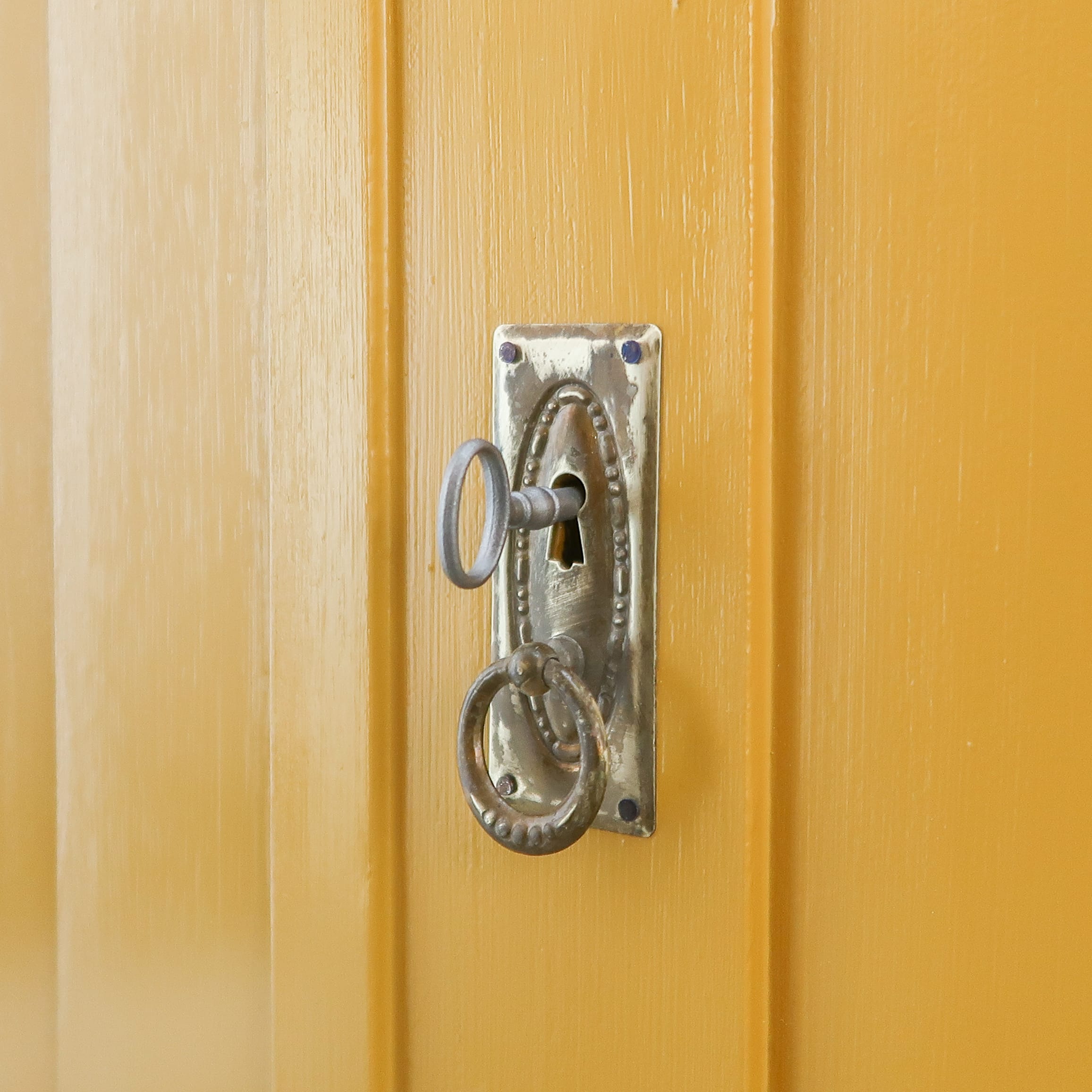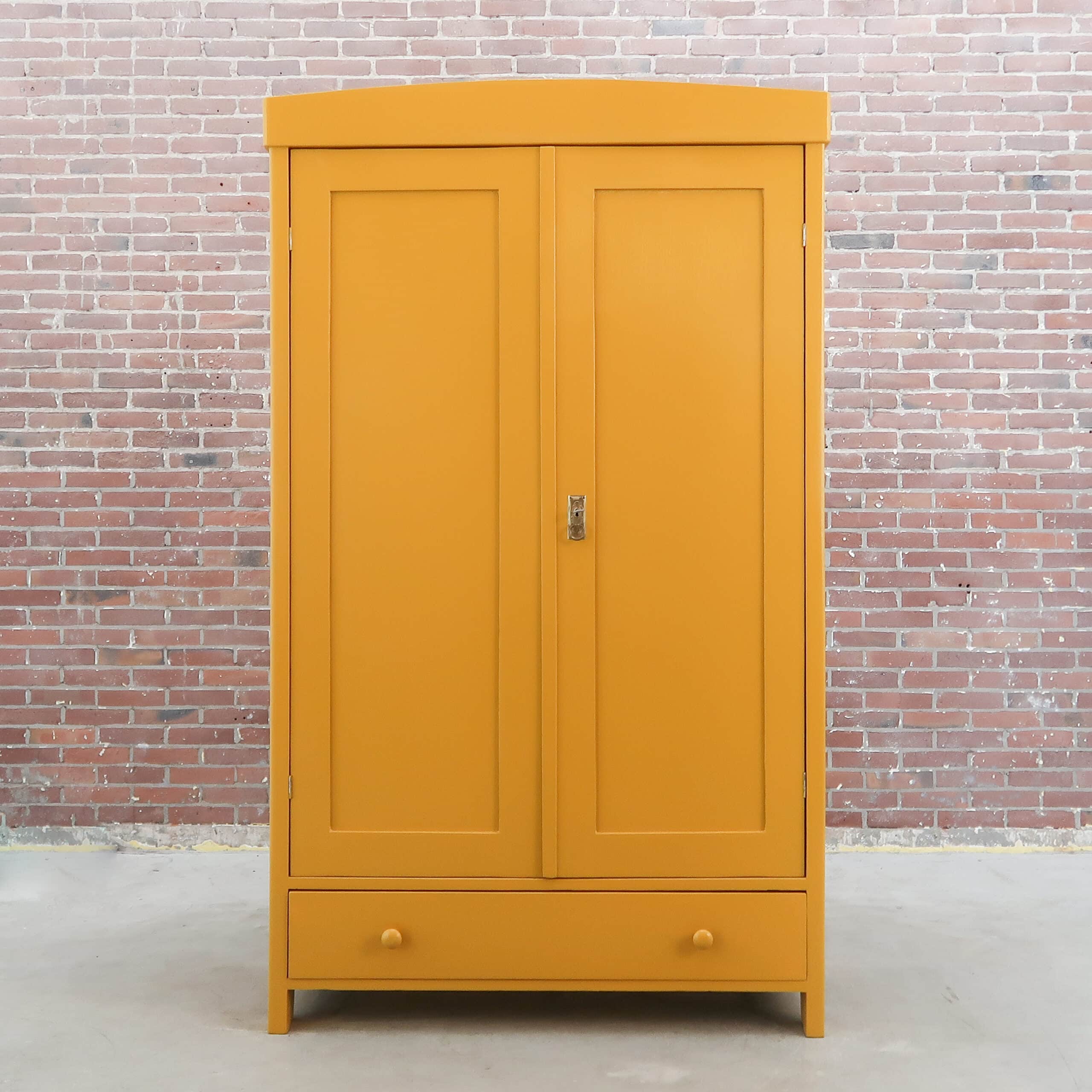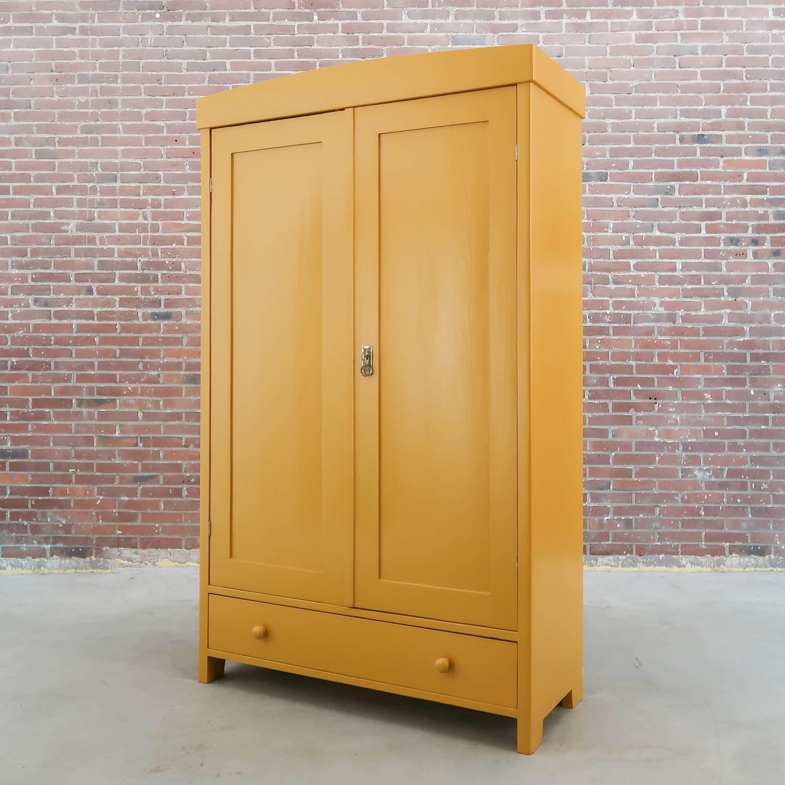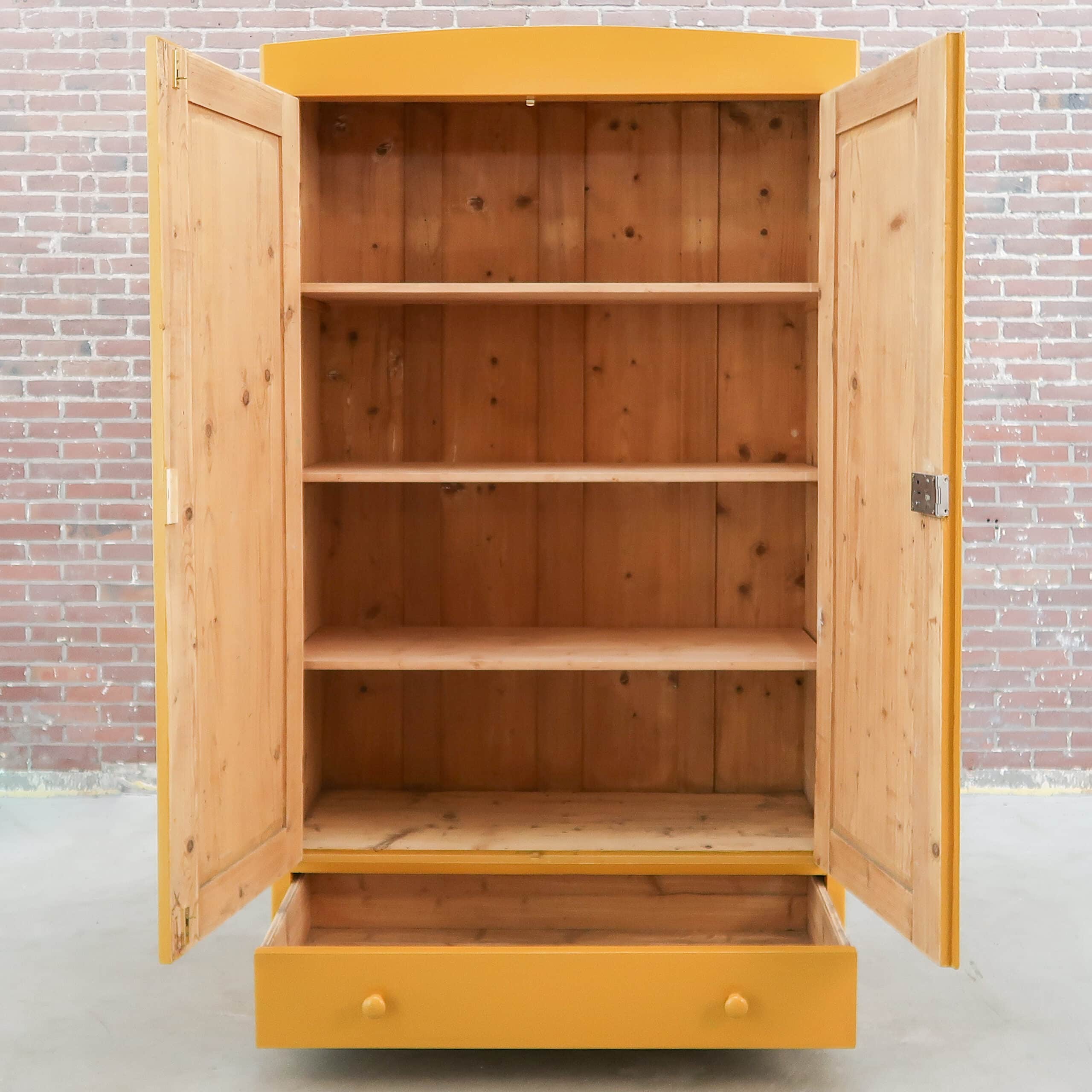 Deze brocante linnenkast hebben we opgespeurd in Hongarije en opgeknapt waar nodig. Ze heeft ze oa nieuwe planken en een bijzondere kleur geel gekregen.