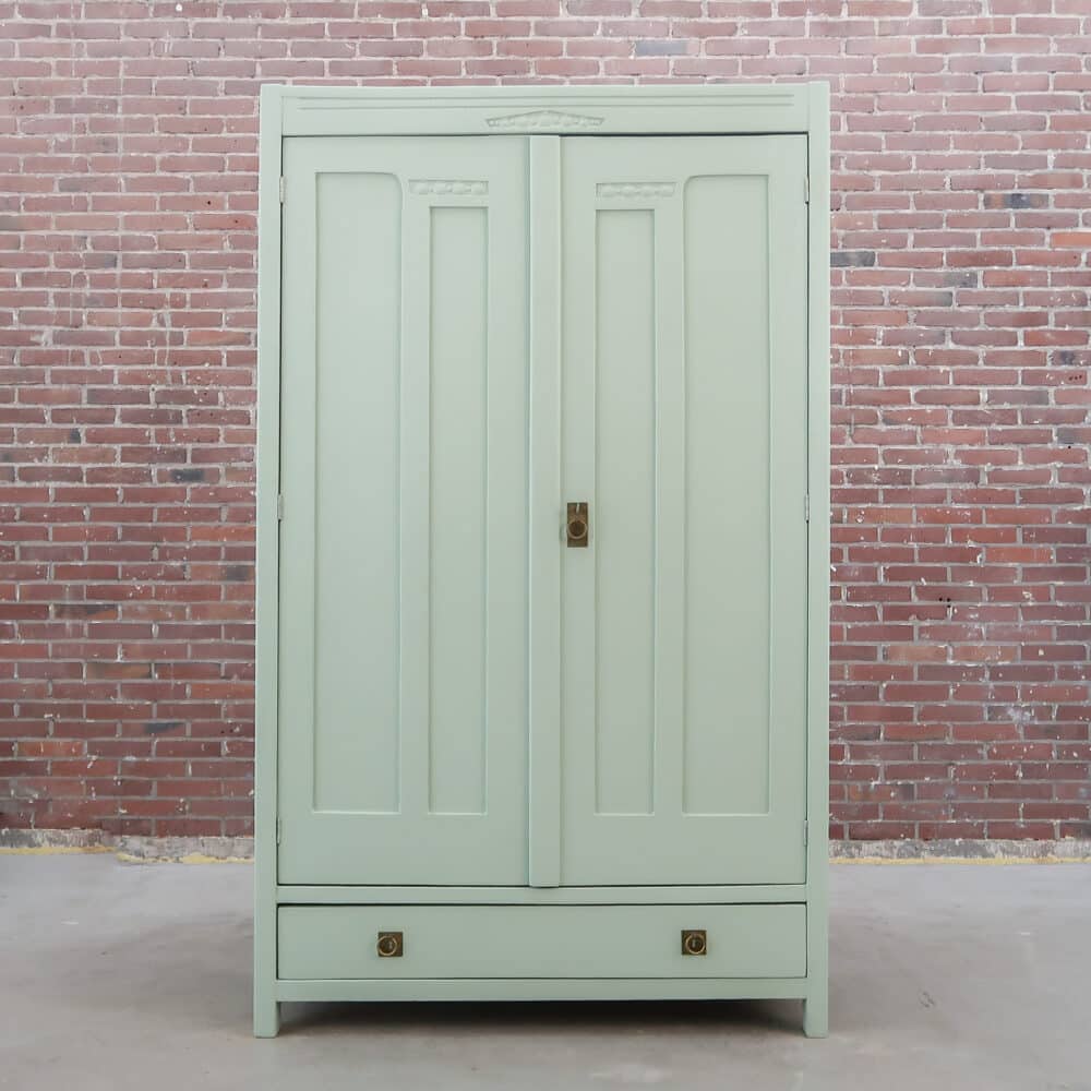 Deze brocante linnenkast uit Hongarije hebben we een fris mint kleurtje gegeven! Verder hebben wij haar opgeknapt met oa nieuwe planken en poten, ze kan ze er weer járen tegenaan.