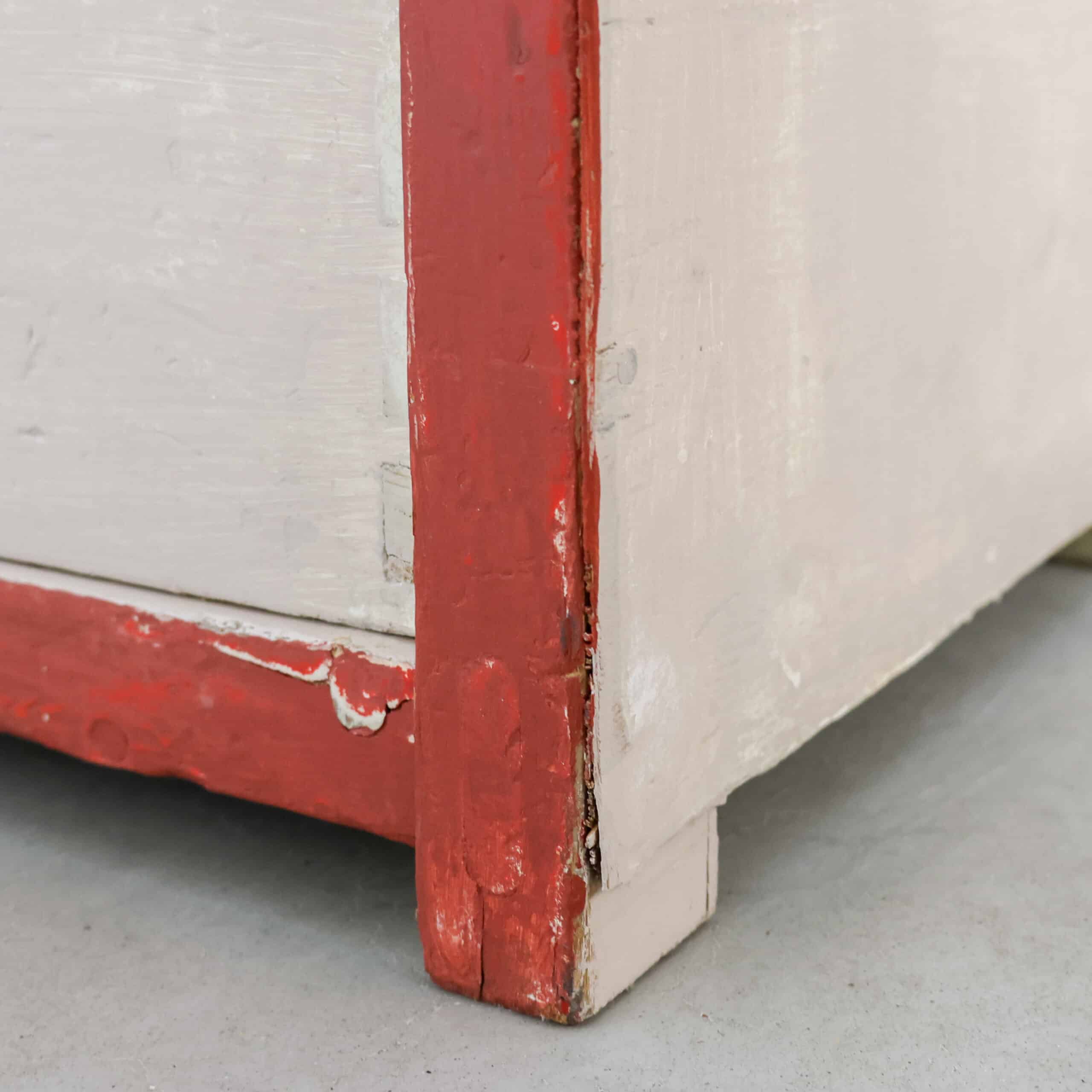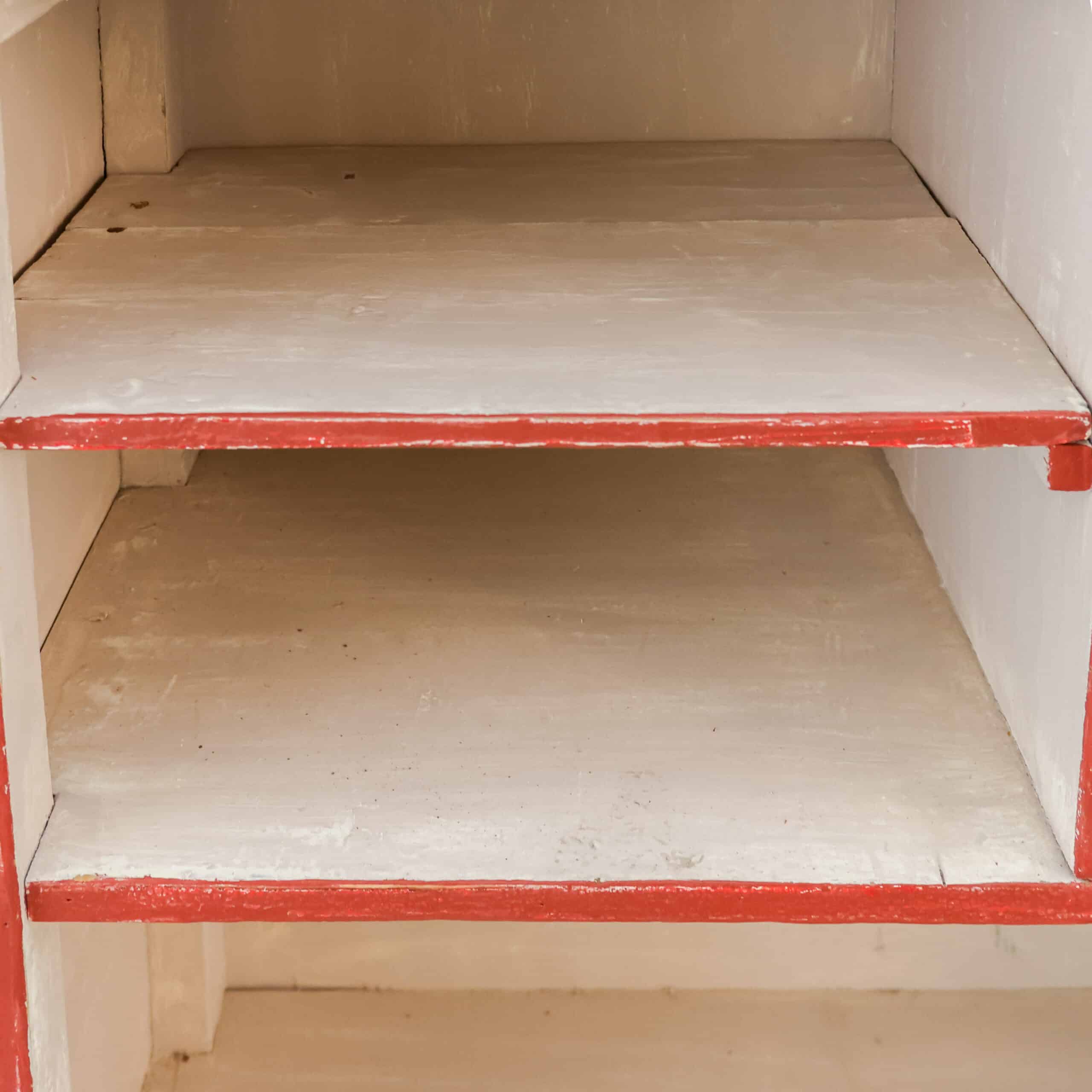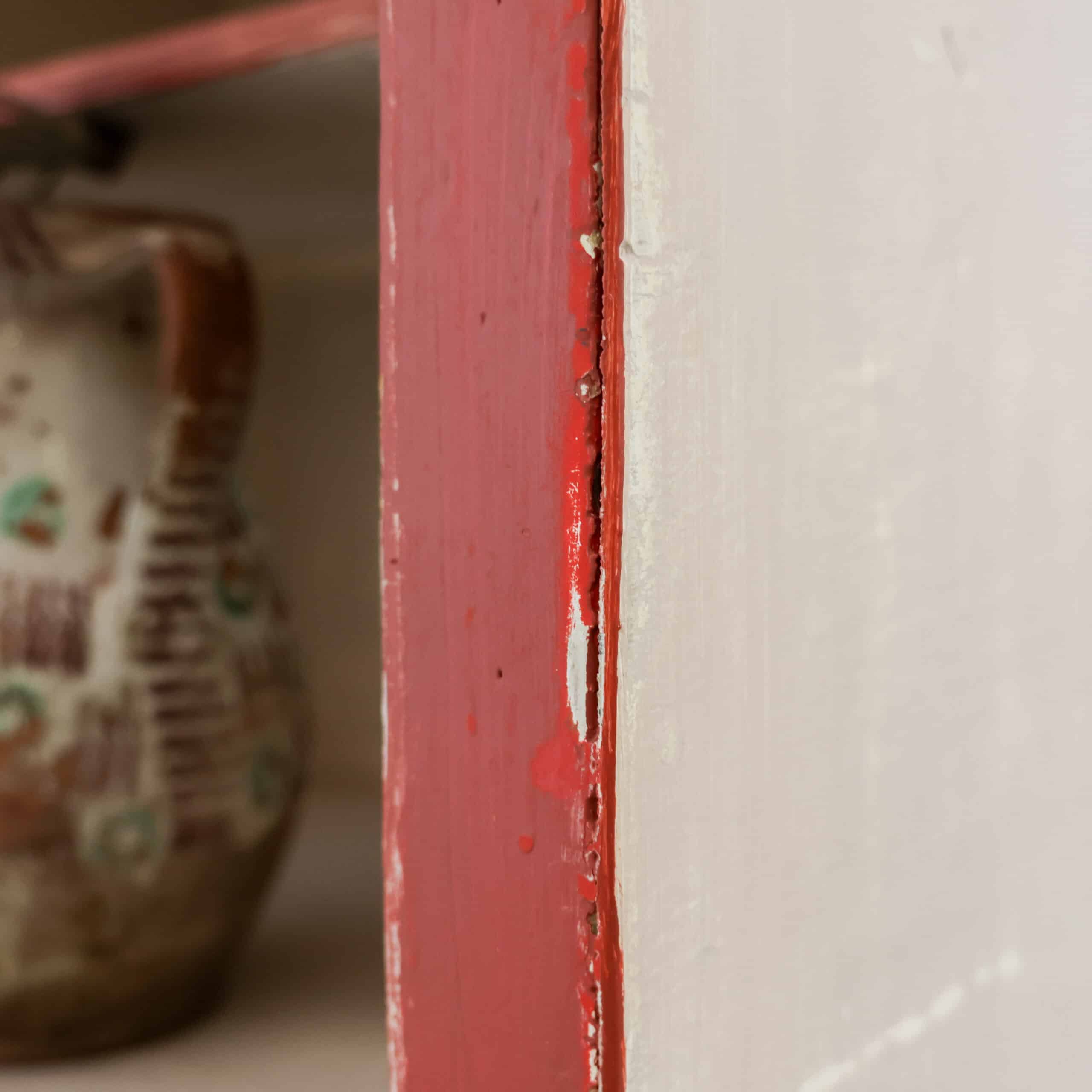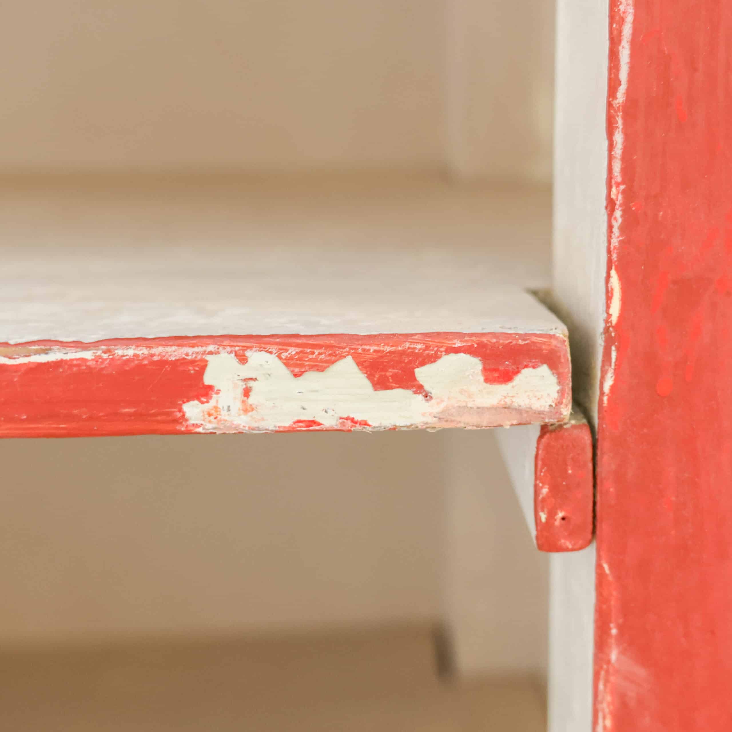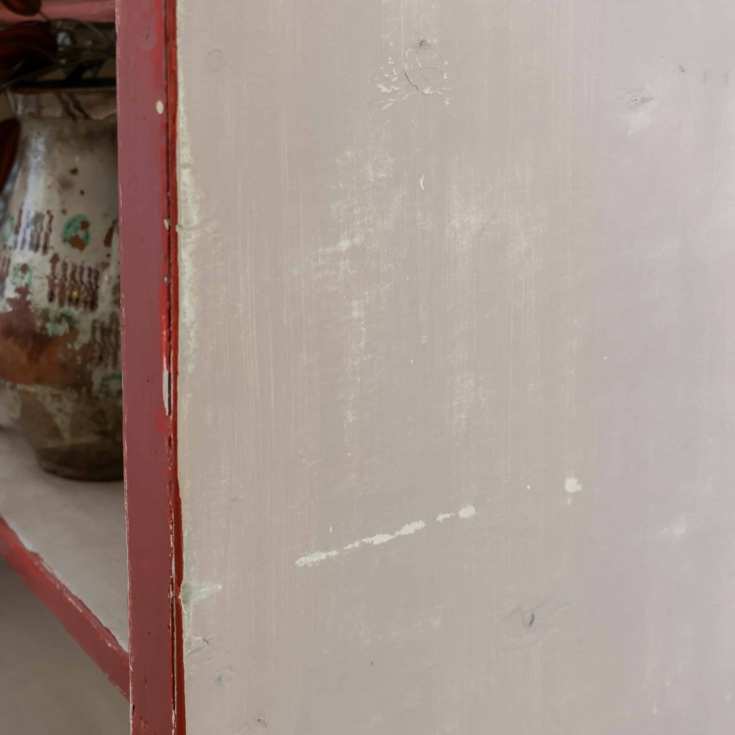 Mooie open boekenkast uit Hongarije! Van oude vervallen kast naar opgeknapte boekenkast met twee grote lade! Een duurzame en unieke kast.