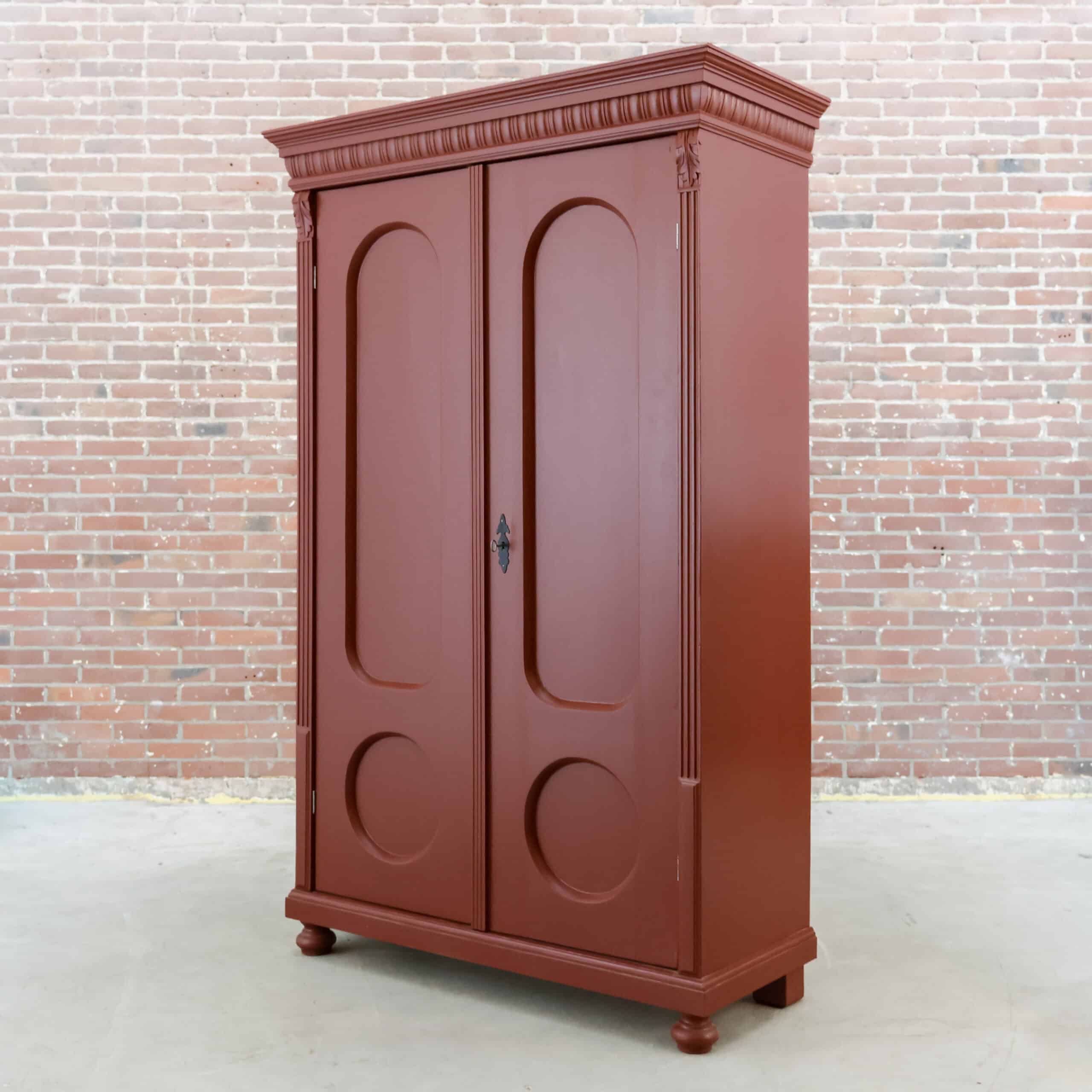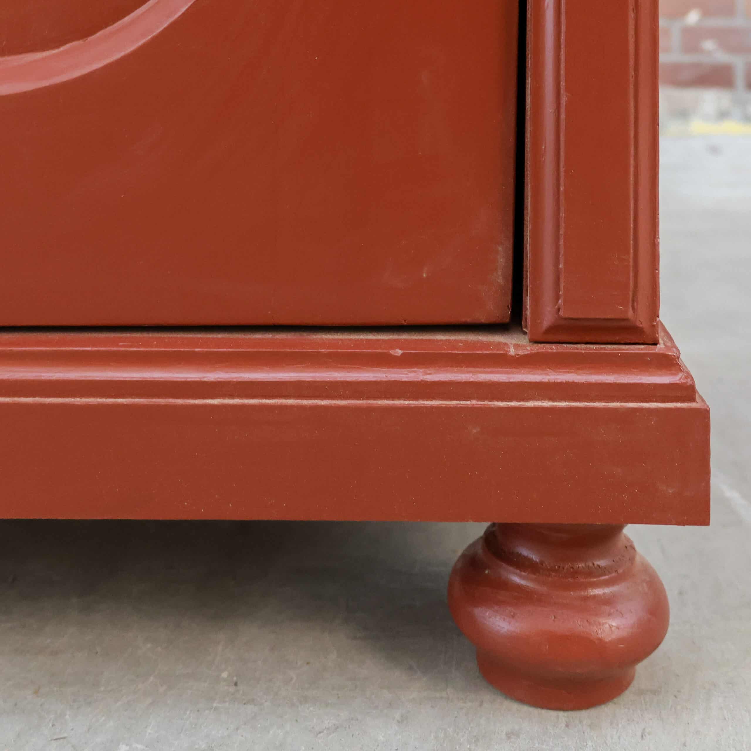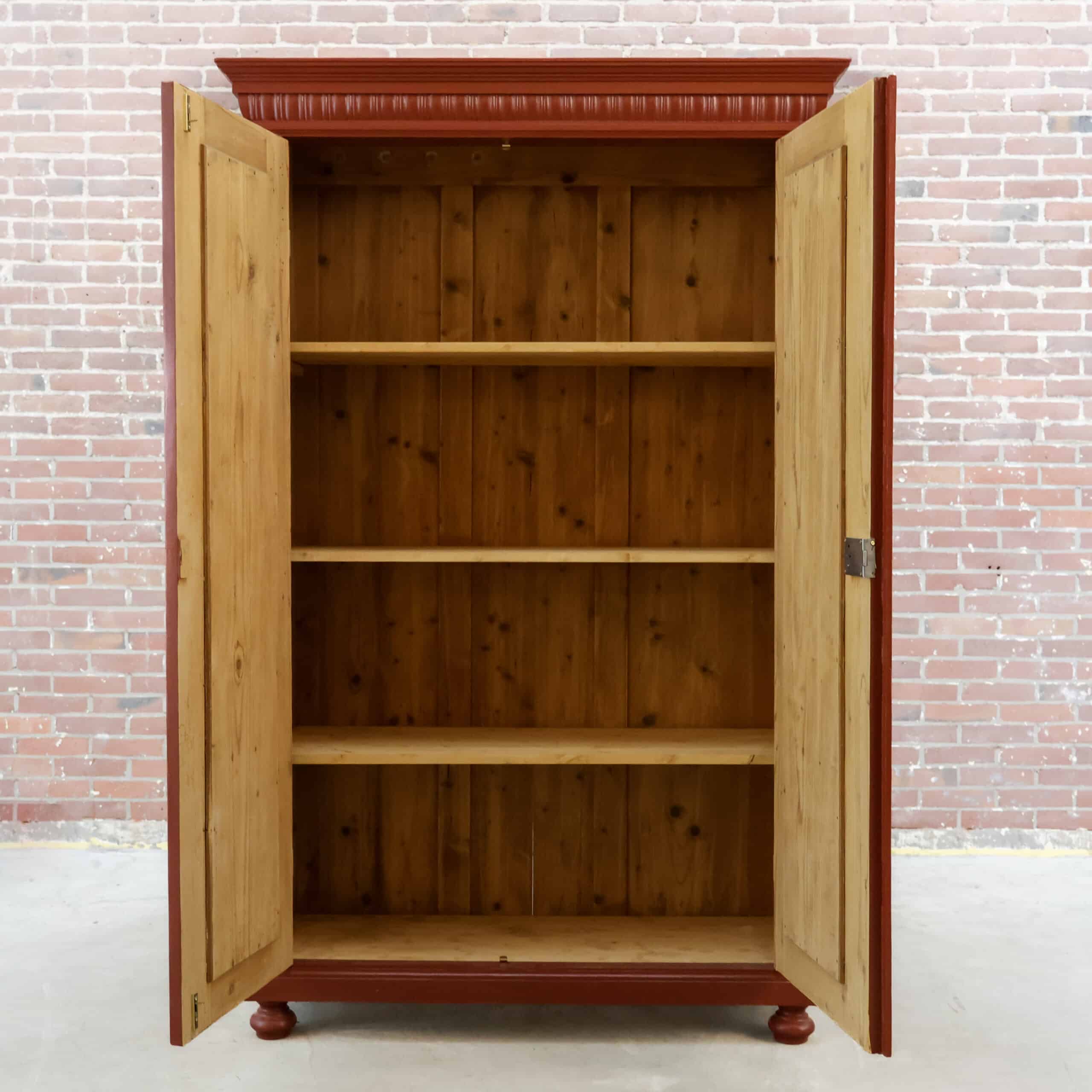 Deze brocante rode linnenkast hebben we opgespeurd en opgeknapt in Hongarije! Zo hebben we haar oa nieuwe planken en een rood knal kleur gegeven.