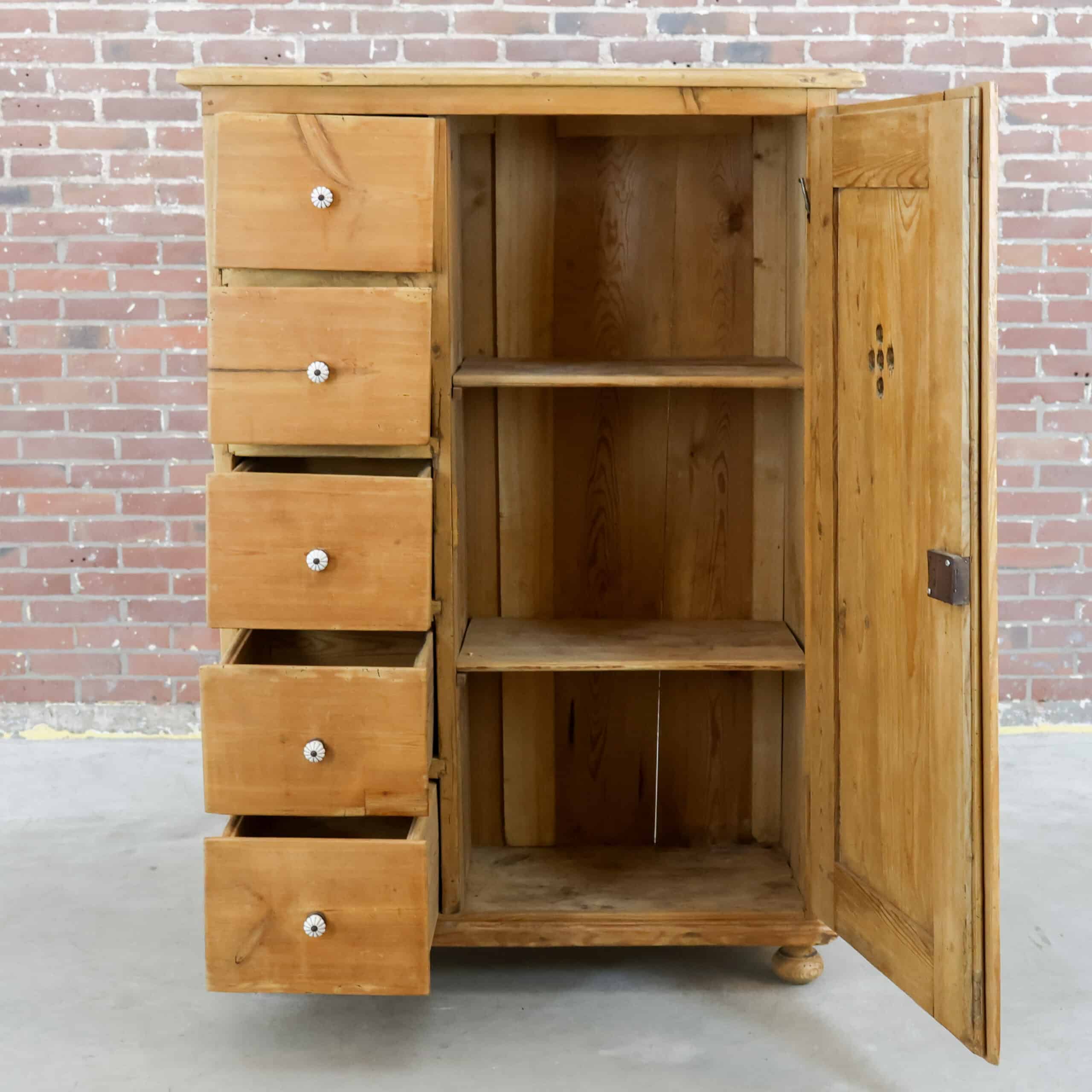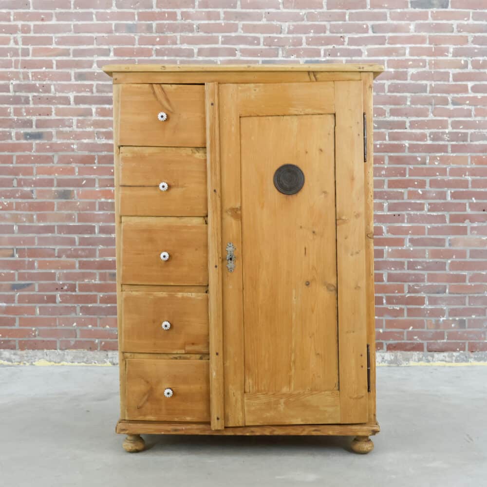 Wat een leuke brocante kast deze spekkast! De kast is in een goede brocante staat en door haar neutrale kleur en fijn formaat erg handig voor verschillende kamers in huis.