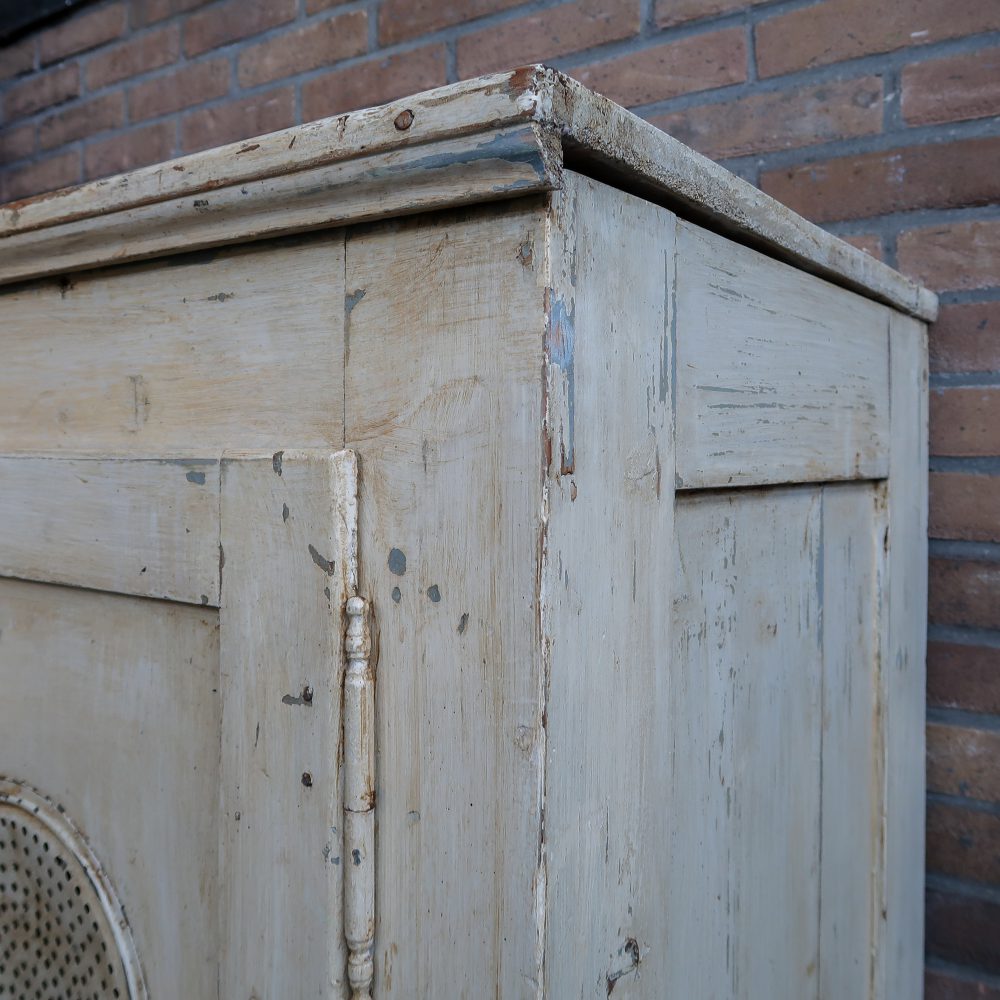 Nét binnen, dit leuke brocante spekkastje uit Hongarije. Nog geheel in originele staat en door de jaren heen prachtig verweerd. Deze uitvoering komen we niet vaak tegen, met klep én deurtjes. Fijne sfeermaker voor in de keuken!
