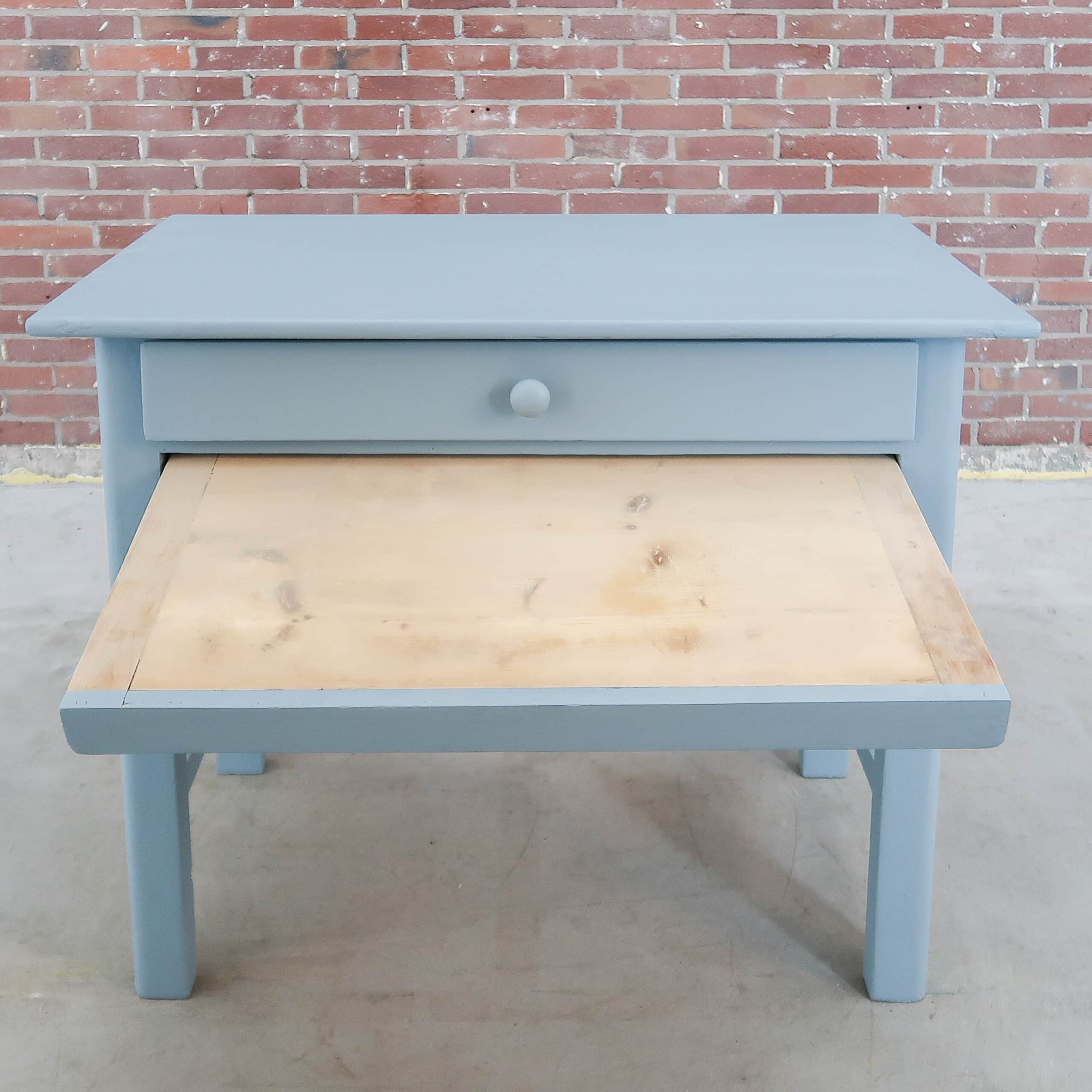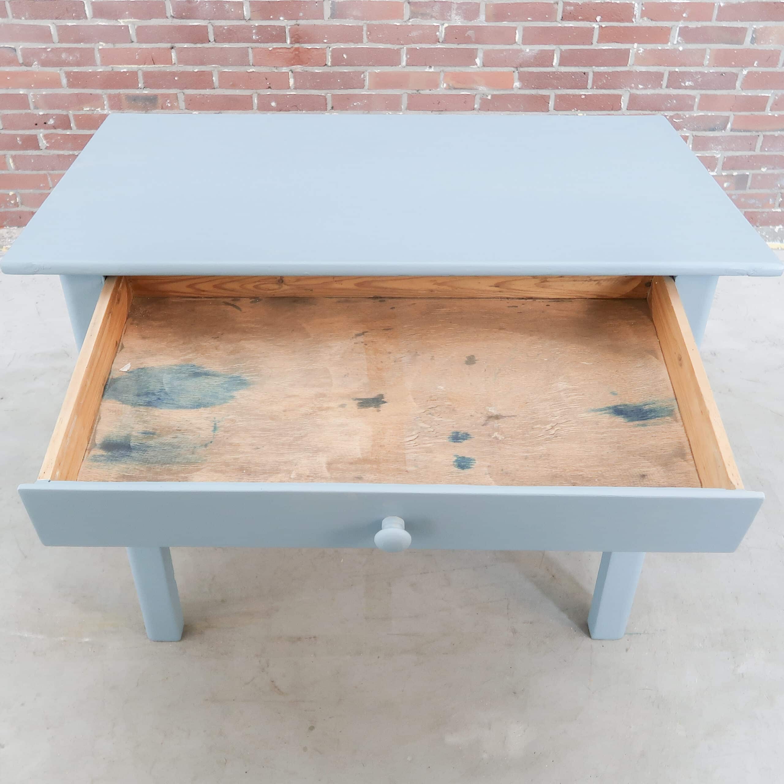 Mooi, dit charmante brocante tafeltje! Dit formaat is perfect voor een bescheiden keuken of eethoek. Het is ook zeer geschikt als bureautje. Echt een schatje. Extra leuk is de grote la en uittrekbare plank.