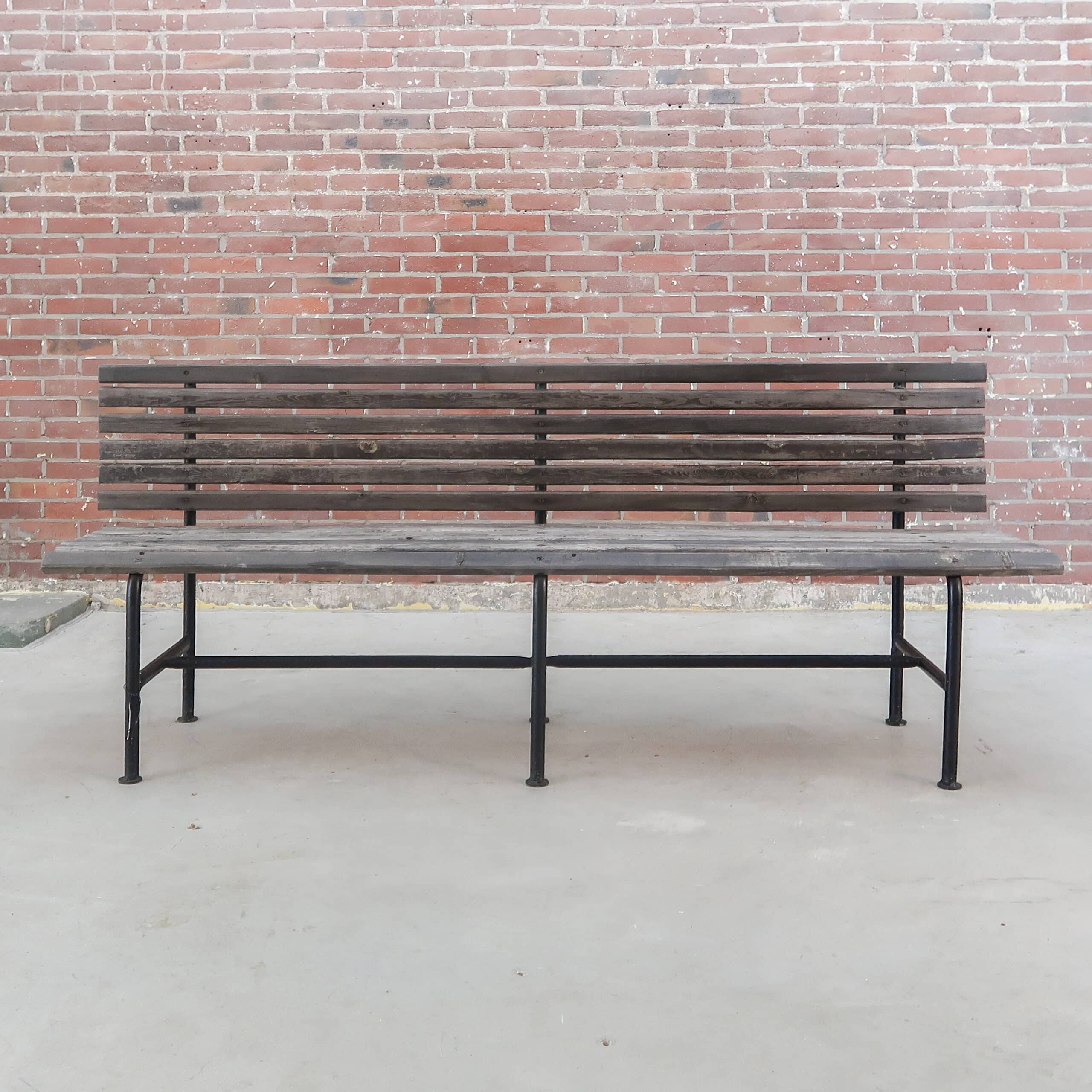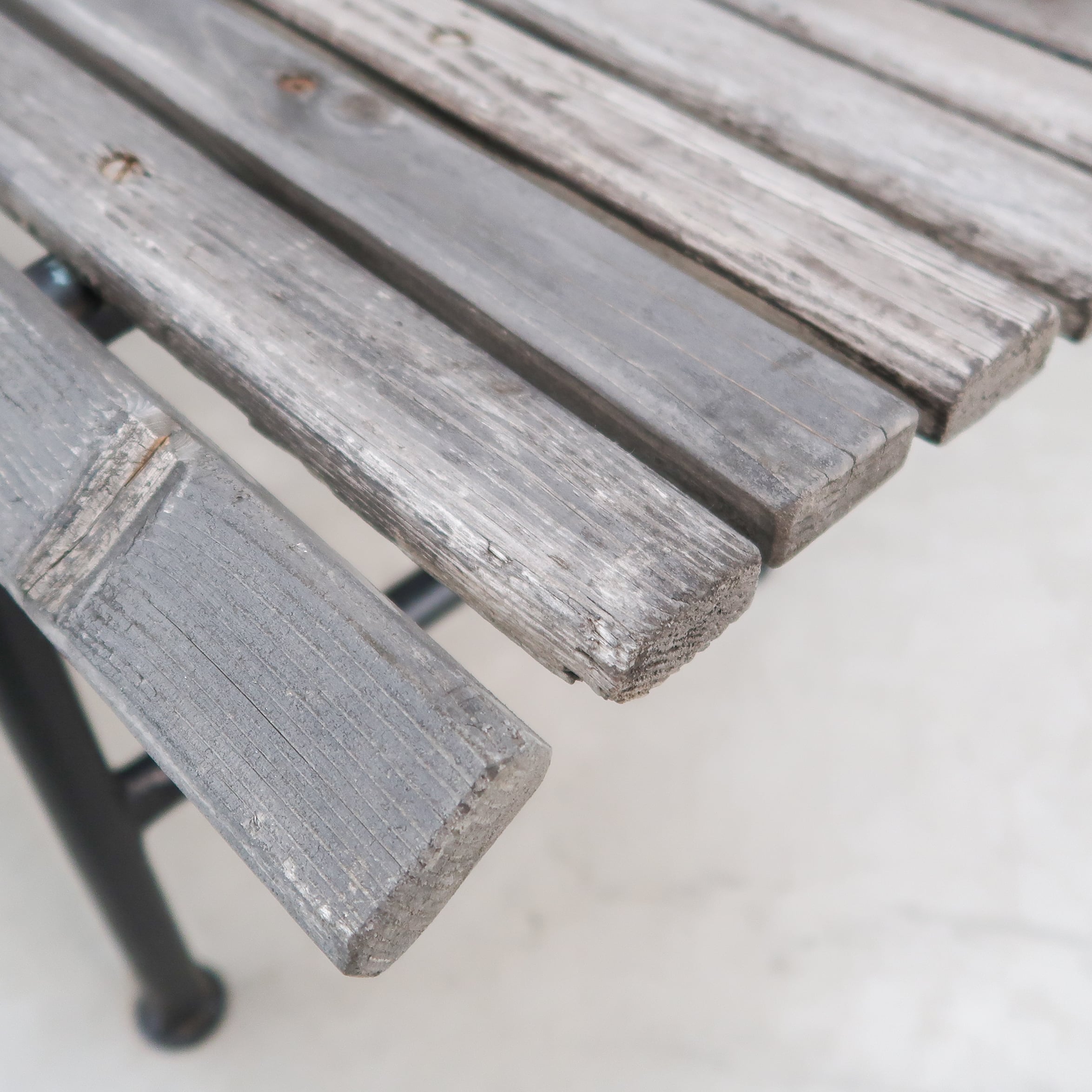 Deze brocante tuinbank heeft een sfeervol metalen frame. De zitting en rugleuning zijn voorzien van charmant verweerde planken. Deze voormalige parkbank uit Boedapest is een uniek stuk dat charme en karakter toevoegt aan je tuin, terras of hal. Robuust, authentiek en helemaal klaar voor een tweede leven.
