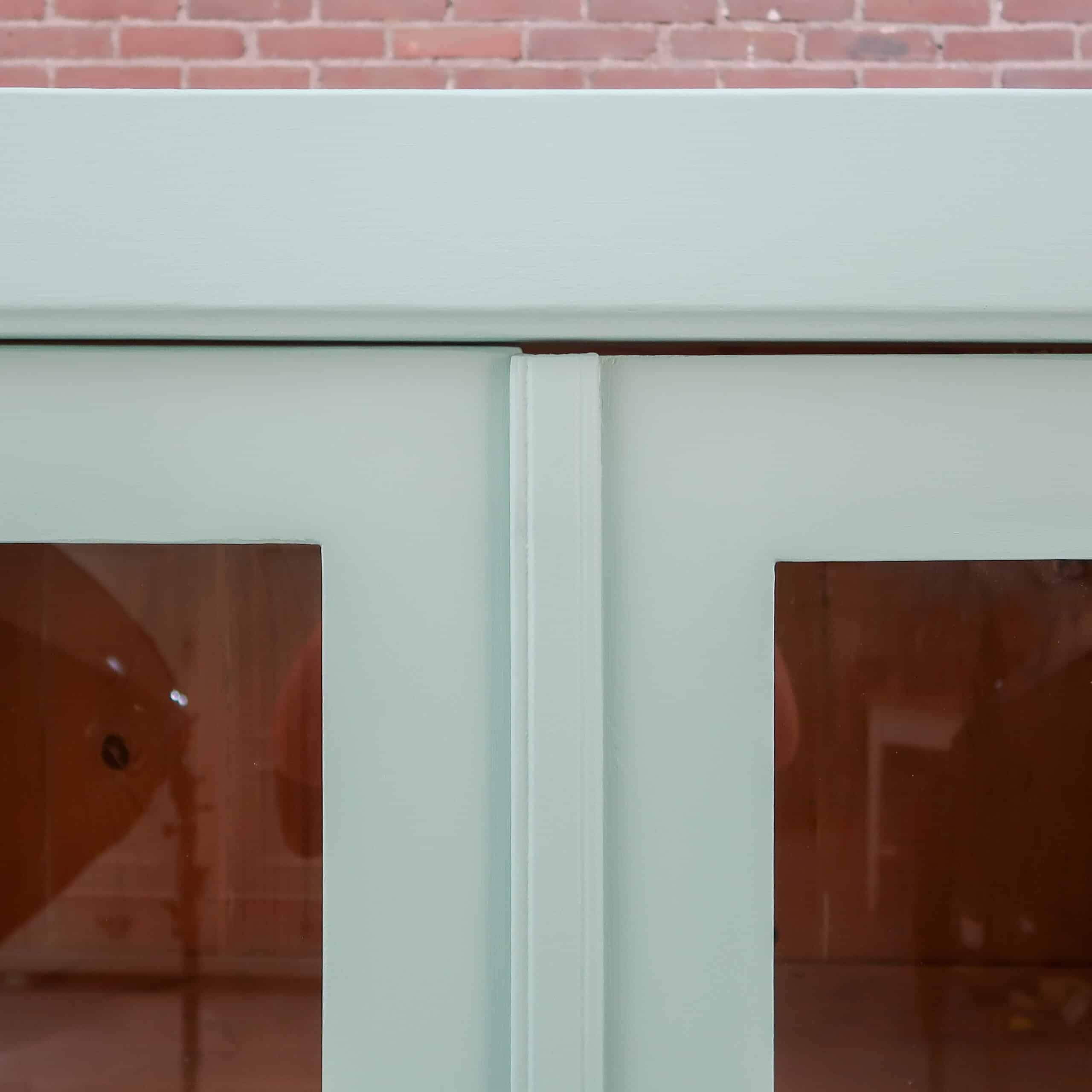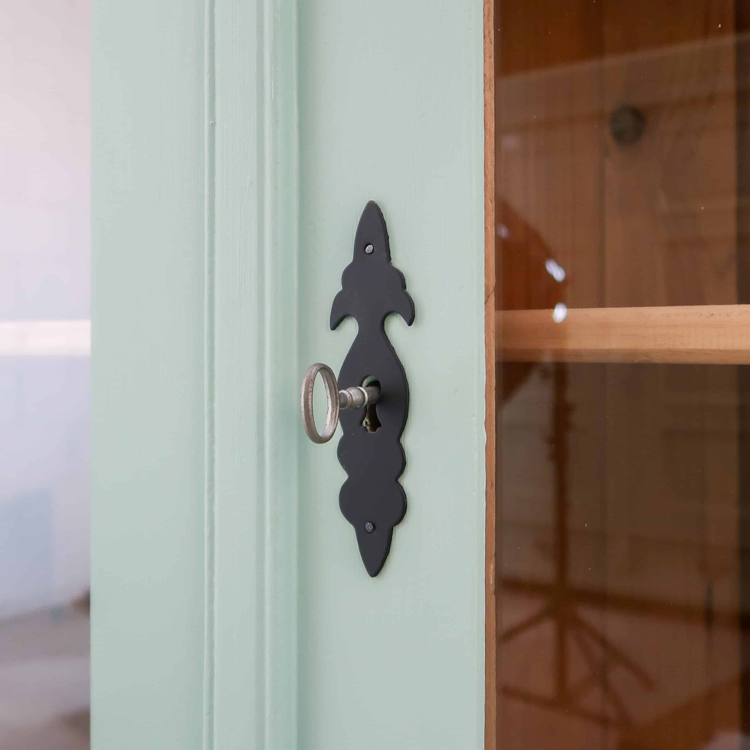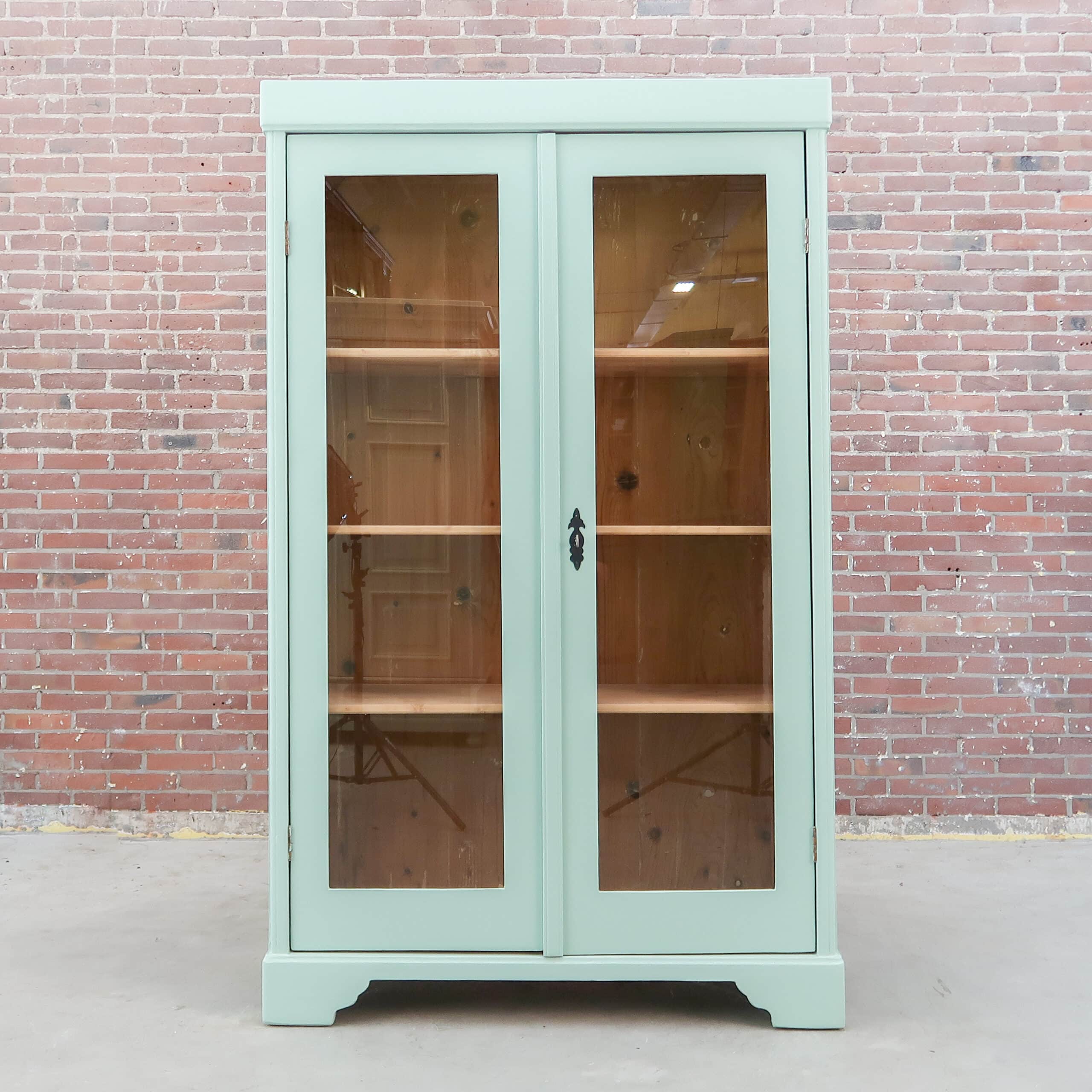 Deze brocante vitrinekast uit Hongarije is volledig opgeknapt en voorzien van een frisse mintkleur. De kast heeft nieuwe poten, planken en is verder met zorg gerestaureerd. Dankzij de glazen panelen is hij perfect om mooie items in tentoon te stellen. Een stijlvol en praktisch meubel met karakter.