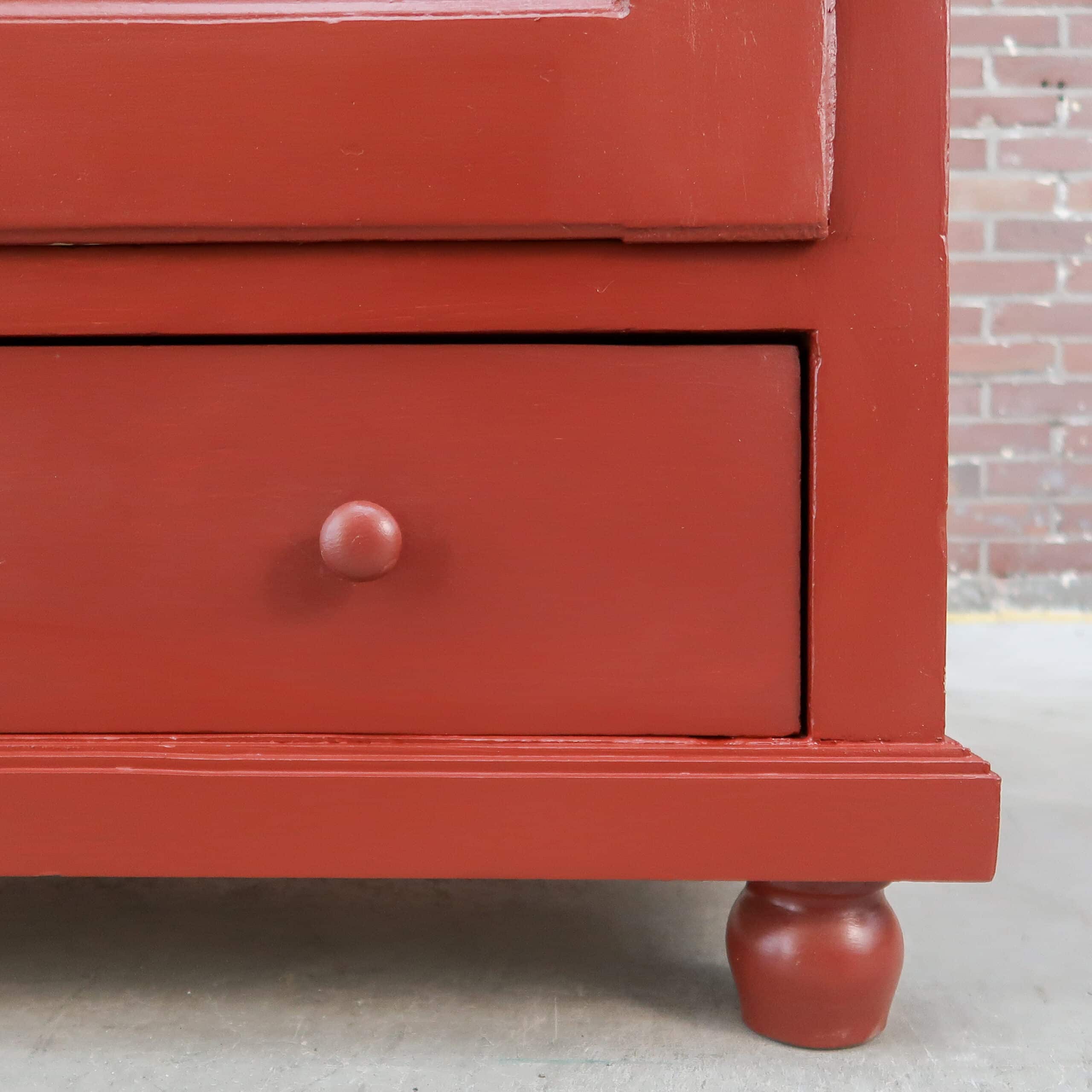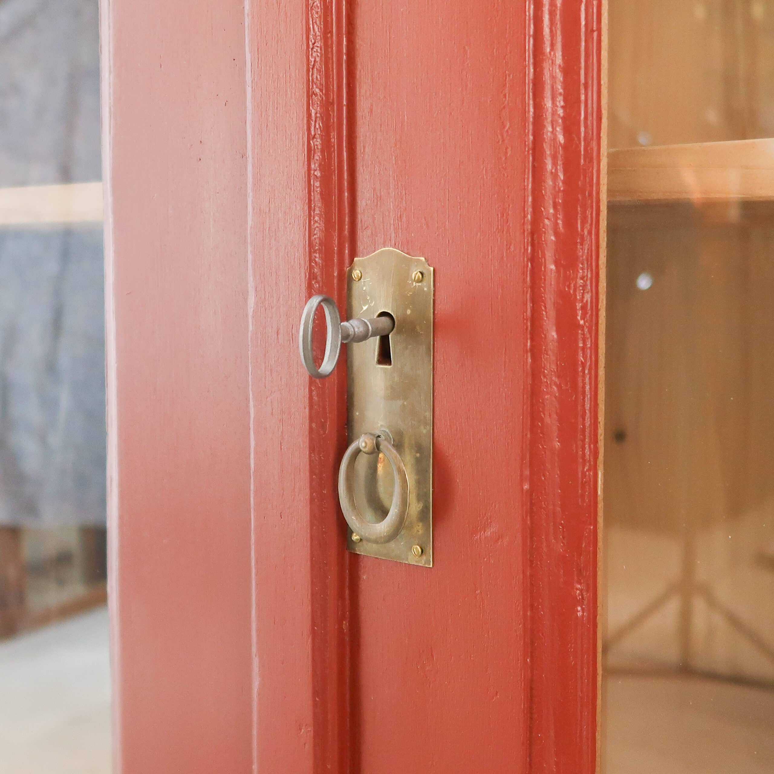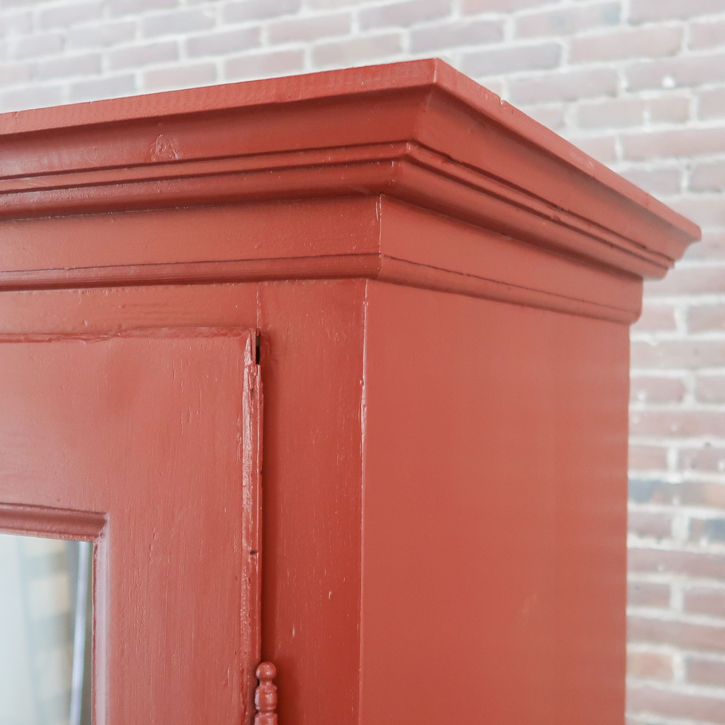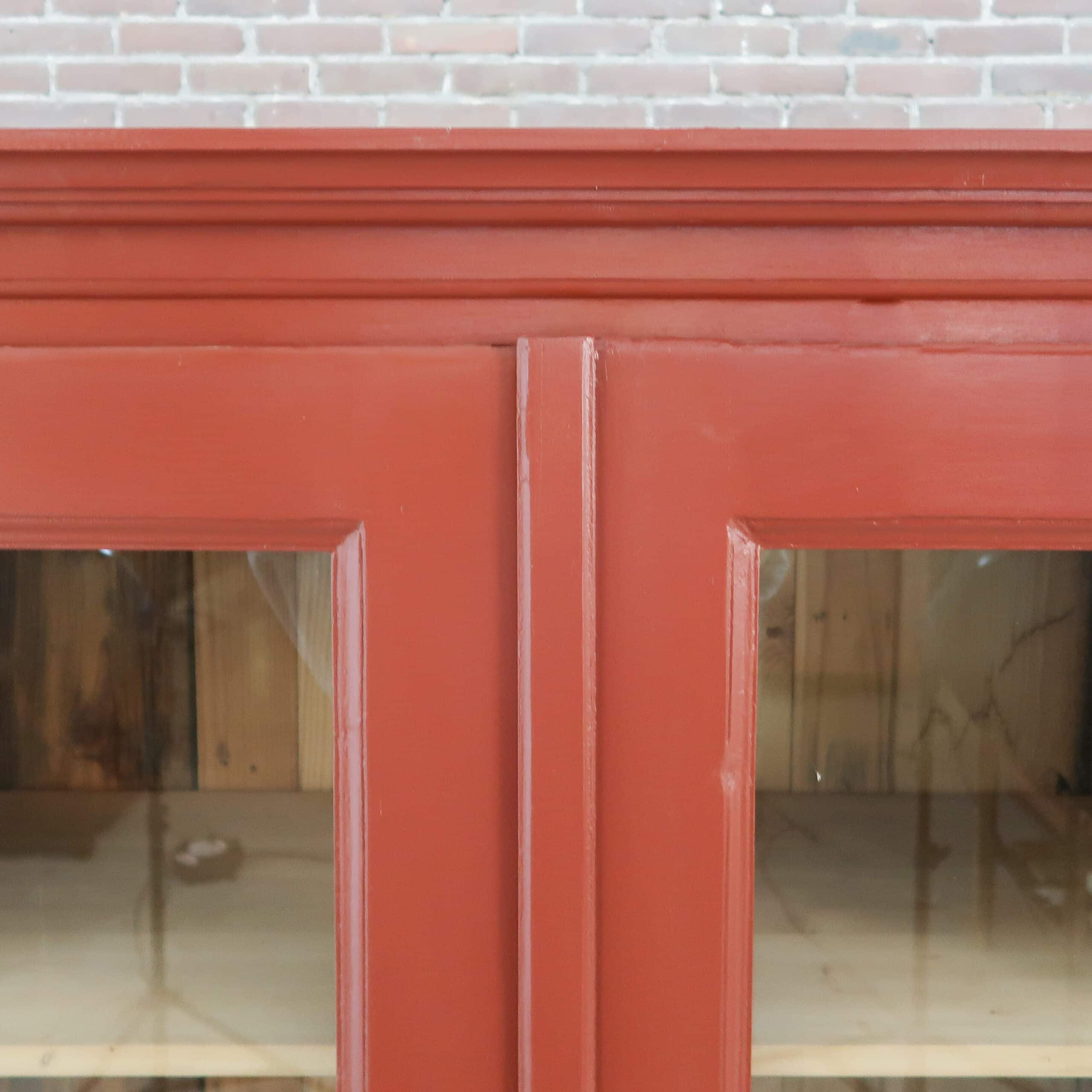 Mooi, deze brocante vitrinekast uit Hongarije! We hebben deze oude dame opgeknapt waar nodig, zo heeft ze oa drie nieuwe planken en een fijn rood kleurtje gekregen. Klaar voor een nieuw leven!