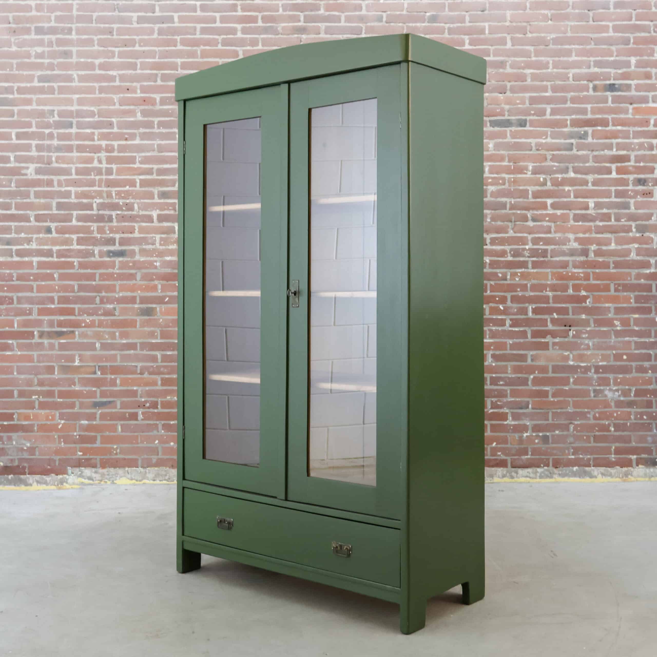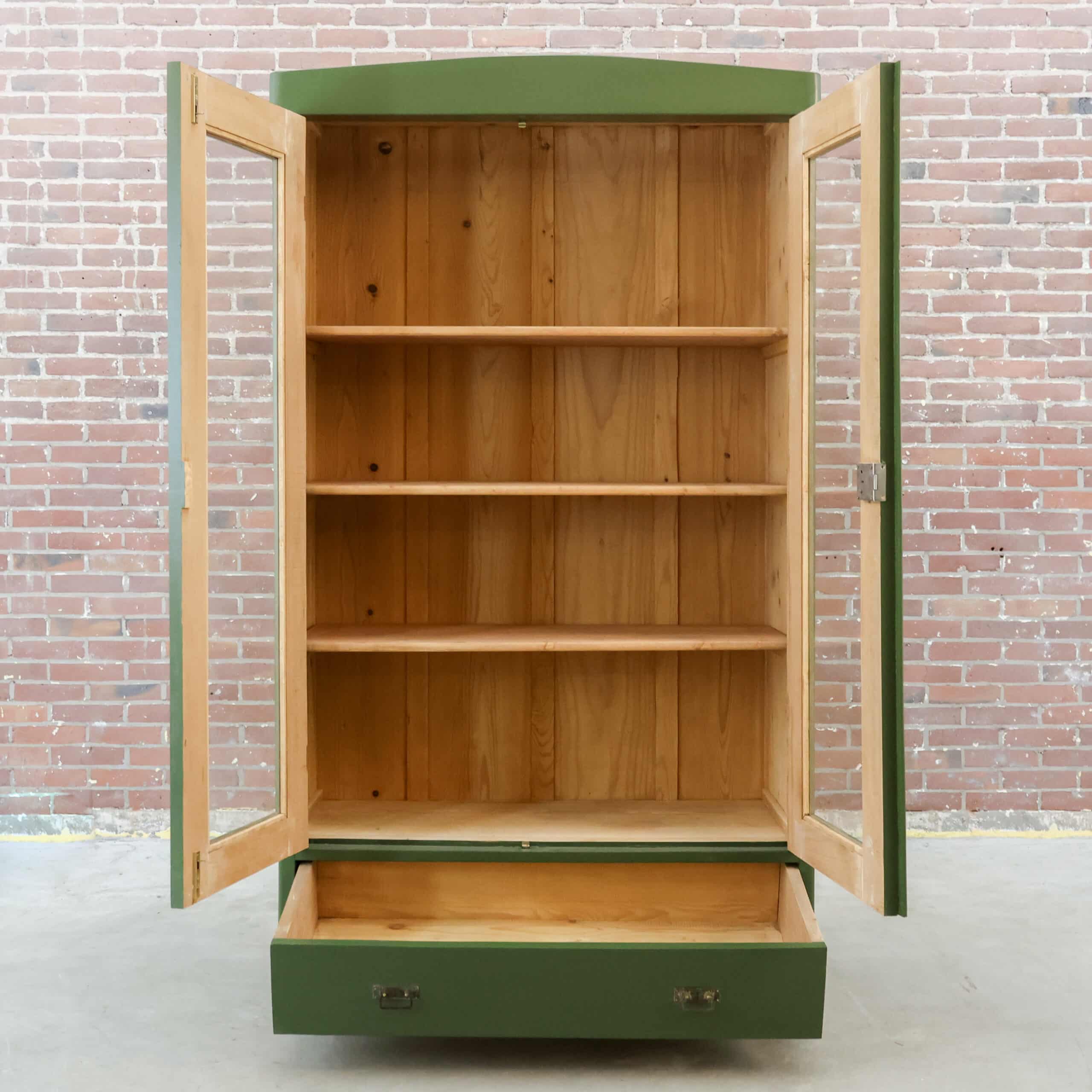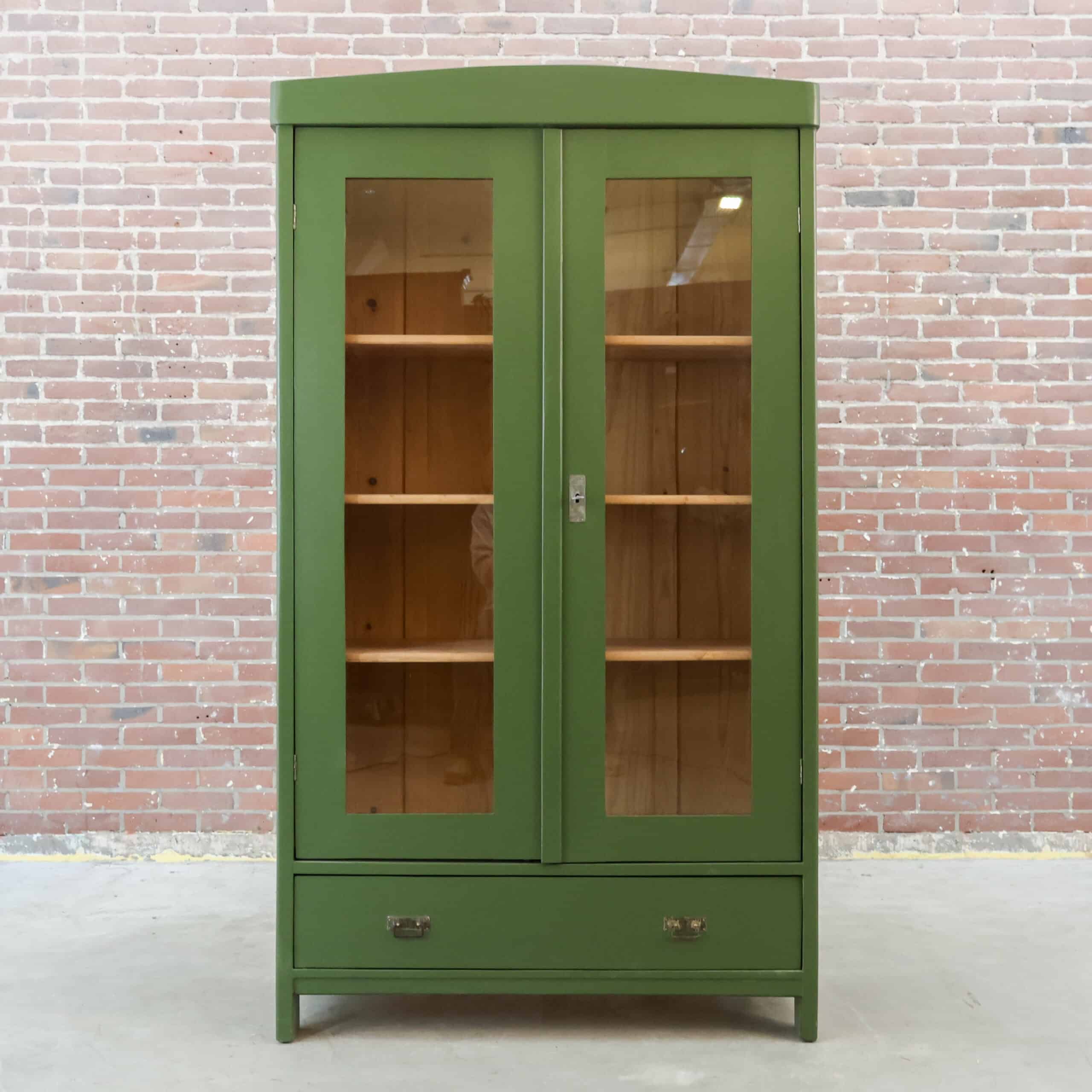 Deze mooie brocante vitrinekast komt uit Hongarije, waar we haar hebben opgespeurd én opgeknapt. Een prachtige en klassieke kast in een bijzondere kleur groen.