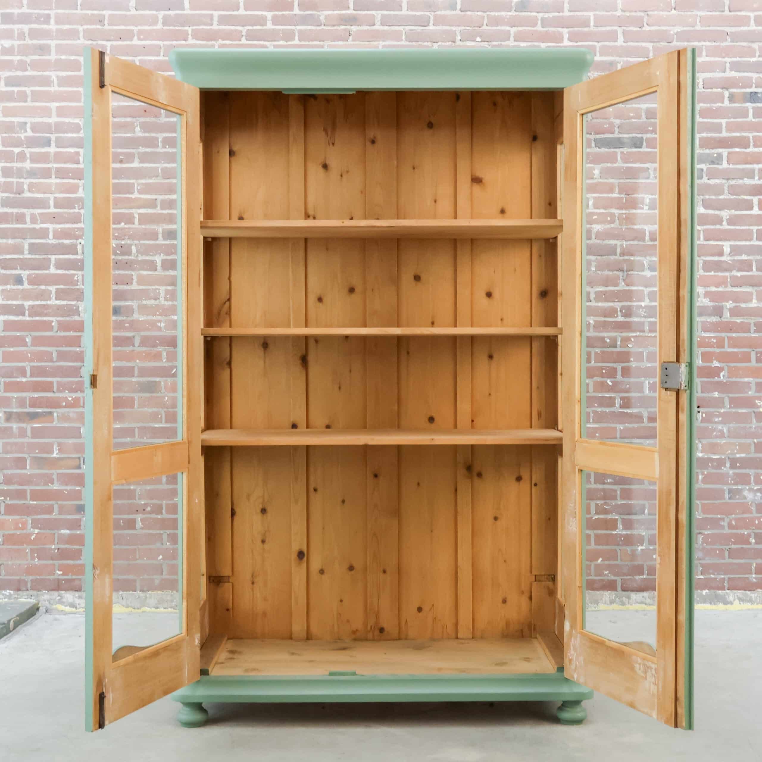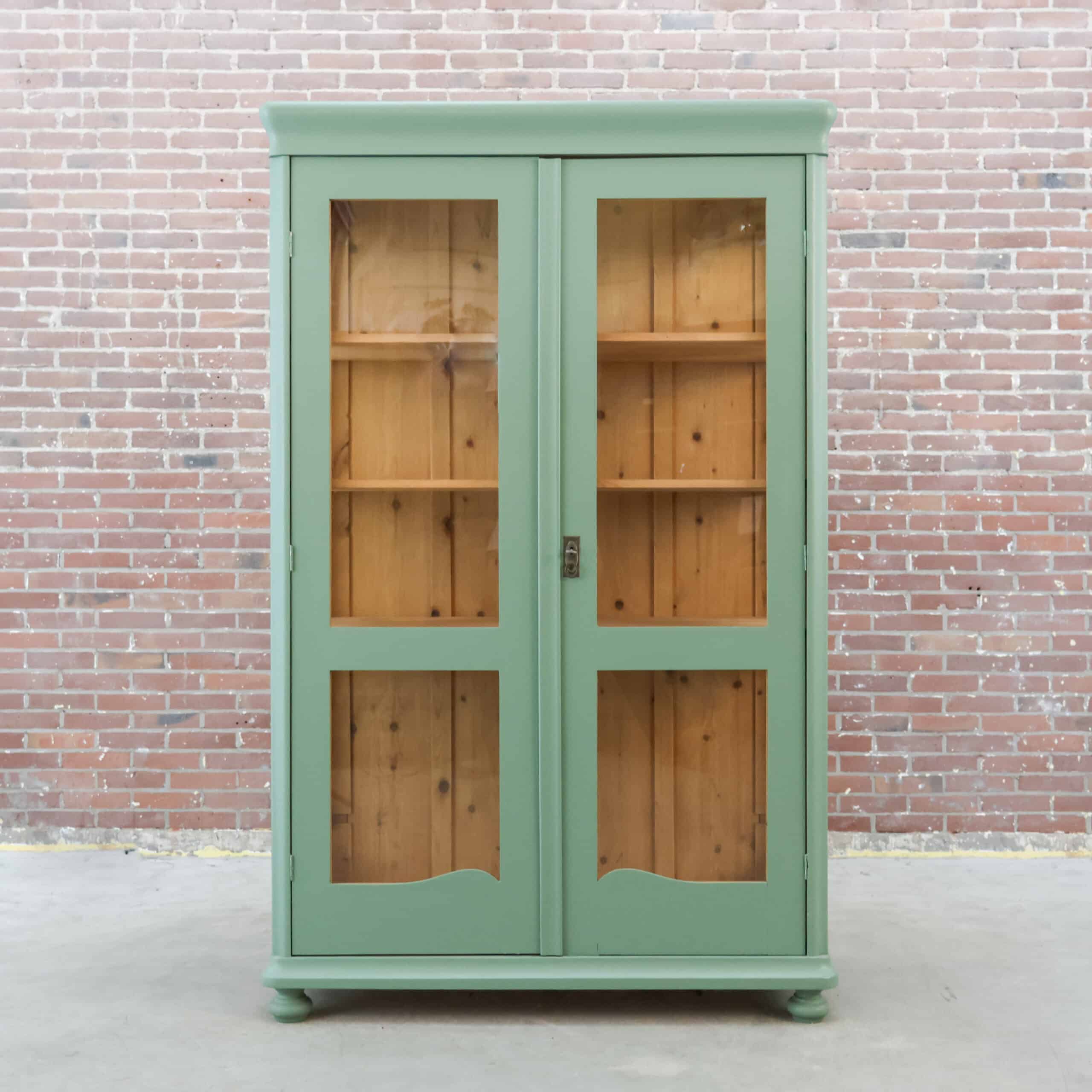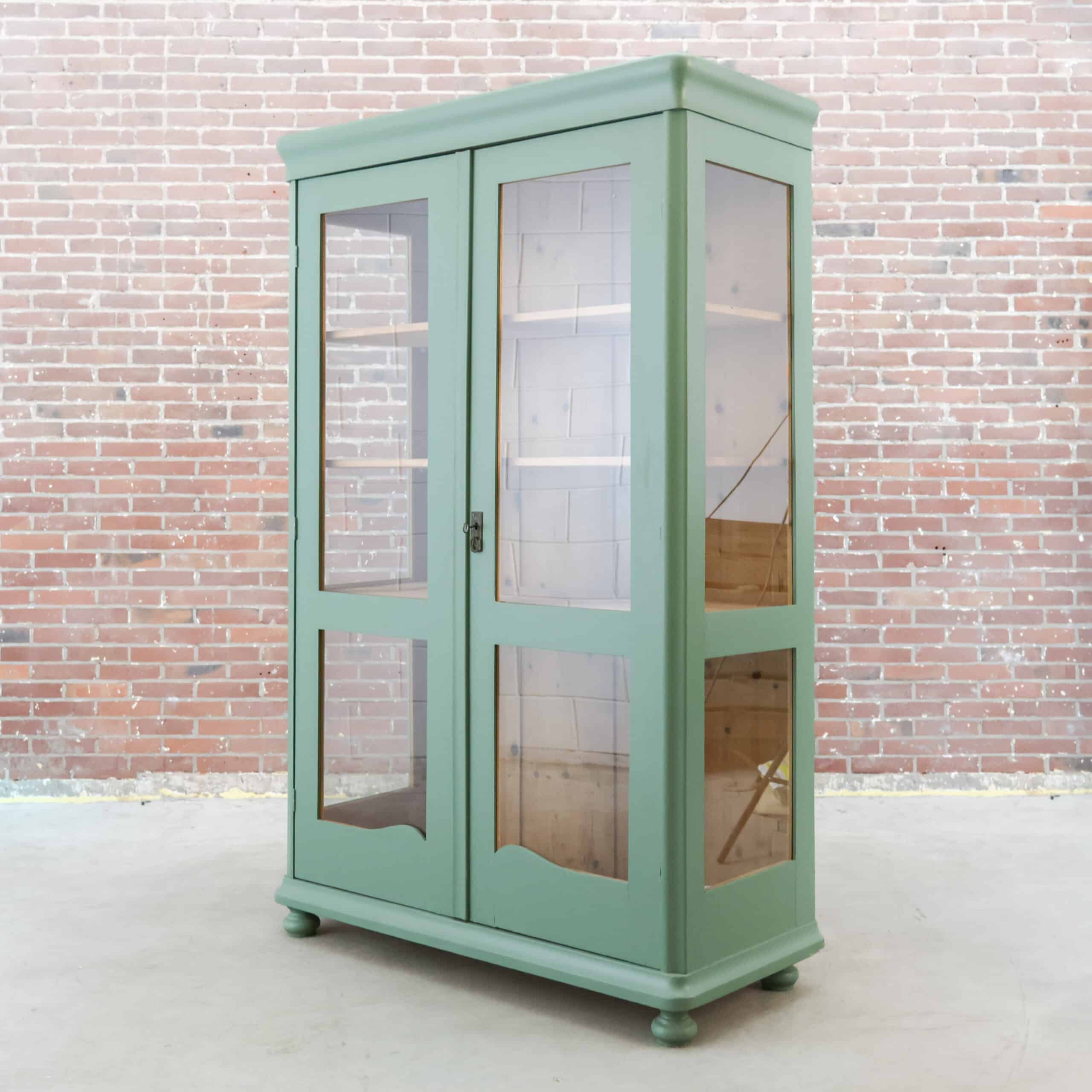 Deze mooie brocante vitrinekast komt uit Hongarije, waar we haar hebben opgespeurd én opgeknapt. Een prachtige en klassieke kast in een bijzondere kleur turquoise.