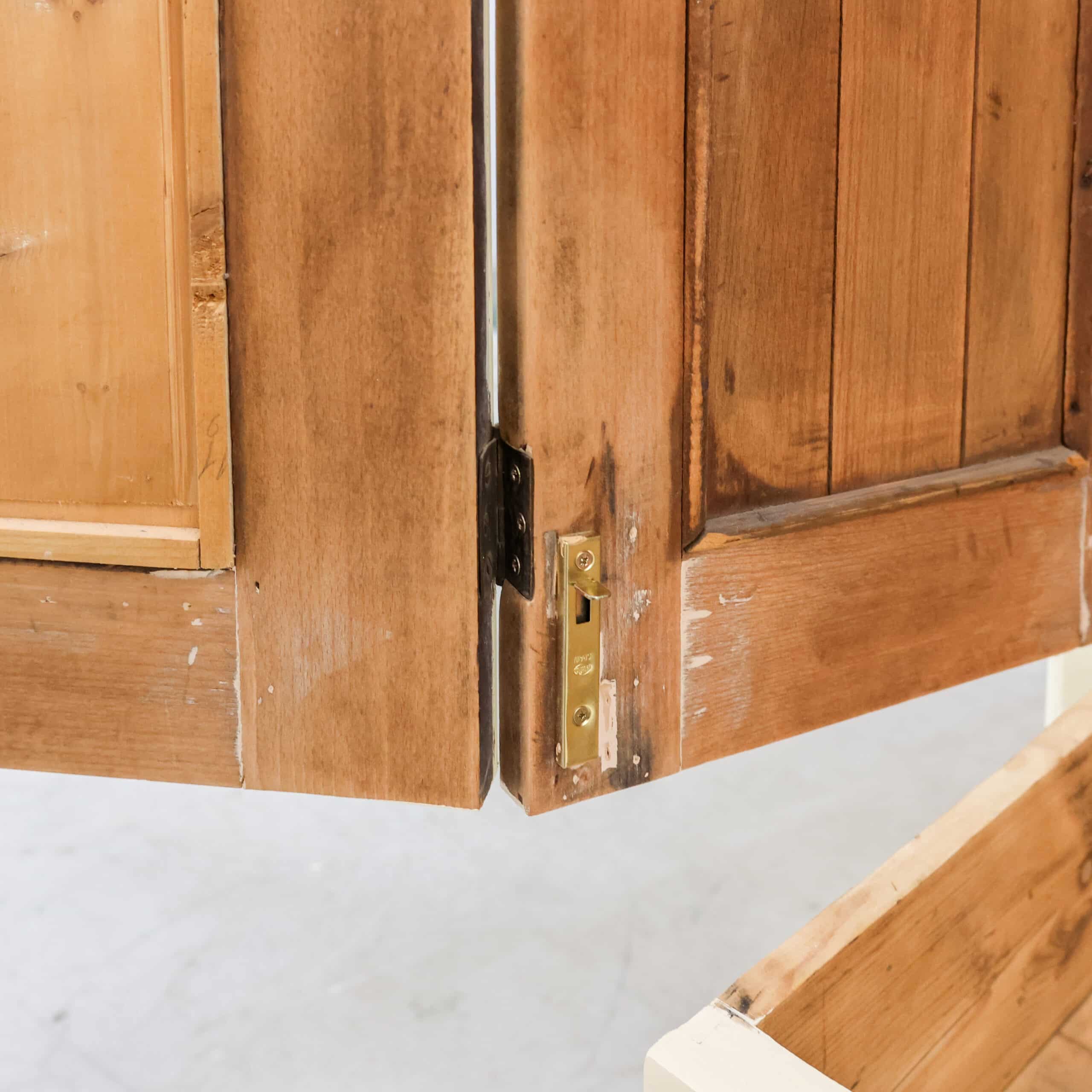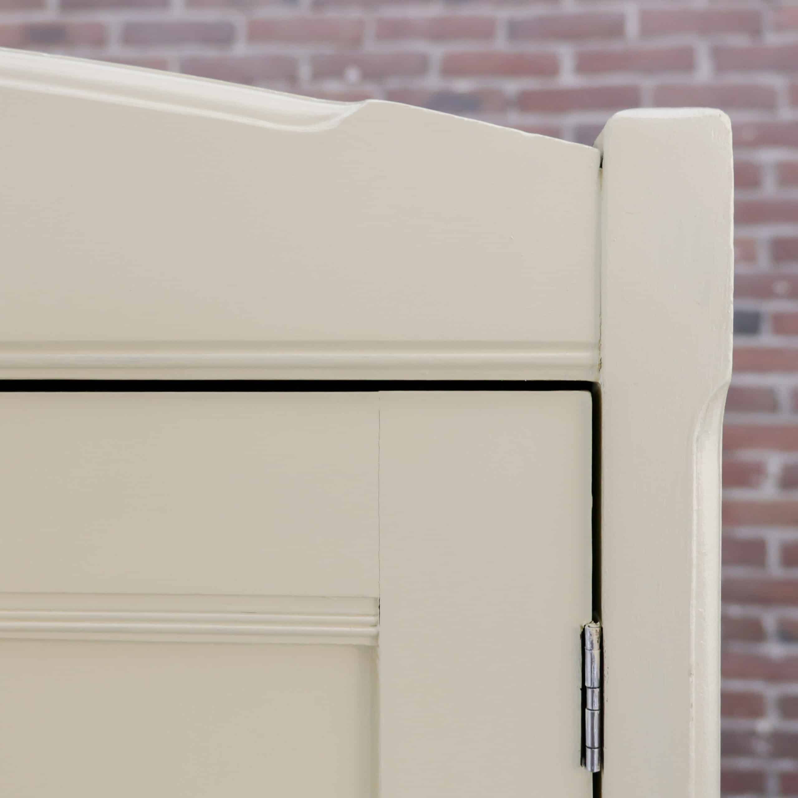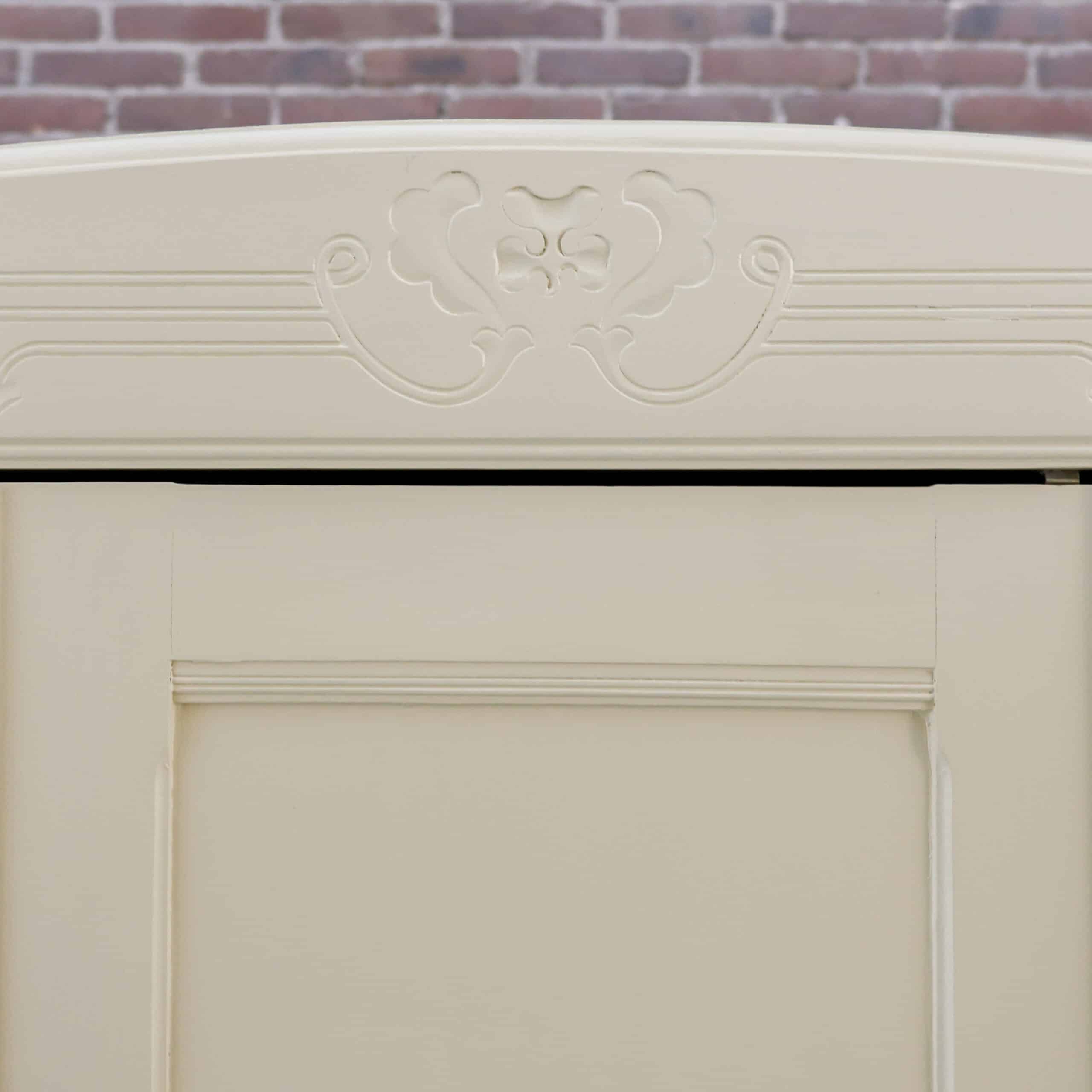Prachtige landelijke driedeurs linnenkast met een zachte crème buitenkant en een warme grenen binnenzijde. De kast heeft mooie rustige paneeldeuren, een subtiel gebogen kap en onderin een praktische lade met messing grepen. Binnenin vind je stevige legplanken en volop opbergruimte, ideaal voor kleding, servies of linnengoed. Een karaktervolle kast met lichte gebruikssporen die haar leeftijd verraden en juist bijdragen aan haar charme.