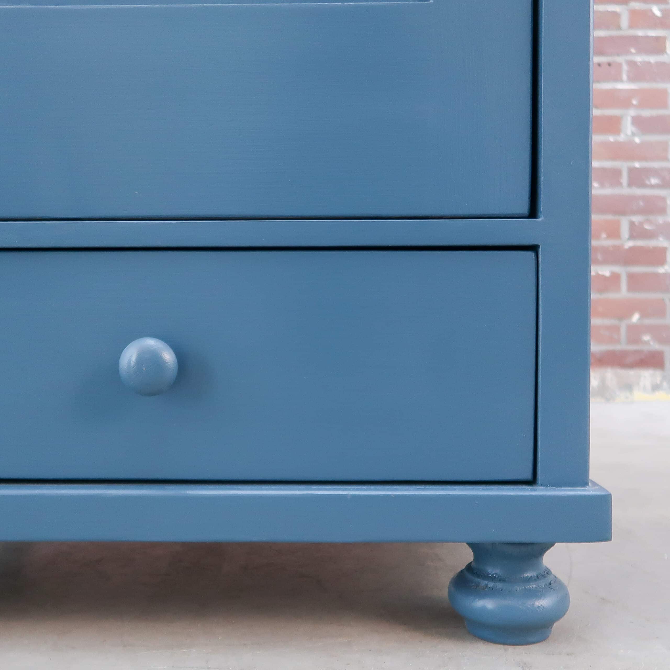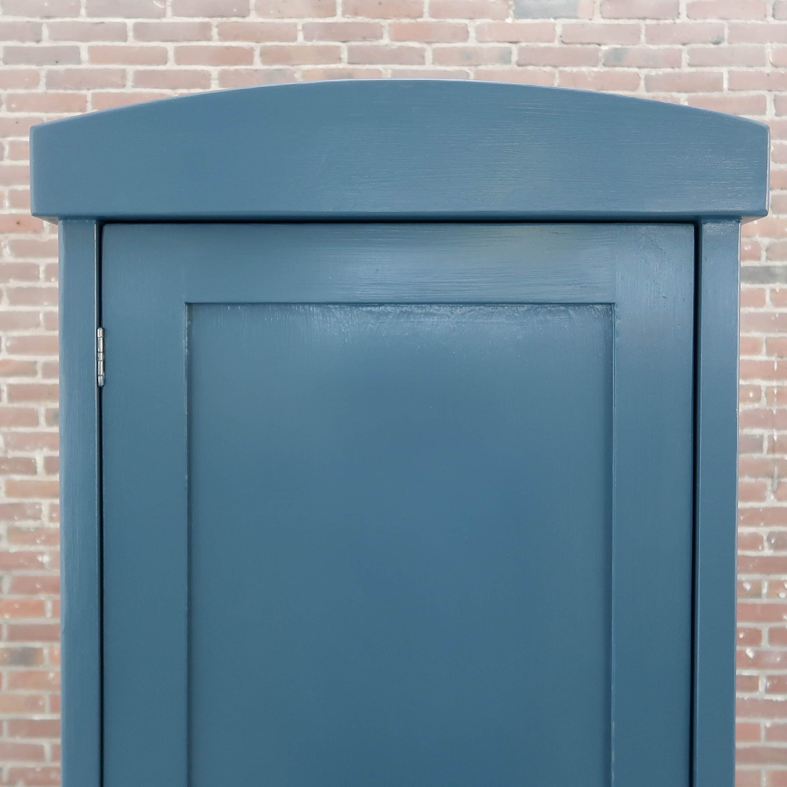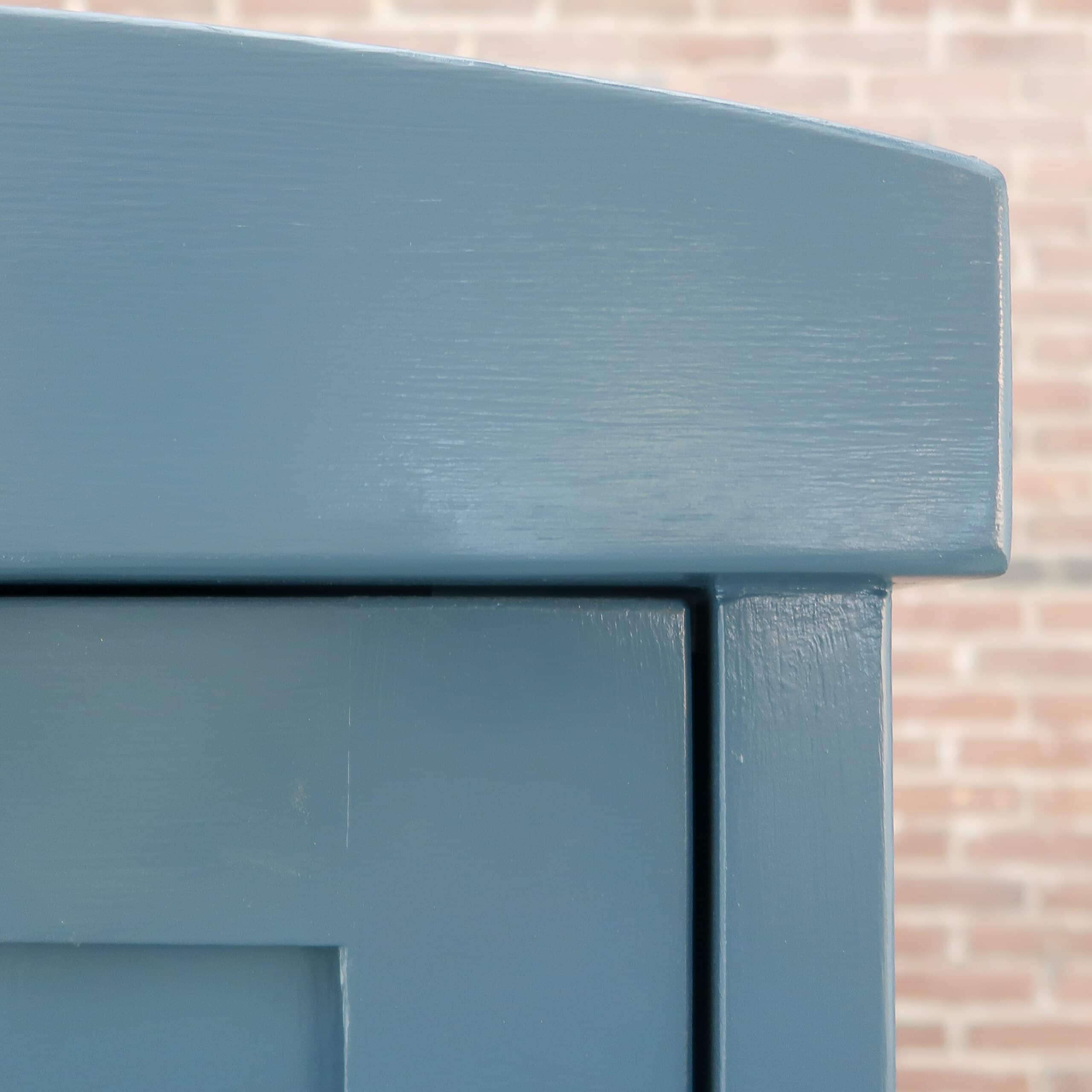 Net binnen, deze mooie eendeurs linnenkast! We hebben haar in onze eigen werkplaats gemaakt van oude kastdelen. Ze heeft een bijzondere kleur blauw gekregen en is klaar voor een nieuw leven.
