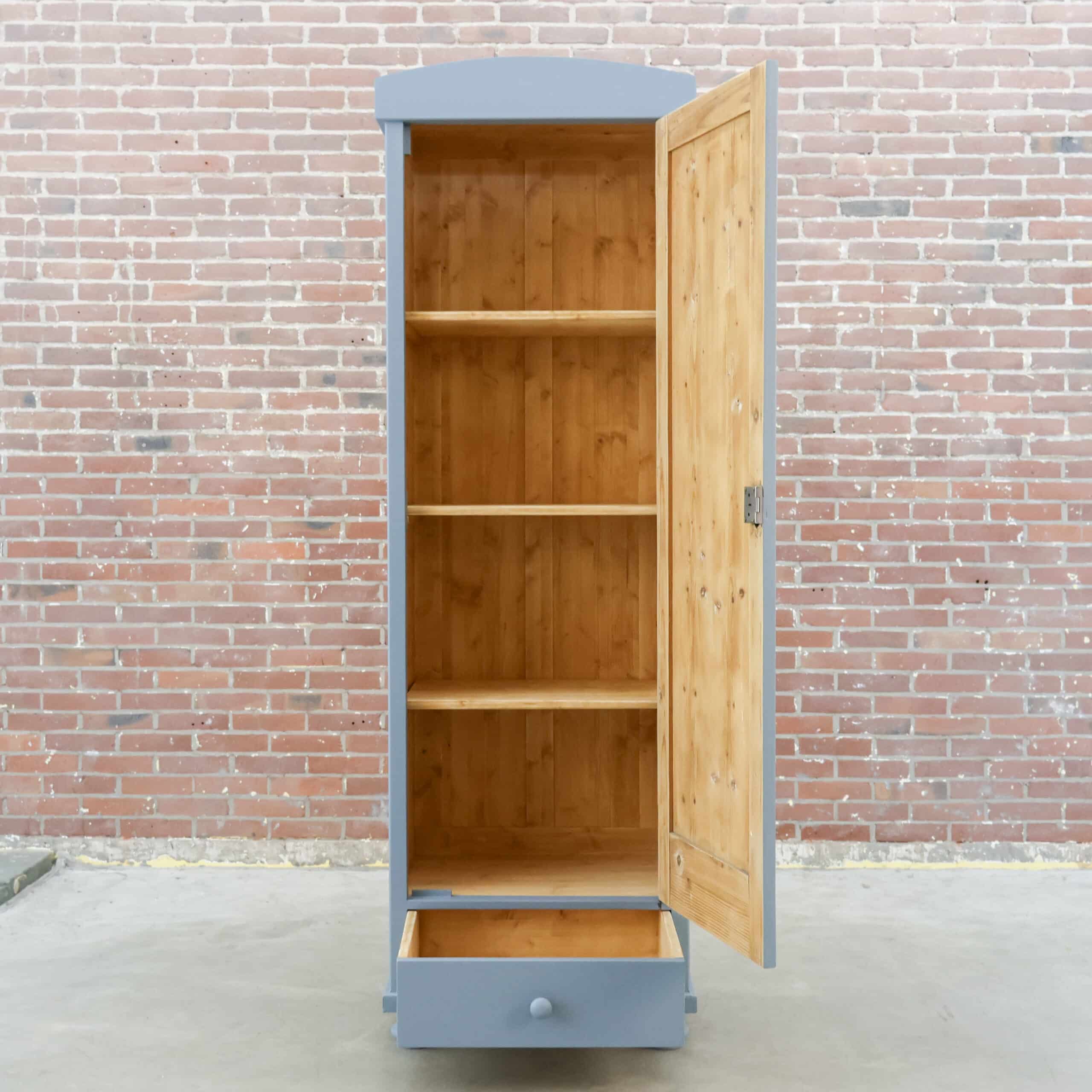 Mooie grijze linnenkast uit Hongarije! We hebben haar in eigen werkplaats gemaakt, met het hout van oude kasten die we niet meer konden redden. Zo haal je dus een heel uniek én duurzaam exemplaar in huis!