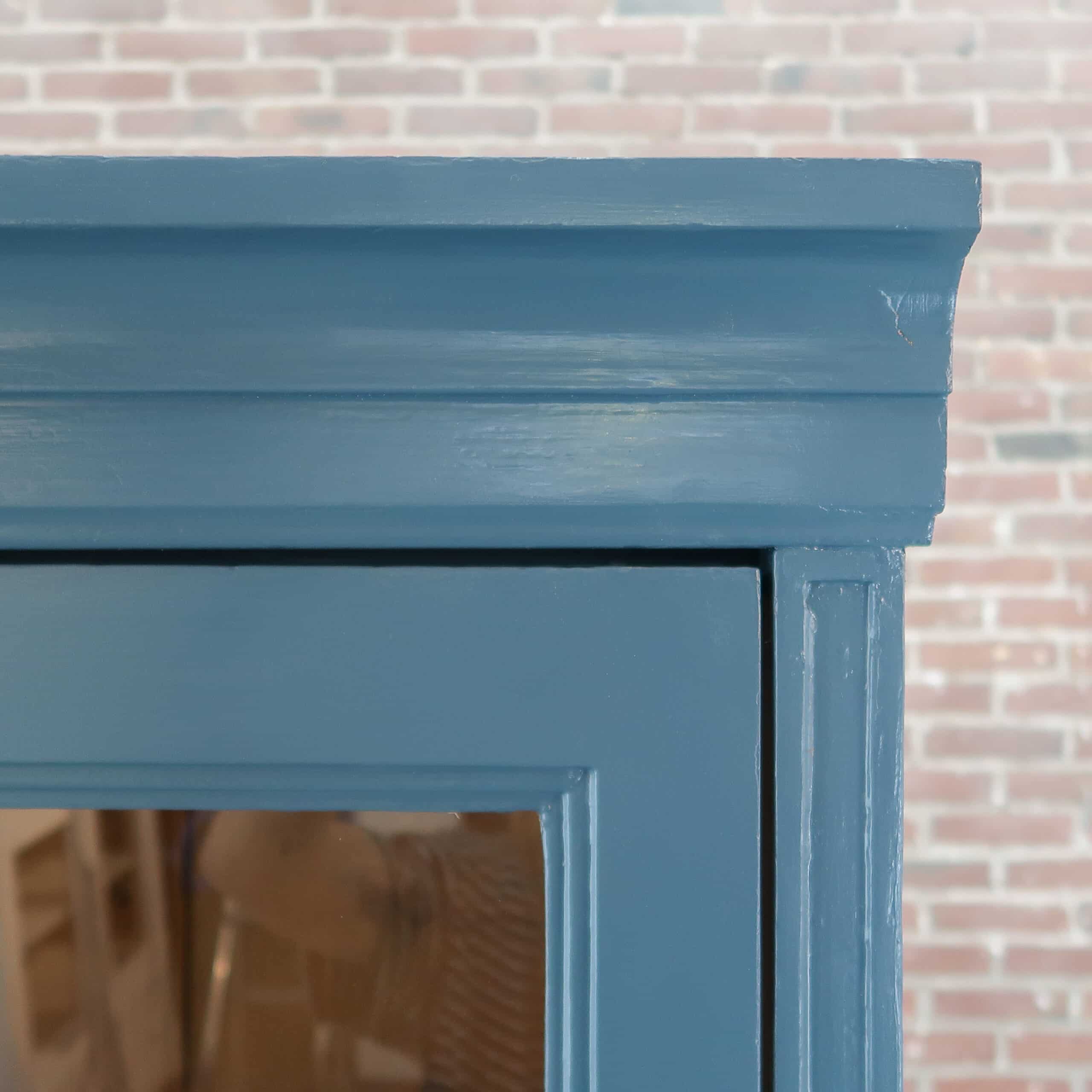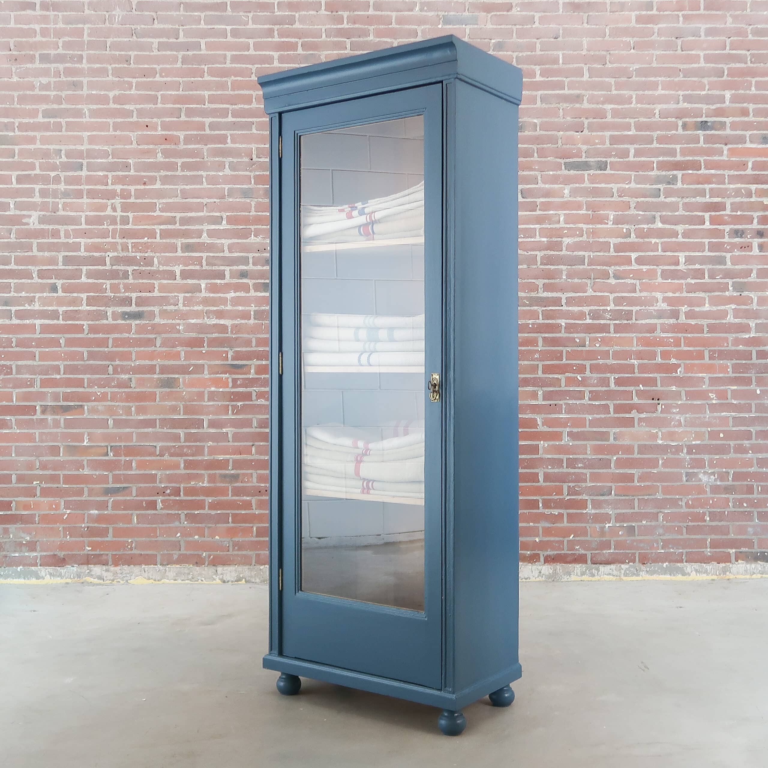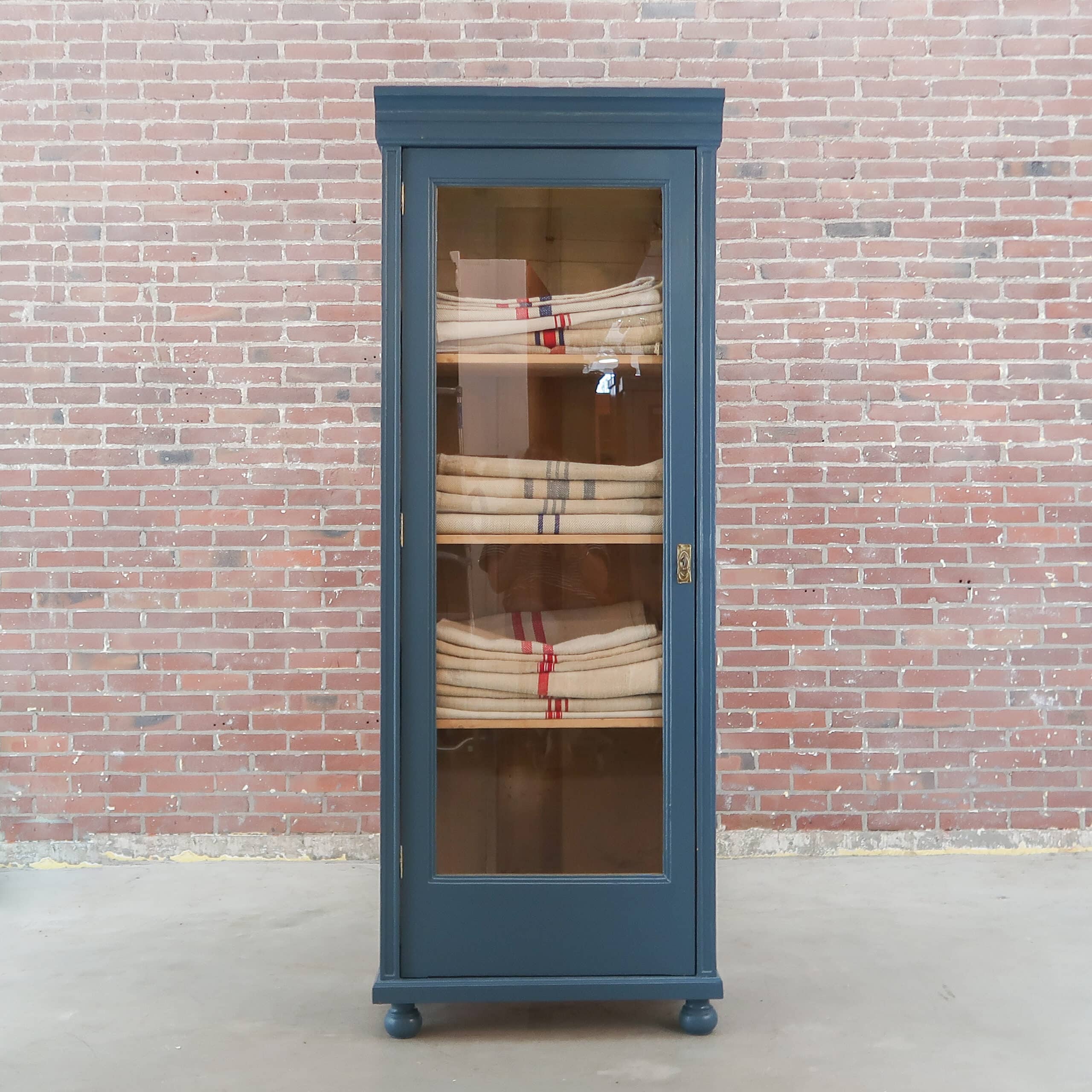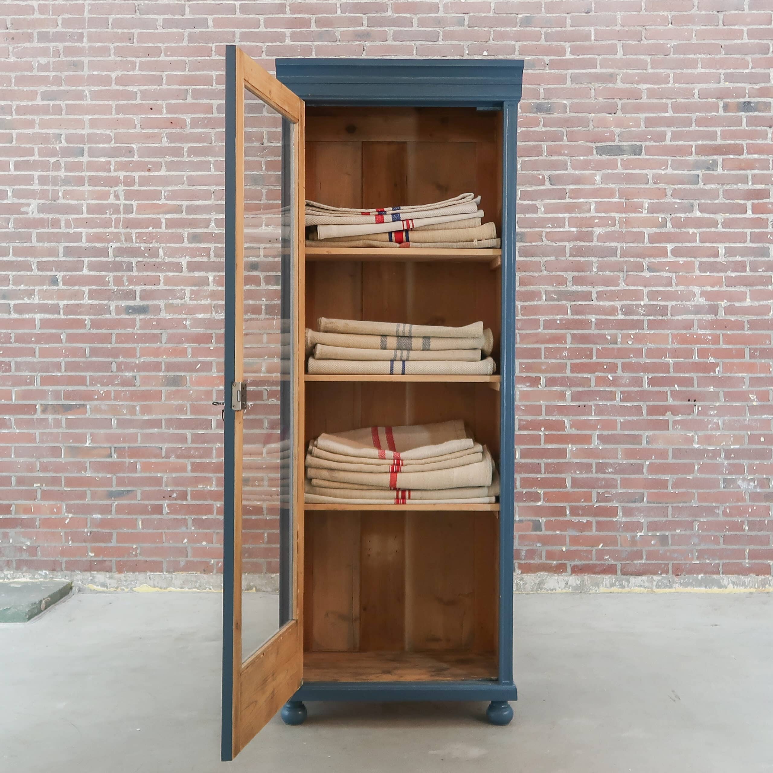 Net binnen, deze eendeurs vitrinekast! We hebben haar in eigen werkplaats gemaakt, met het hout van oude kasten die we niet meer konden redden. Zo haal je dus een heel uniek én duurzaam exemplaar in huis!