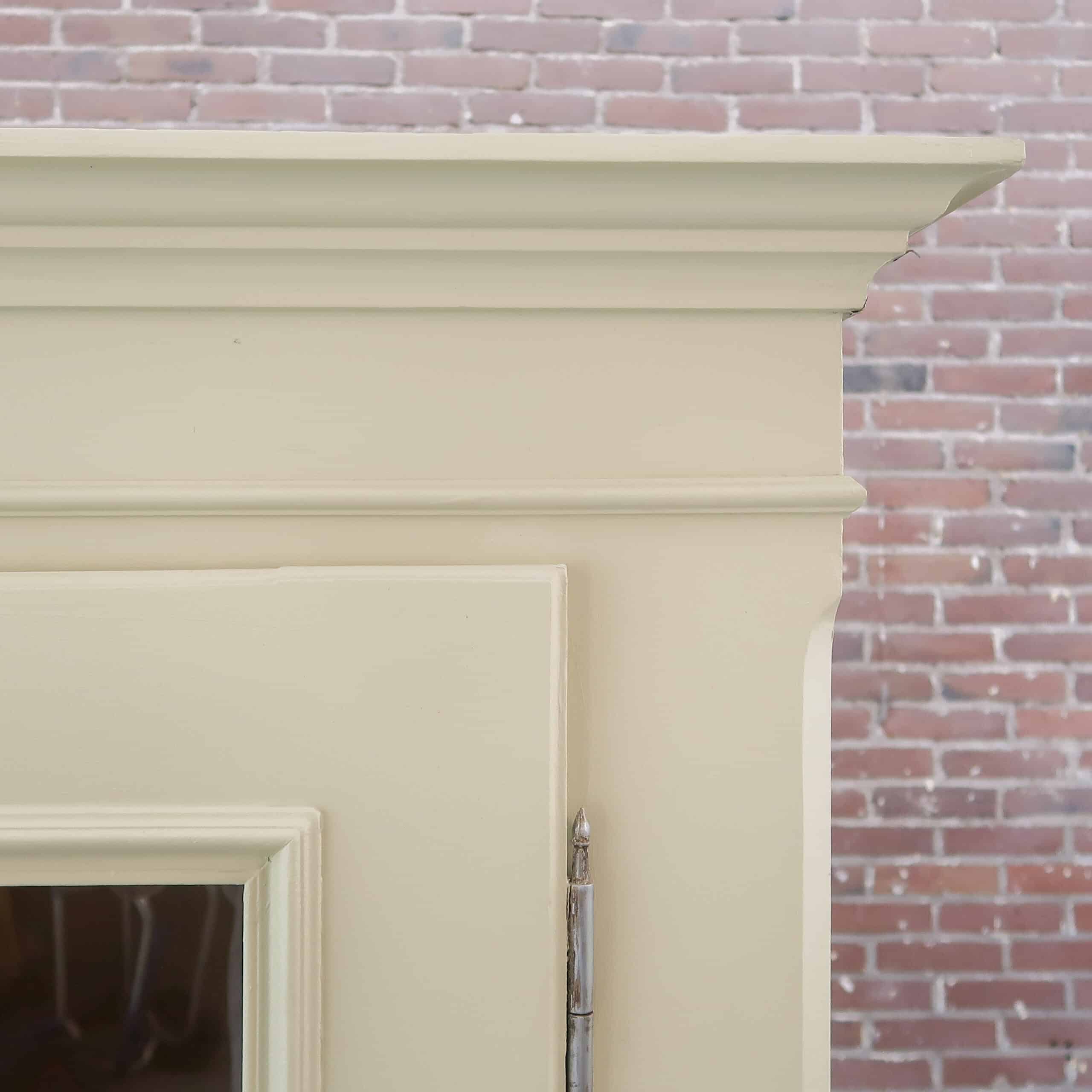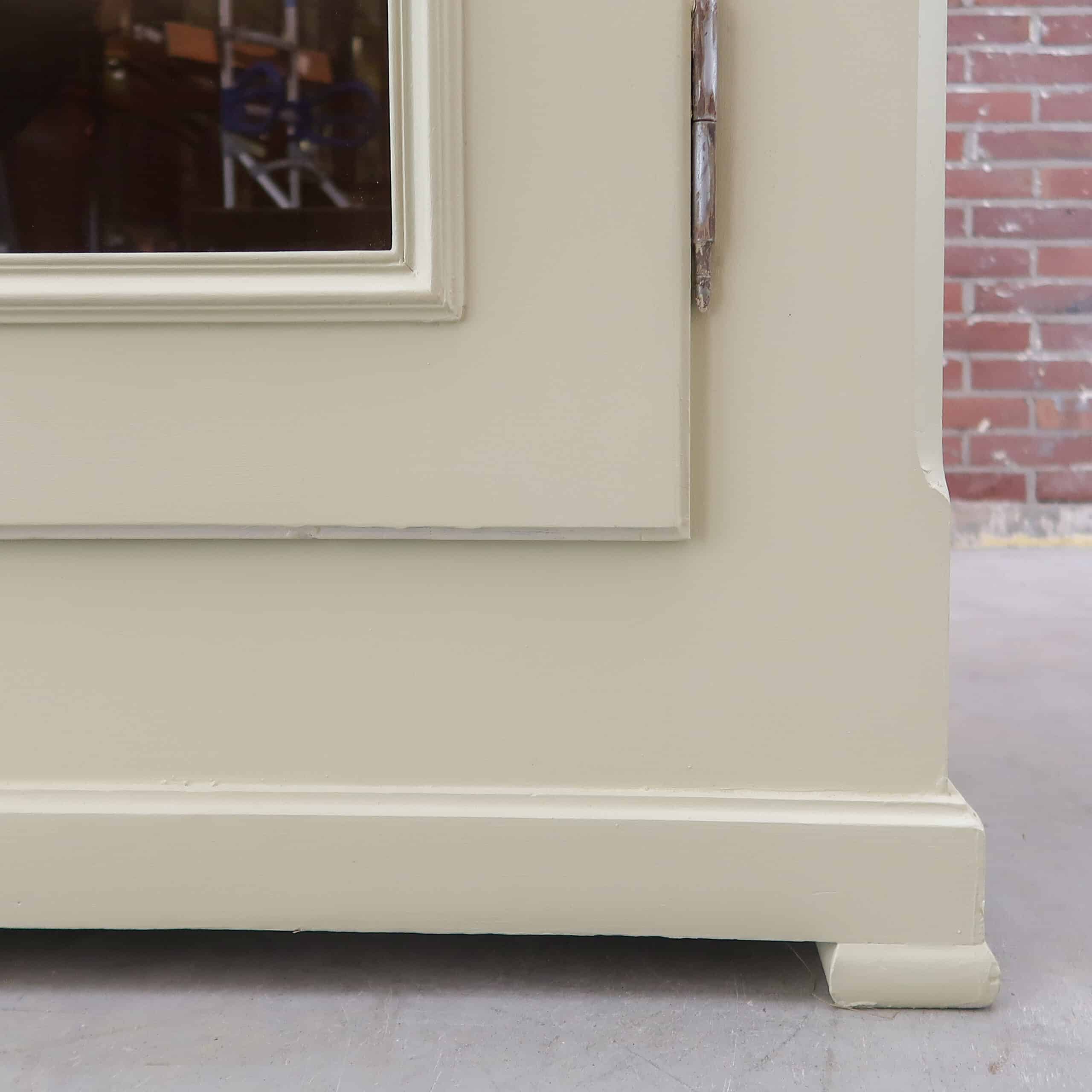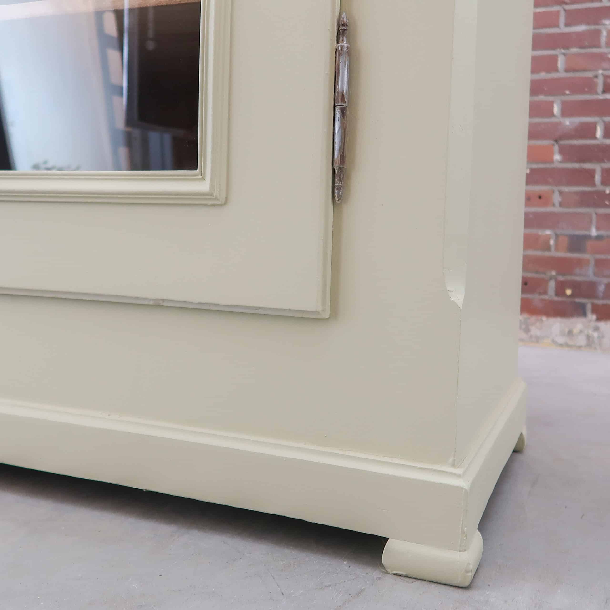 Deze mooie brocante eendeurs vitrinekast hebben we opgespeurd in Hongarije en opgeknapt waar nodig. Ze heeft ze oa nieuwe planken, nieuw glas en een bijzondere kleur beige gekregen. Wie haalt dit zonnetje in huis?