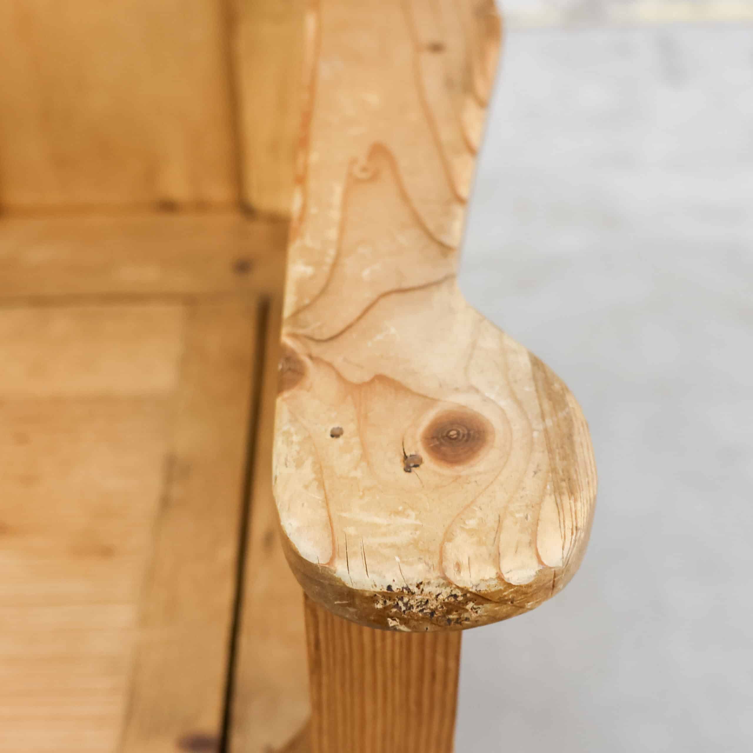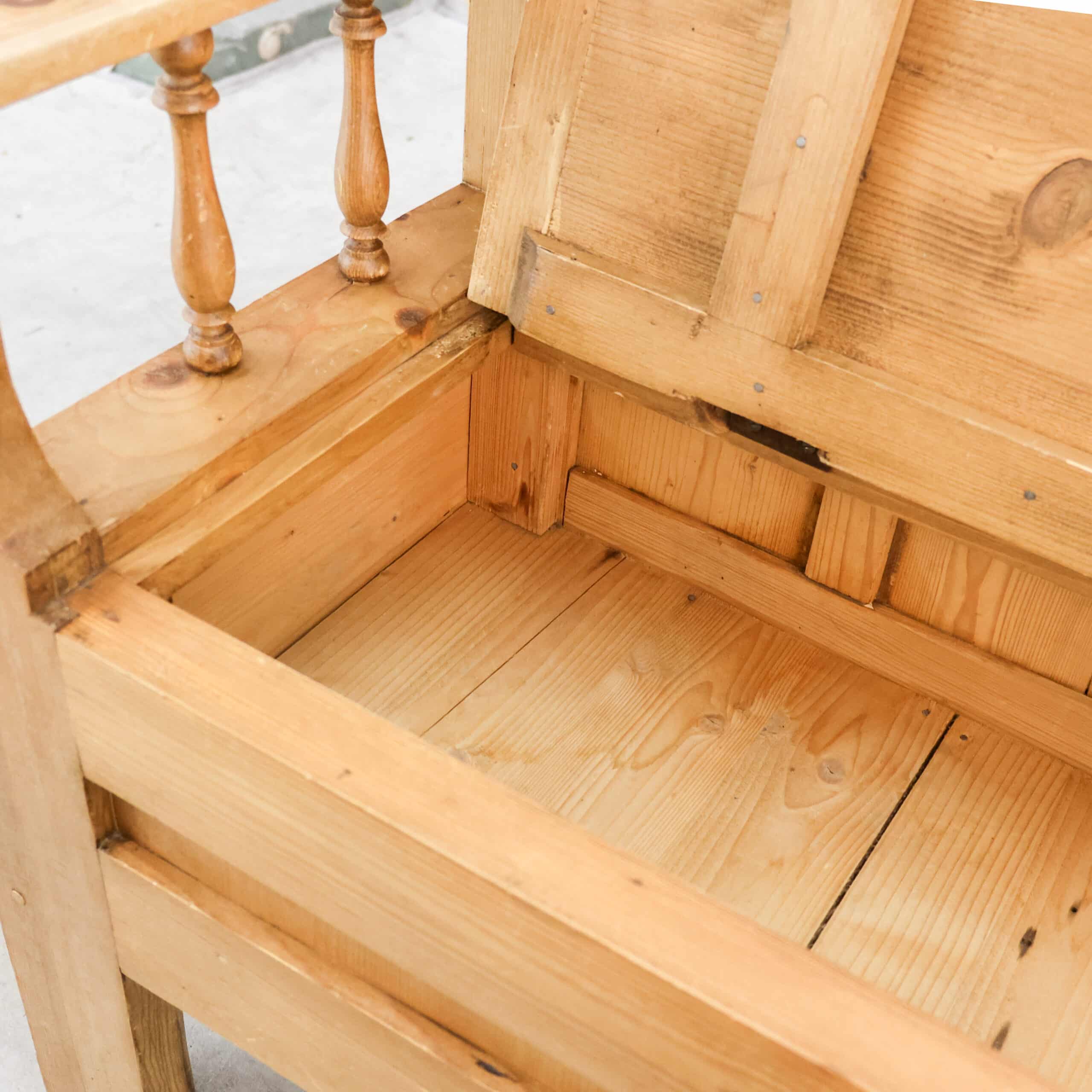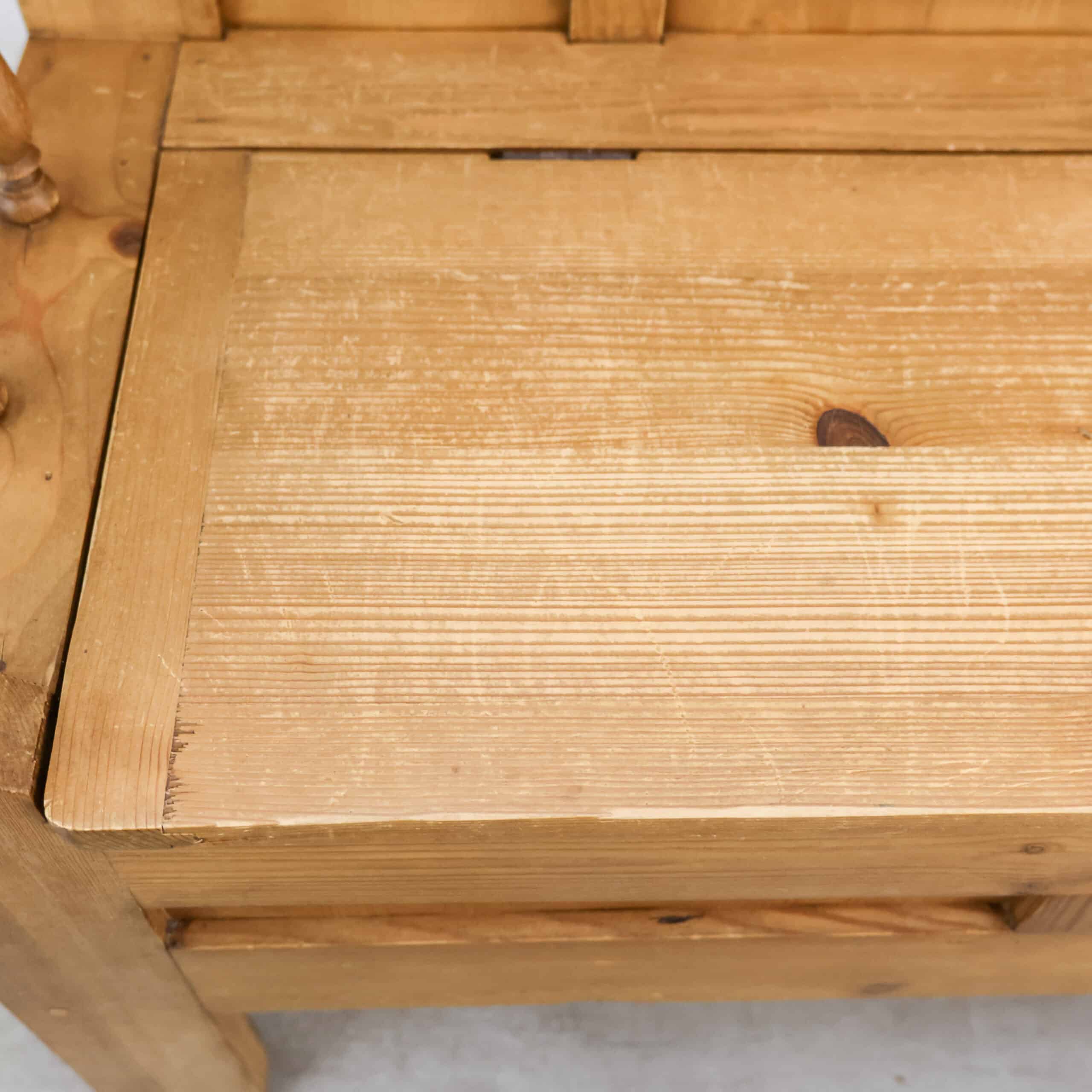 Sfeervol klein grenen gangbankje met opbergruimte. De sierlijke look en warme houttint geven dit kastje een zachte landelijke uitstraling. Het hout toont karaktervolle gebruikssporen en prachtige knoesten – een eerlijk en charmant stuk dat meteen sfeer brengt.