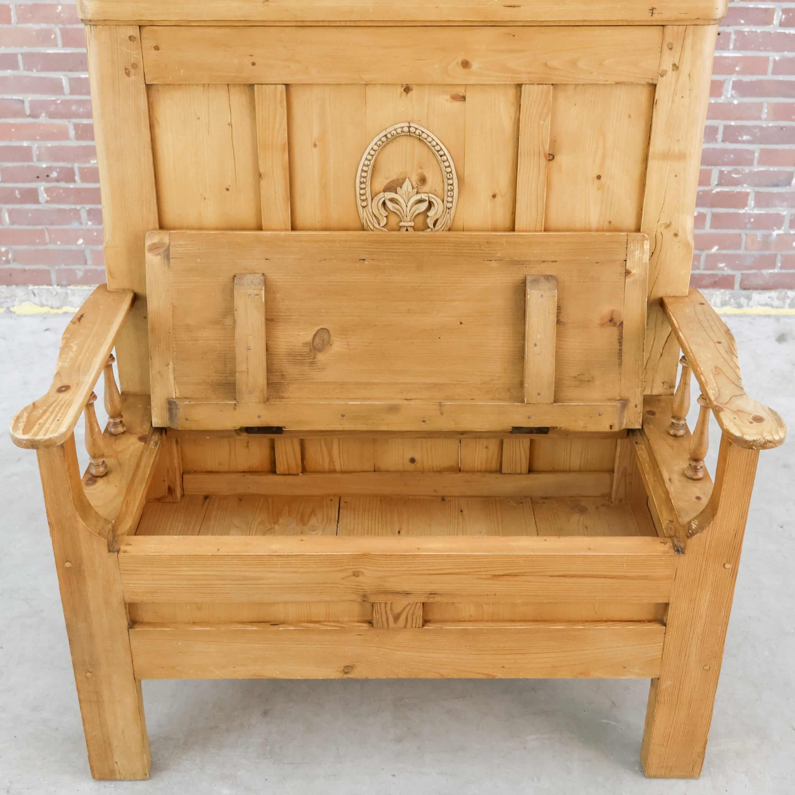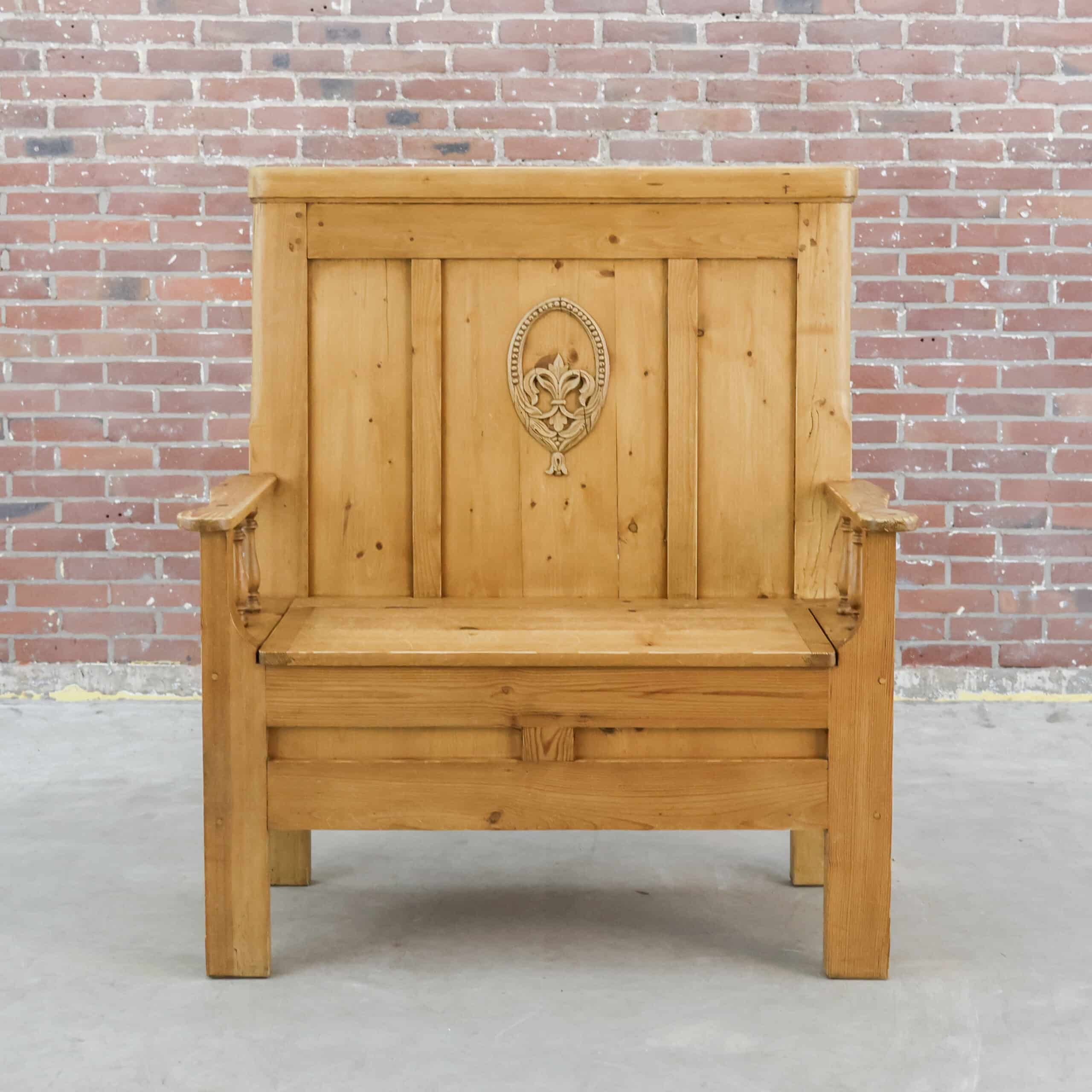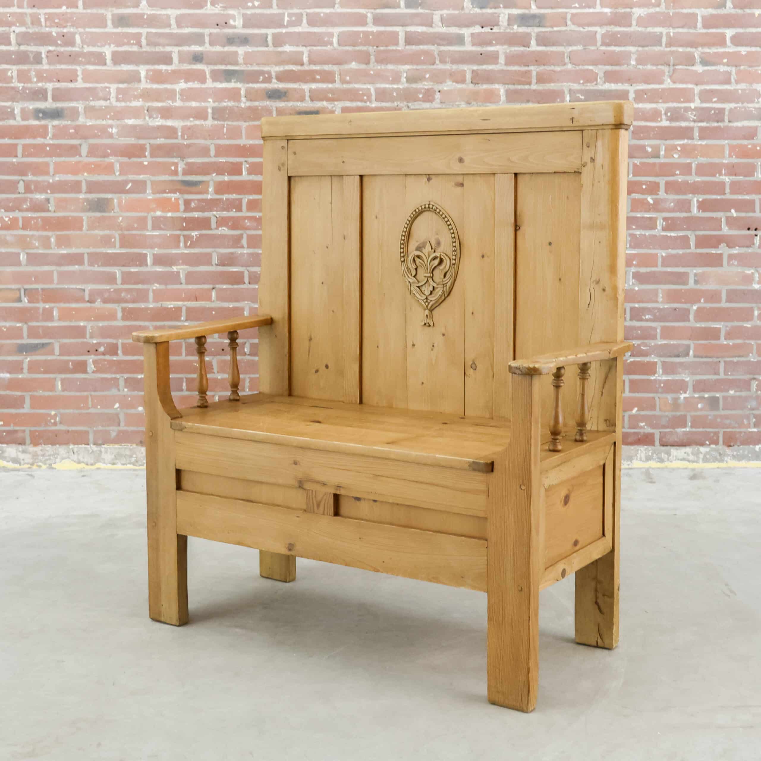 Sfeervol klein grenen gangbankje met opbergruimte. De sierlijke look en warme houttint geven dit kastje een zachte landelijke uitstraling. Het hout toont karaktervolle gebruikssporen en prachtige knoesten – een eerlijk en charmant stuk dat meteen sfeer brengt.